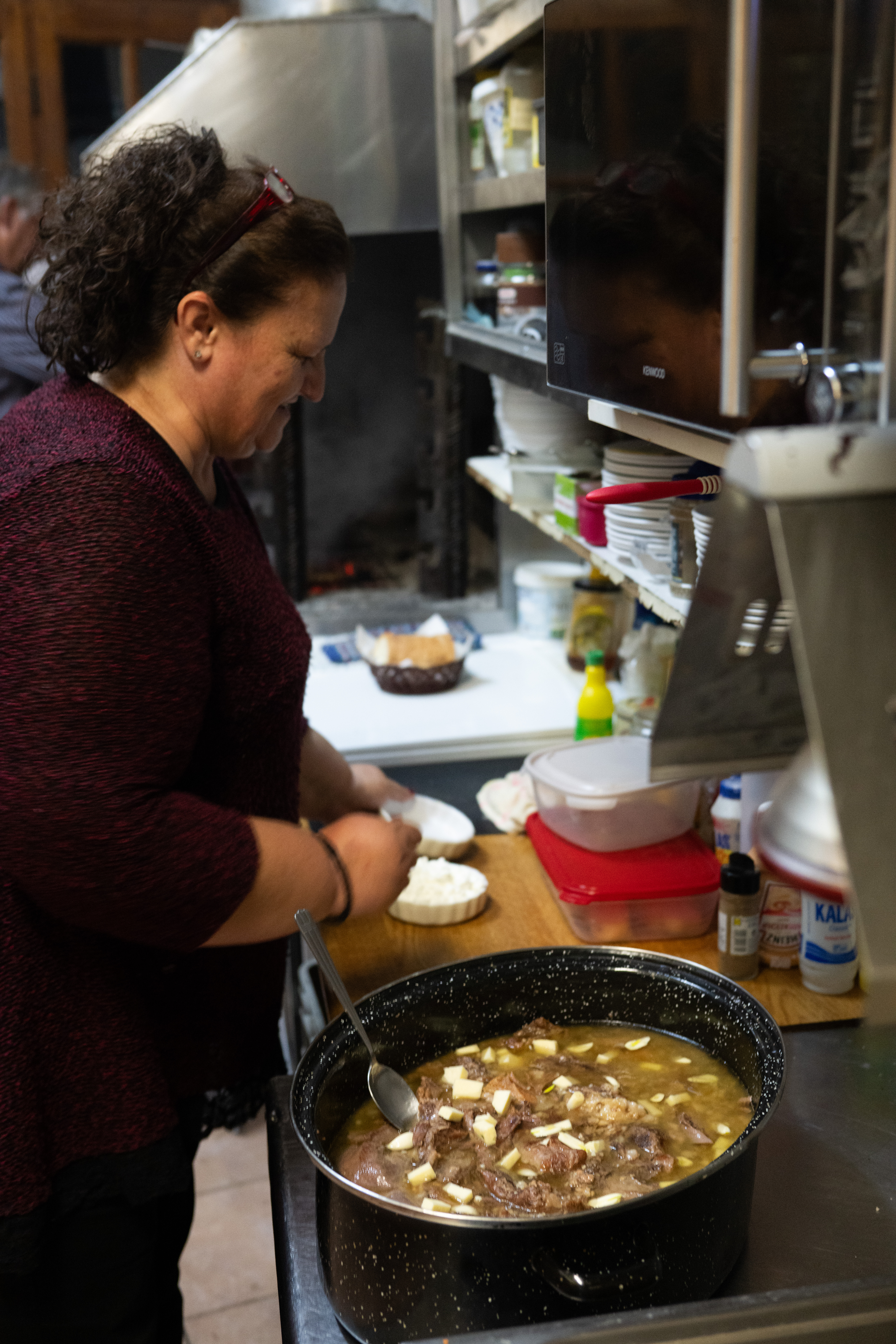 Η Φωτεινή, με το χαρακτηριστικό της χαμόγελο και τη ζεστή φιλοξενία, μας μίλησε για τη ζωή στο χωριό, μοιράστηκε ιστορίες από την καθημερινότητά της και, σαν γνήσια γνώστης των τοπικών θησαυρών, μας κατεύθυνε προς την ταβέρνα «Το Παραδοσιακόν» στην πλατεία του χωριού. «Δεν μπορείτε να φύγετε χωρίς να δοκιμάσετε τις γεύσεις της Γωγώς», μας είπε με νόημα.
