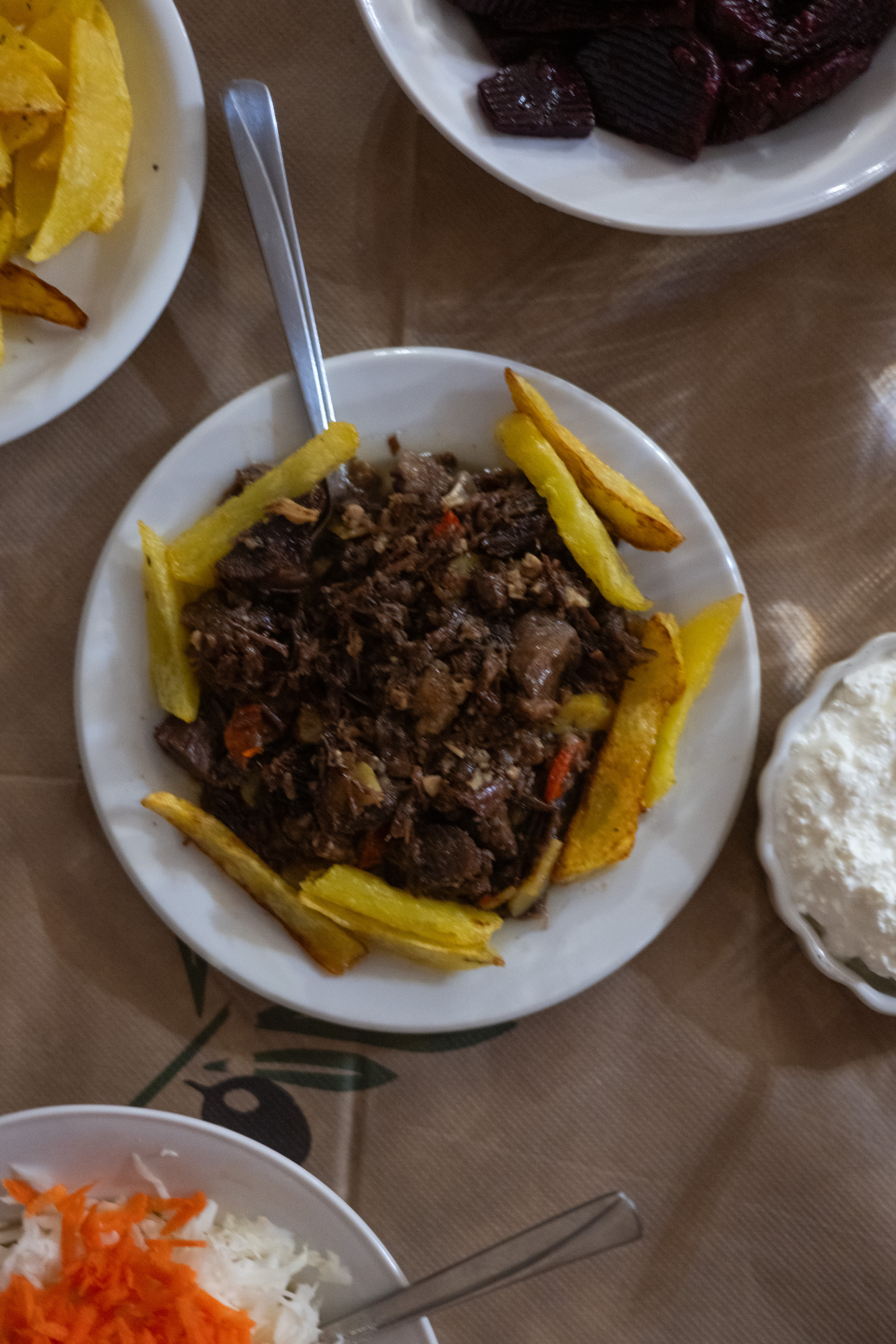 Ακολουθώντας τη συμβουλή της Φωτεινής, βρεθήκαμε στην κεντρική πλατεία του χωριού, σε υψόμετρο 1050 μέτρων, όπου η ταβέρνα «Το Παραδοσιακόν» στέκει από το 2008 ως φάρος της τοπικής γαστρονομίας. Η Γωγώ και ο Κώστας, οι ιδιοκτήτες, άφησαν πίσω τις οικοδομικές επιχειρήσεις για να δημιουργήσουν έναν χώρο που σήμερα αποτελεί το επίκεντρο της κοινωνικής ζωής του χωριού.