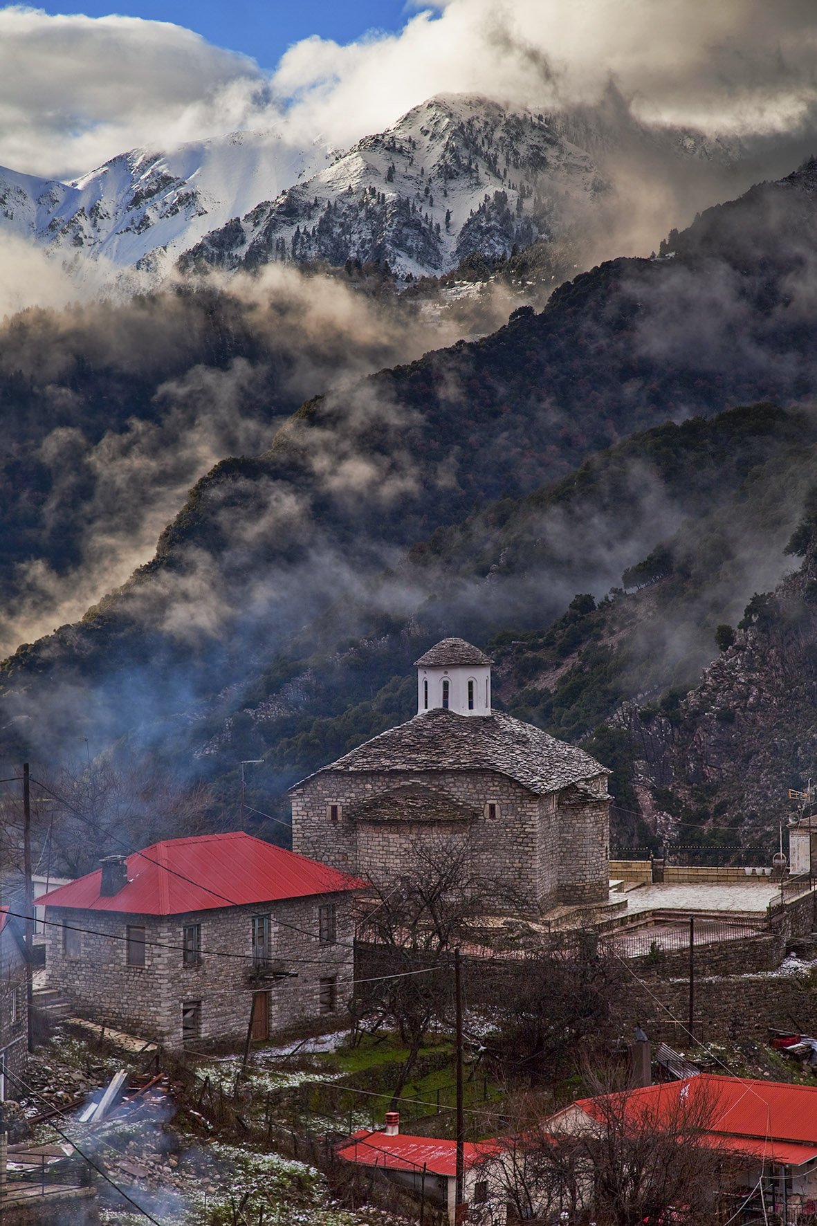 Πριν συνεχίσουμε το ταξίδι μας θα κάνουμε μια στάση στον ναό των Ταξιαρχών ο οποίος στέκει στη θέση του για εκατοντάδες χρόνια και στο εσωτερικό του υπάρχουν υπέροχες τοιχογραφίες. Πριν μπούμε στο αυτοκίνητο για να συνεχίσουμε την περιπλάνησή μας απολαμβάνουμε ακόμα μια φορά τη δροσιά και τον καθαρό αέρα του βουνού. Νιώθουμε τυχεροί που καταφέραμε να έρθουμε σε αυτό το πραγματικά παρθένο μέρος. Ίσως το μοναδικό στην Ελλάδα που η καθημερινότητα παραπέμπει τόσο πολύ σε άλλες εποχές.