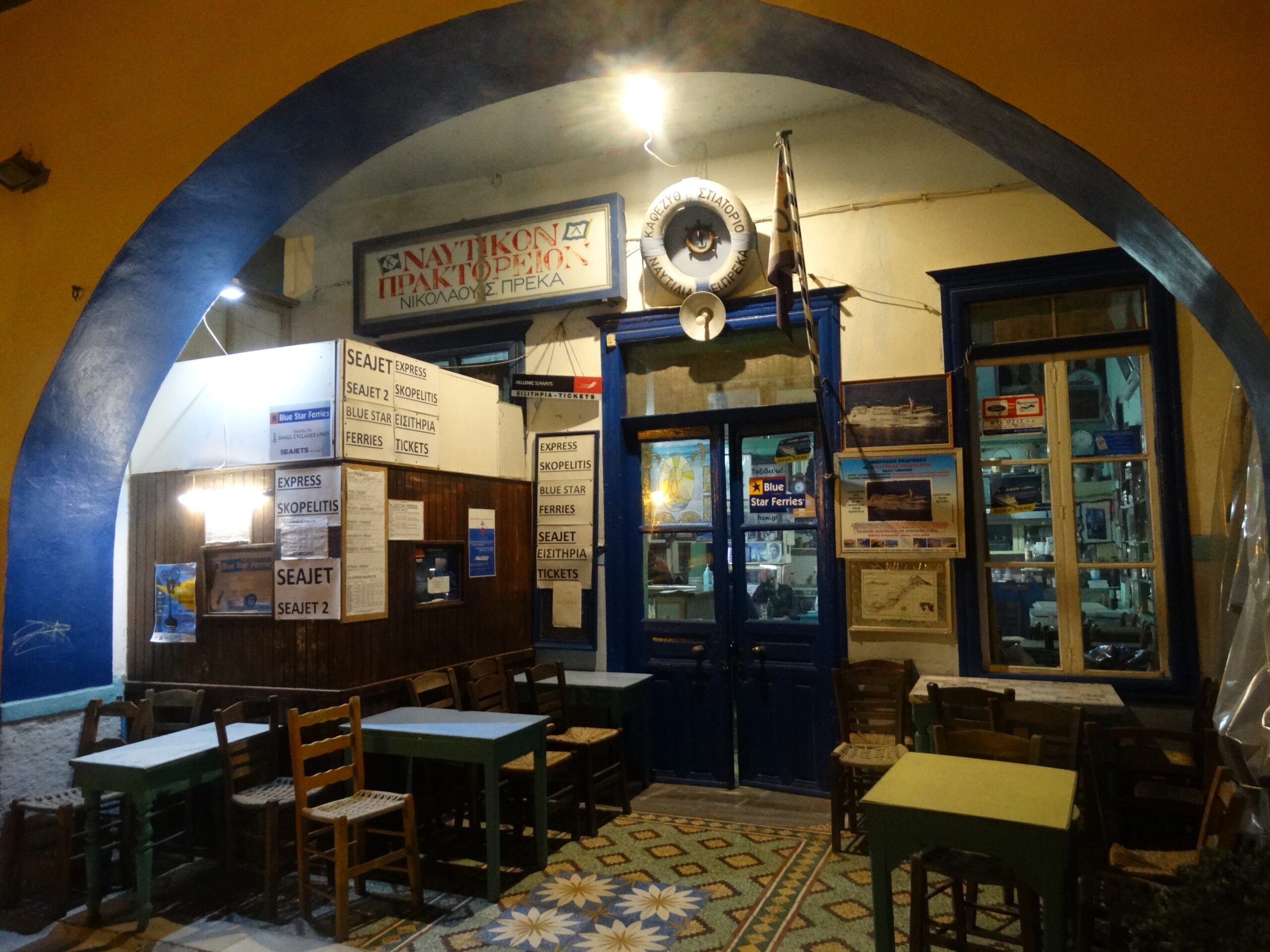 Το βραδάκι το λιμάνι ζωντανεύει ξανά για λίγο με την άφιξη του Σκοπελίτη, και μετά για μια ρακή στο καφενείο, ο απολογισμός της μέρας. Λίγο πριν τις 10 το νησί ερημώνει, σχεδόν όλοι πια είναι στα σπίτια τους. Στα λίγα ανοιχτά μπαρ η κίνηση είναι ελάχιστη.