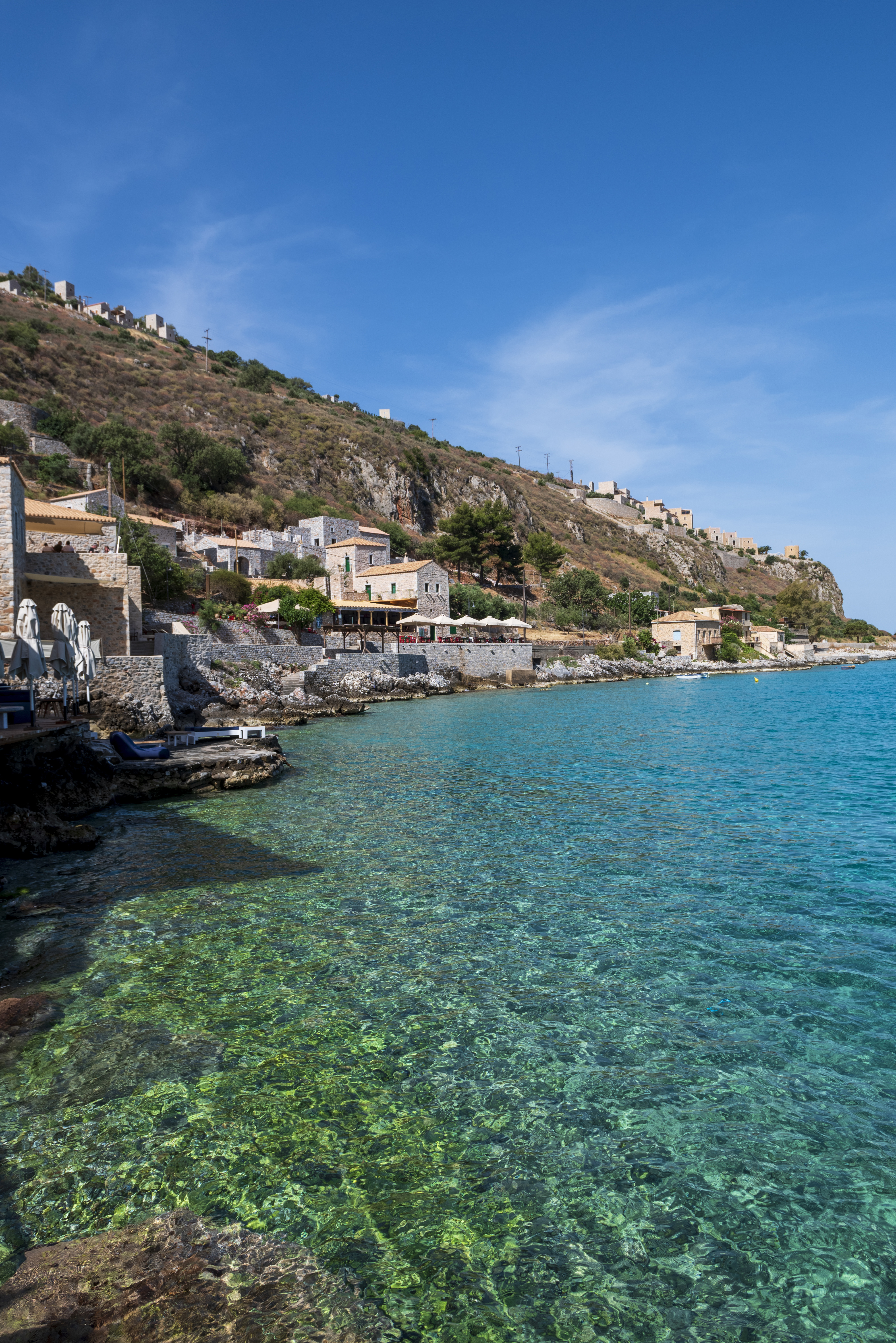 Βρίσκεται στη Λακωνική Μάνη και τα διάφανα γαλαζοπράσινα νερά κάνουν το φωτογενές ψαροχώρι και επίνειο της Αρεόπολης, να ξεχωρίζει -και είναι ένας από τους πολλούς λόγους που προσελκύει επισκέπτες όλο το καλοκαίρι. Τα παλιά ή νεόκτιστα πέτρινα οικοδομήματα διατηρούν το ύφος της μανιάτικης αρχιτεκτονικής και μαζί με τις ταβέρνες που φημίζονται για τους θαλασσινούς μεζέδες και τα ολόφρεσκα ψάρια τους, φλερτάρουν με τα βράχια και τη θάλασσα.