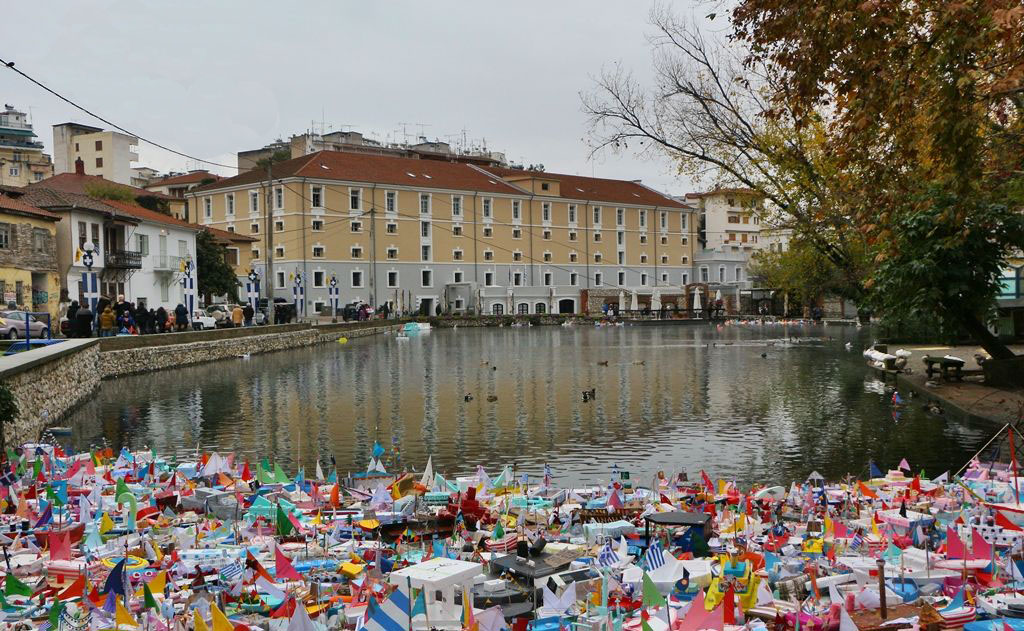Το θέαμα είναι ιδιαίτερα εντυπωσιακό, με τα εκατοντάδες πολύχρωμα φωτισμένα καραβάκια να πλέουν στα νερά της λίμνης και τους «καπεταναίους» τριγύρω να περιμένουν με αγωνία πότε θα βυθιστούν, προκειμένου να «μεταφέρουν» τις ευχές στα ερείπια της βυθισμένης εκκλησίας της Αγίας Βαρβάρας.