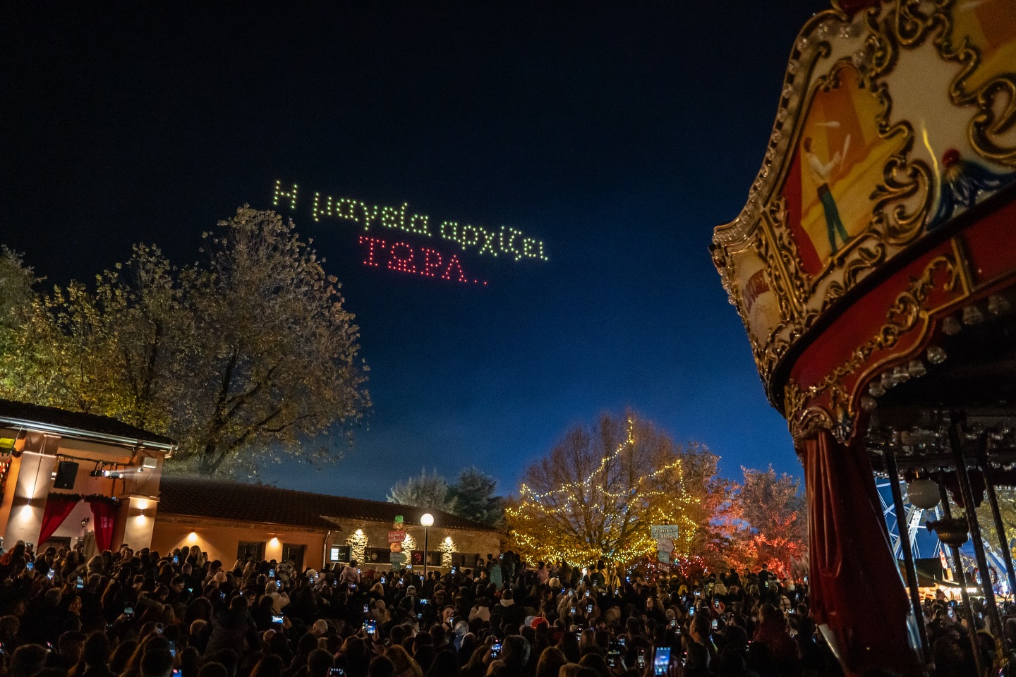Το ενδιαφέρον, βέβαια, συγκεντρώνεται στον Μύλο των Ξωτικών, όμως η χριστουγεννιάτικη εικόνα της πόλης δεν περιορίζεται μόνο εκεί. Το κέντρο, με την Ασκληπιού και τους γύρω πεζόδρομους, στολίζεται με γιρλάντες, κρεμαστά αστέρια και ζεστό λευκό φωτισμό, δημιουργώντας μια ατμόσφαιρα που θυμίζει ευρωπαϊκή χριστουγεννιάτικη αγορά. Καφέ και καταστήματα διακοσμούν τις προσόψεις τους με φυσικά στοιχεία, κόκκινες λεπτομέρειες και φωτεινά στεφάνια, κάνοντας κάθε περίπατο ευχάριστο και χαλαρό.