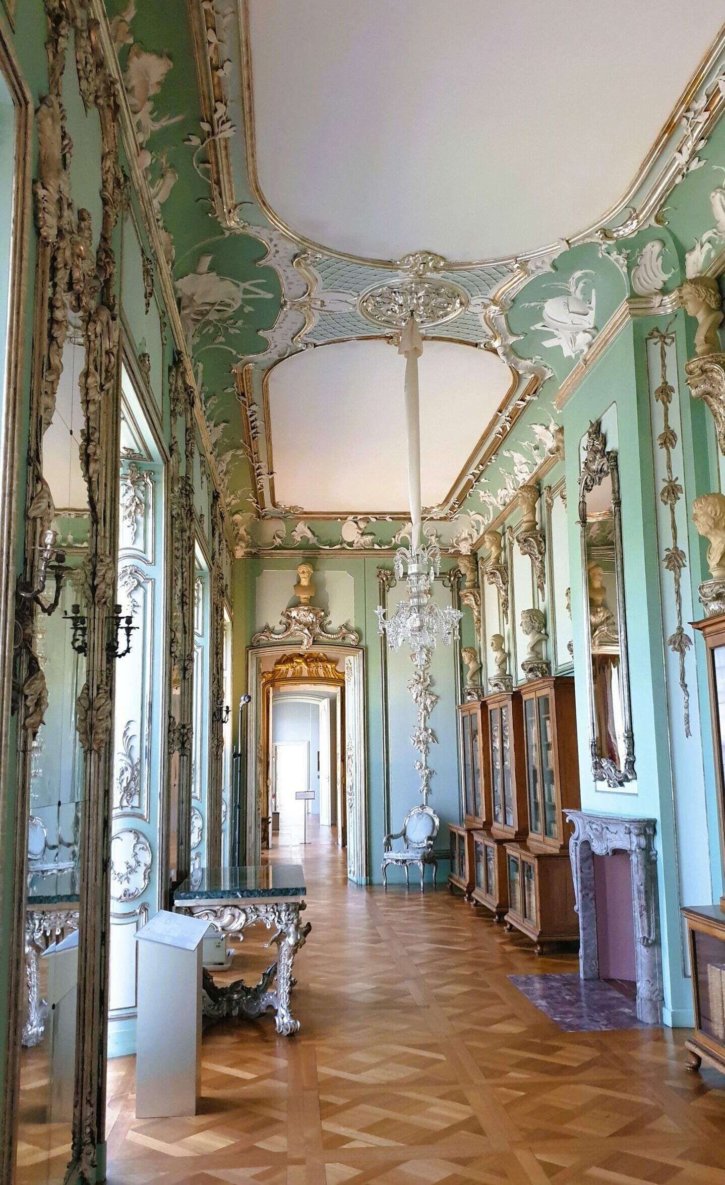 Ανάμεσα σε χώρους διακοσμημένους με μαρκετερί, ταπισερί, νωπογραφίες, πίνακες και πορσελάνες, περνώντας από την Αίθουσα ακροάσεων της βασίλισσας, την Παλαιά Πινακοθήκη που υπέστη μικρές ζημιές στον πόλεμο, τα εκθαμβωτικά ιδιαίτερα διαμερίσματα της Σοφίας Καρλότας με την επένδυση από καθρέφτες και σμαραγδί μεταξωτές ταπετσαρίες, την εκπληκτική Αίθουσα με τα κόκκινα δαμασκηνά υφάσματα που ένωνε τα ιδιαίτερα με τα κρατικά διαμερίσματα του βασιλιά και το επίσημο υπνοδωμάτιο σε φωτεινούς κίτρινους τόνους. Ξεχωρίζουν και κυριολεκτικά θαμπώνουν η Porzellankabinett, που παρά το μικρό της μέγεθος θα σας αφήσει άφωνους με τις σχεδόν 2.700 κινέζικες και ιαπωνικές κυανόλευκες πορσελάνες του 17ου-18ου αιώνα, ουσιαστικά ενσωματωμένες στους τοίχους και σε ειδικές για το σκοπό της έκθεσής τους κατασκευές, και το βασιλικό παρεκκλήσι Schlosskapelle, που αντικατοπτρίζει τους στενούς δεσμούς μοναρχίας και εκκλησίας όπως τονίζει η τοποθέτηση του βασιλικού θεωρίου απέναντι από τον άμβωνα.
