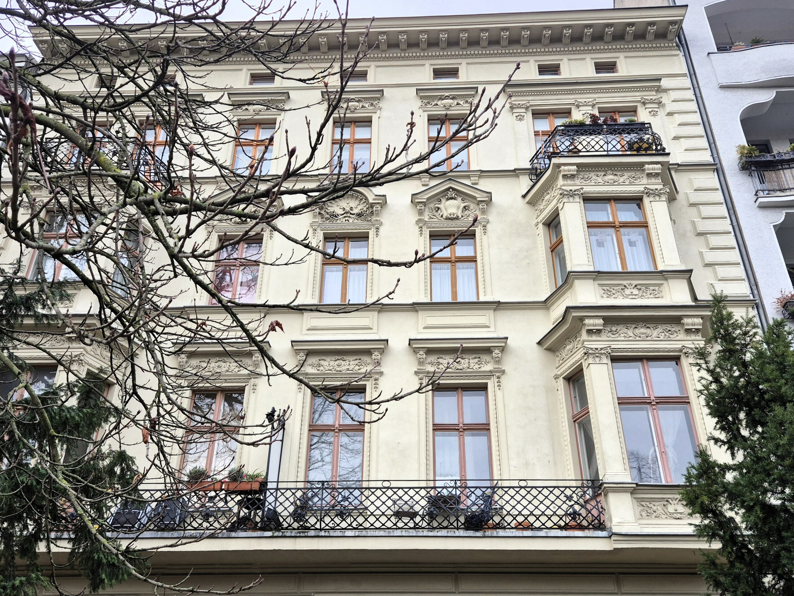 Κομψά, πολυώροφα κτήρια σε παστέλ αποχρώσεις, με προσόψεις που φέρουν ανάγλυφες διακοσμήσεις και συχνά με μικρούς κήπους και μπαλκόνια, δεν περιορίζονται μόνο κατά μήκος της λεωφόρου που διαμορφώθηκε στο τέλος του 17ου αιώνα και ανανεώθηκε τον 19ο, αλλά συνεχίζονται και στους διασταυρούμενους δρόμους. Αξίζει να τους ακολουθήσετε χωρίς συγκεκριμένο πλάνο για να πάρετε μια καλή ιδέα των ρυθμών της γαλήνιας αυτής γειτονιάς και για να βρεθείτε απρόσμενα σε vintage καταστήματα όπου θα ανακαλύψετε πραγματικούς θησαυρούς. Είναι συνηθισμένο εξάλλου στο Βερολίνο, second hand είδη που σε άλλες πόλεις θα βρίσκατε σε υπαίθριες αγορές, να πωλούνται σε συνοικιακά μαγαζιά και μάλιστα σε εξαιρετική κατάσταση και πολύ χαμηλές τιμές.