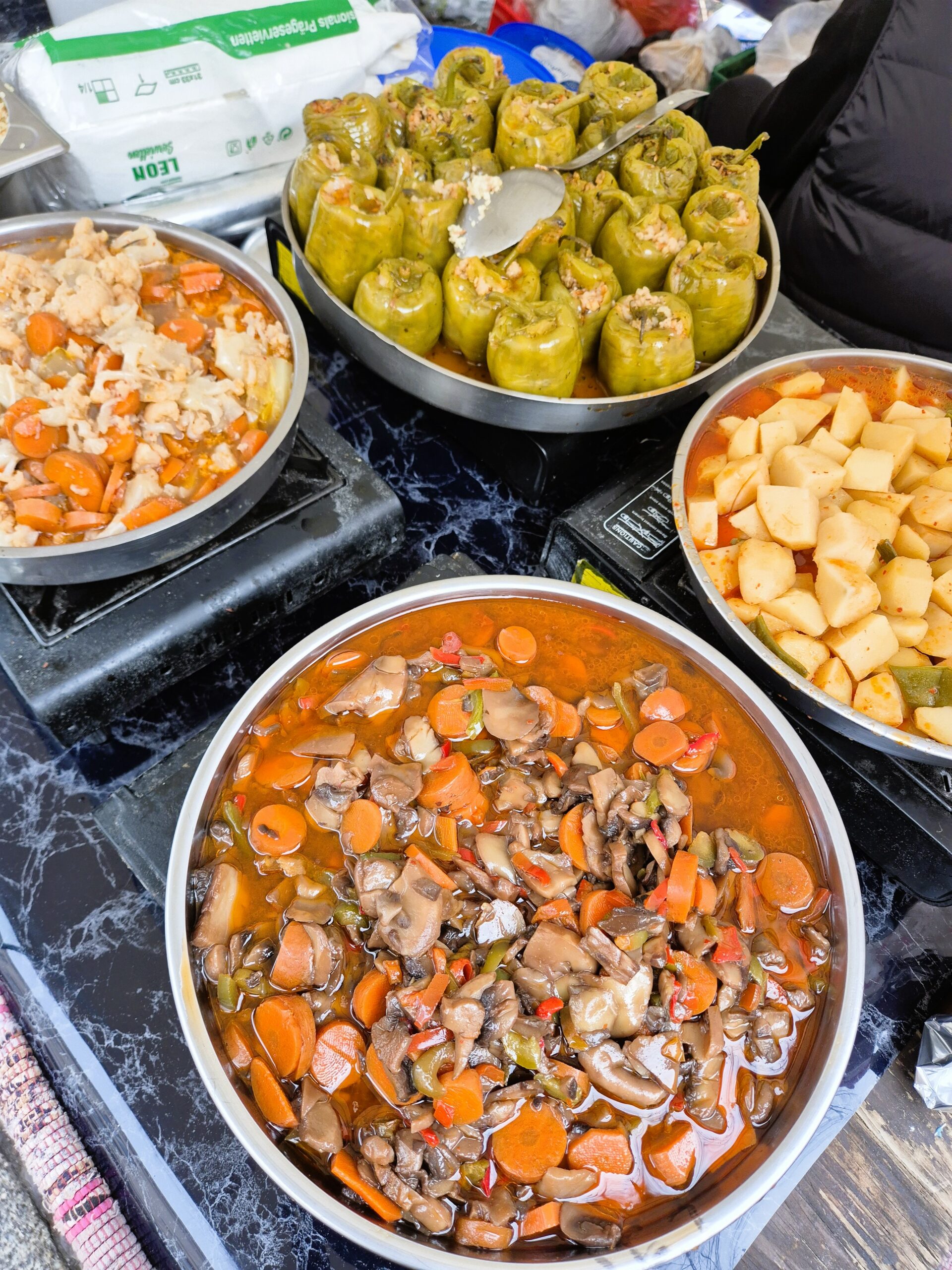 Όπως σε όλες τις υπαίθριες αγορές αυτή την εποχή, δεν λείπει το ζεστό αρωματικό κρασί Glühwein, τα ψητά λουκάνικα, αλλά και τα έθνικ φαγητά, όπως τα πολύ οικεία σε εμάς γεμιστά και οι κολοκυθοκεφτέδες που ετοιμάζονται επί τόπου από κατοίκους της περιοχής με καταγωγή από την Τουρκία. Στους σαράντα πάγκους των χειροτεχνημάτων, όπου απαγορεύονται τα είδη που δεν είναι χειροποίητα, εντυπωσιάζει η δεξιοτεχνία και το μεράκι που οι Βερολινέζοι κάτοικοι του Charlottenburg και επίδοξοι καλλιτέχνες βάζουν σε πρωτότυπα στολίδια για το δέντρο, καλαίσθητα έργα τέχνης και όμορφα, ζεστά πλεχτά που γίνονται ιδιαίτερα δώρα.