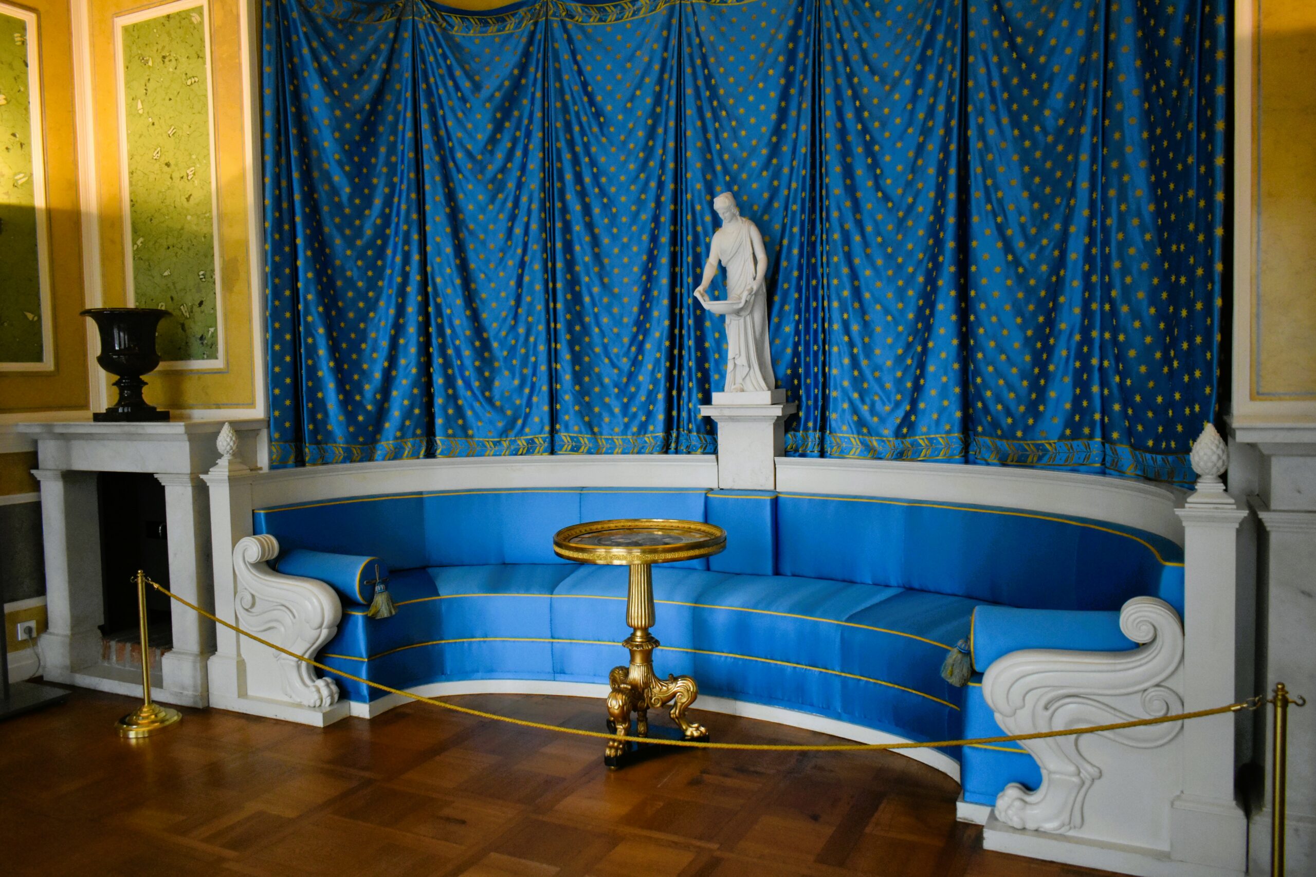 Ακόμη ωραιότερα για πολλούς, τα διαμερίσματα της δυτικής Νέας Πτέρυγας –Neuer Flügel– προστέθηκαν κατά τη βασιλεία του Φρειδερίκου Β΄ ως δική του θερινή κατοικία για να συμπληρωθούν μεταγενέστερα και από τα εξίσου πολυτελή χειμερινά διαμερίσματα. Σε αυτό το τμήμα του Schloss, αφού περάσετε από την Μπλε Σατέν Αίθουσα που συνδέει τις δύο πτέρυγες, την τραπεζαρία με τις κινέζικες ταπετσαρίες, τη βιβλιοθήκη του 1810 και τη λεγόμενη Λευκή Αίθουσα, θα μείνετε άφωνοι μπροστά στο μέγεθος και τη χρυσοποίκιλτη διακόσμηση της φαντασμαγορικής ροκοκό Αίθουσας Συναυλιών με το απαλό πράσινο χρώμα, τα μεγάλα παράθυρα και τους άφθονους καθρέφτες.