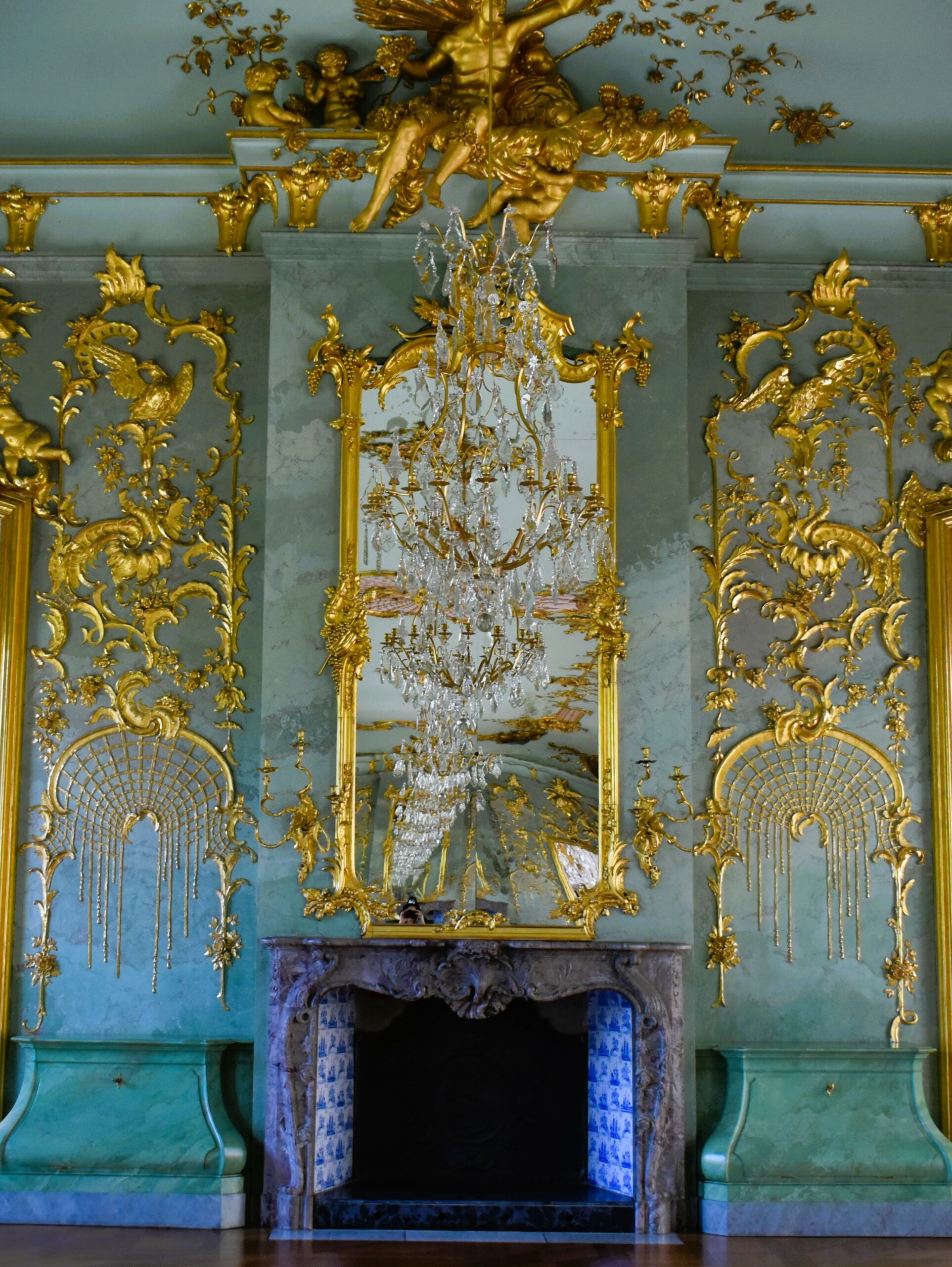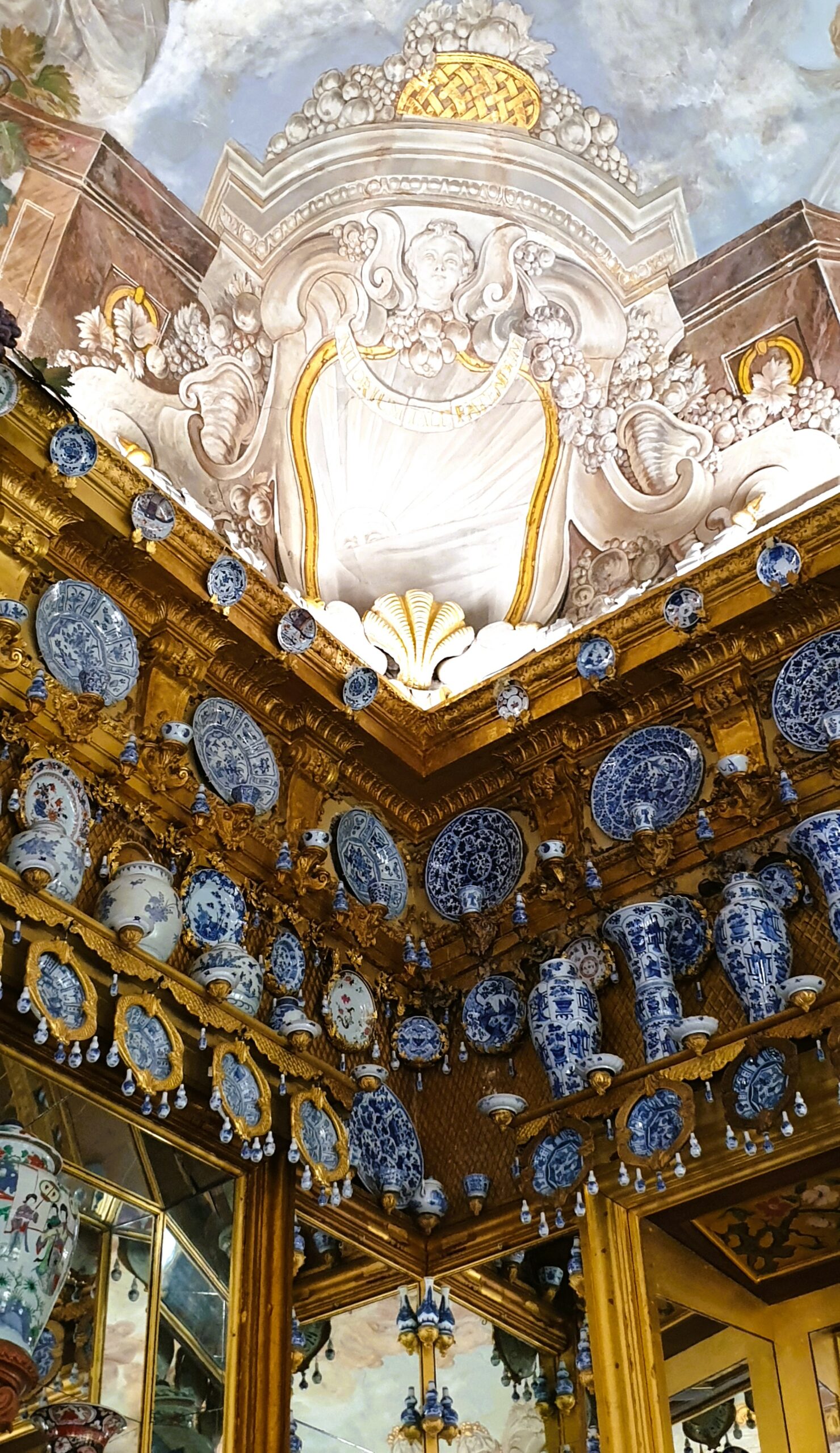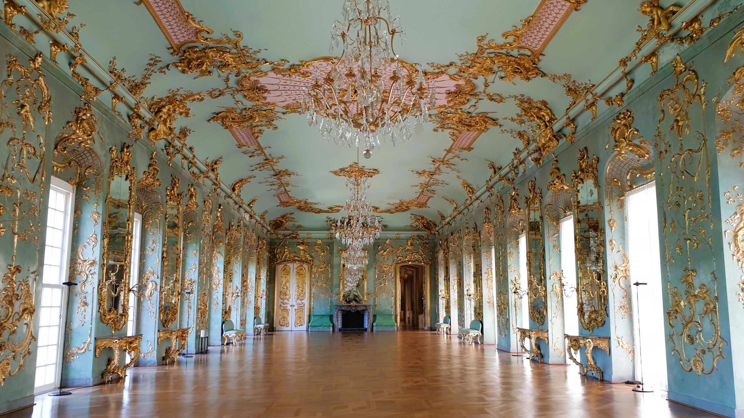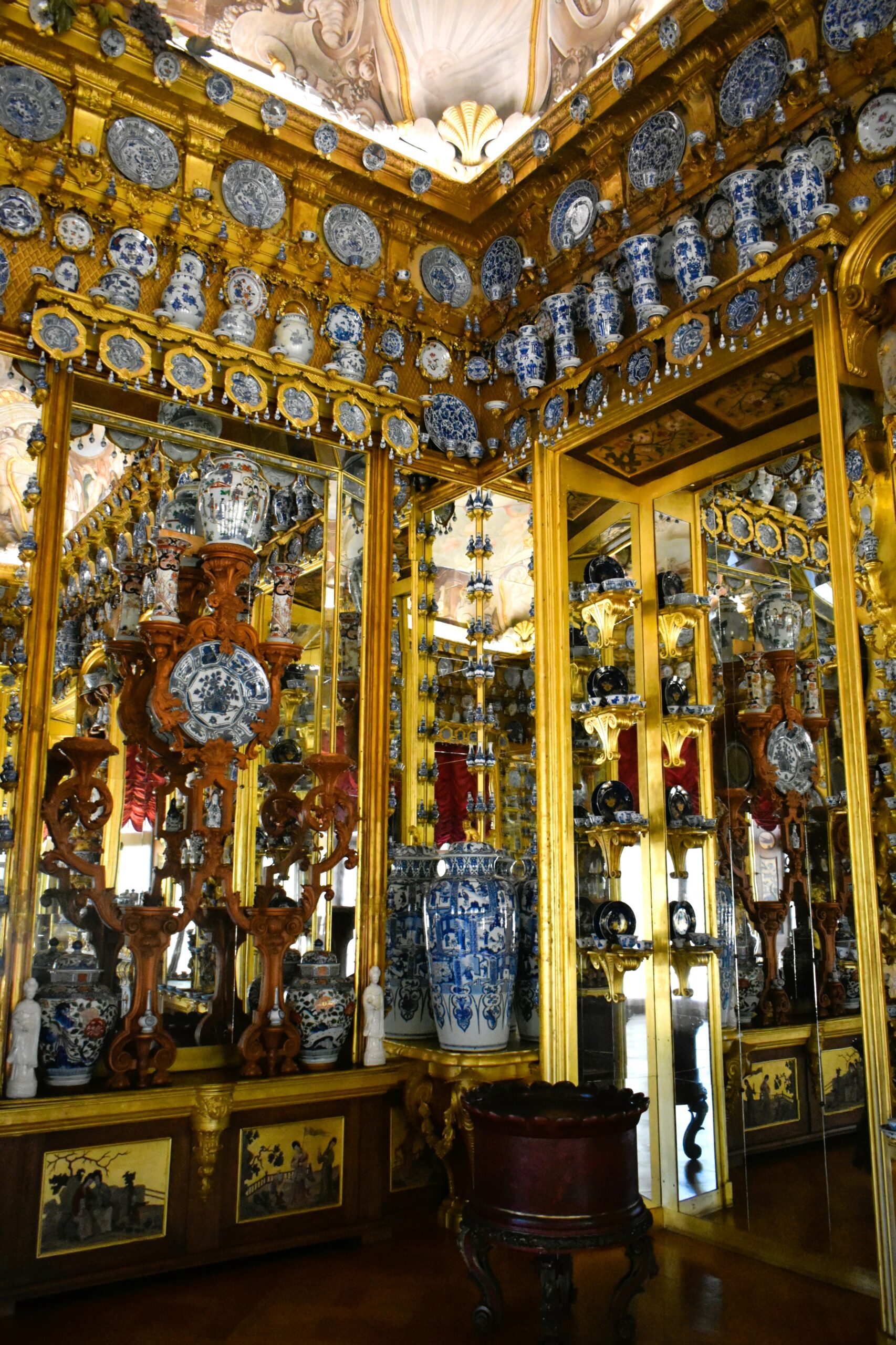 Ανάμεσα σε χώρους διακοσμημένους με μαρκετερί, ταπισερί, νωπογραφίες, πίνακες και πορσελάνες, περνάτε από την Αίθουσα ακροάσεων της βασίλισσας, την Παλαιά Πινακοθήκη που υπέστη περιορισμένες ζημιές στον πόλεμο, τα ιδιαίτερα διαμερίσματα της Σοφίας Καρλότας με την επένδυση από καθρέφτες και σμαραγδί μεταξωτές ταπετσαρίες, την επιβλητική Αίθουσα με τα κόκκινα δαμασκηνά υφάσματα που ένωνε τα ιδιαίτερα με τα κρατικά διαμερίσματα του βασιλιά και το επίσημο υπνοδωμάτιο σε φωτεινούς κίτρινους τόνους. Ξεχωρίζει η Porzellankabinett, που παρά το μικρό της μέγεθος εντυπωσιάζει με τις σχεδόν 2.700 κινέζικες και ιαπωνικές κυανόλευκες πορσελάνες του 17ου και 18ου αιώνα, ενσωματωμένες στους τοίχους και σε ειδικές κατασκευές, καθώς και το βασιλικό παρεκκλήσι Schlosskapelle, που αποτυπώνει τους στενούς δεσμούς μοναρχίας και εκκλησίας με την τοποθέτηση του βασιλικού θεωρείου απέναντι από τον άμβωνα.