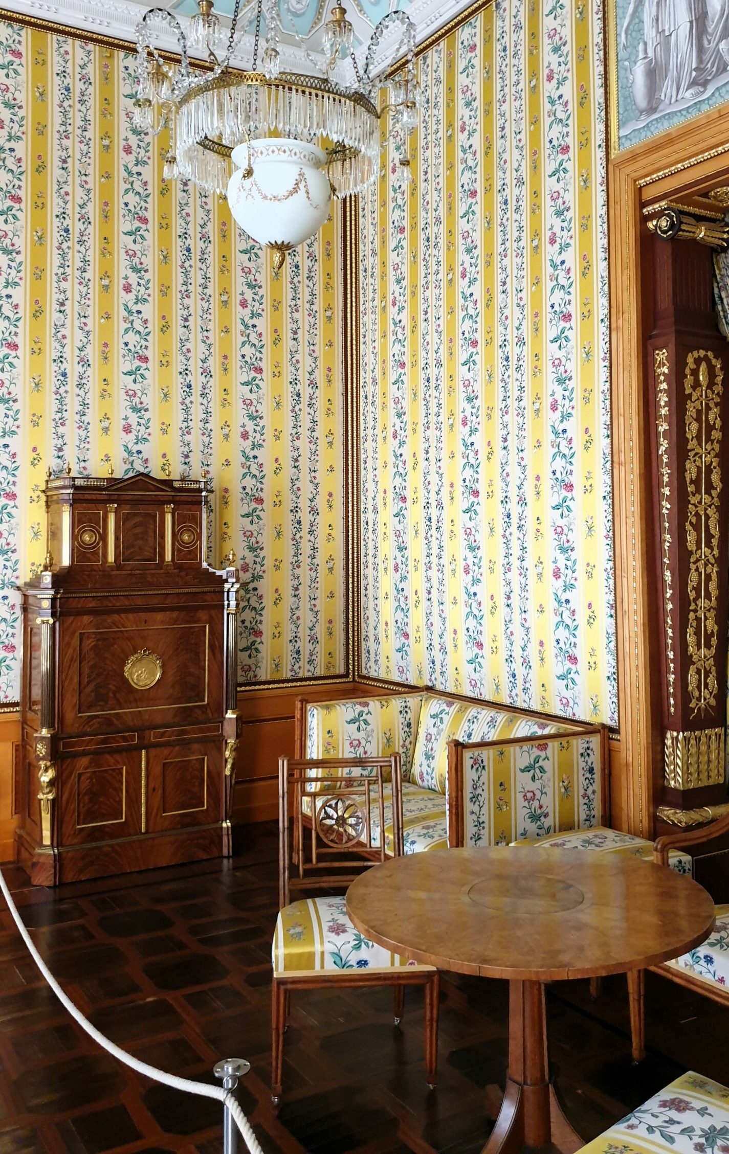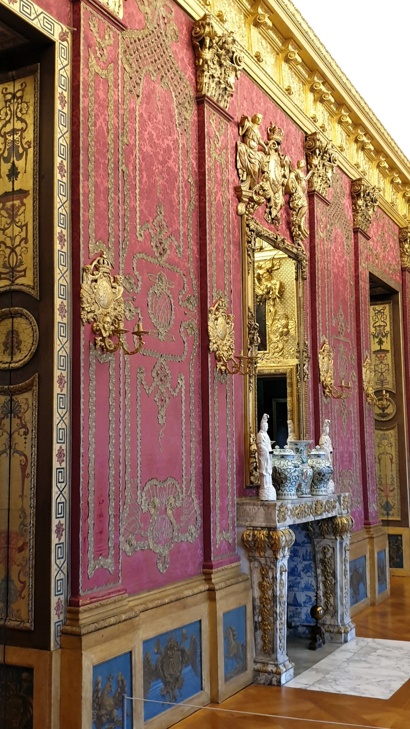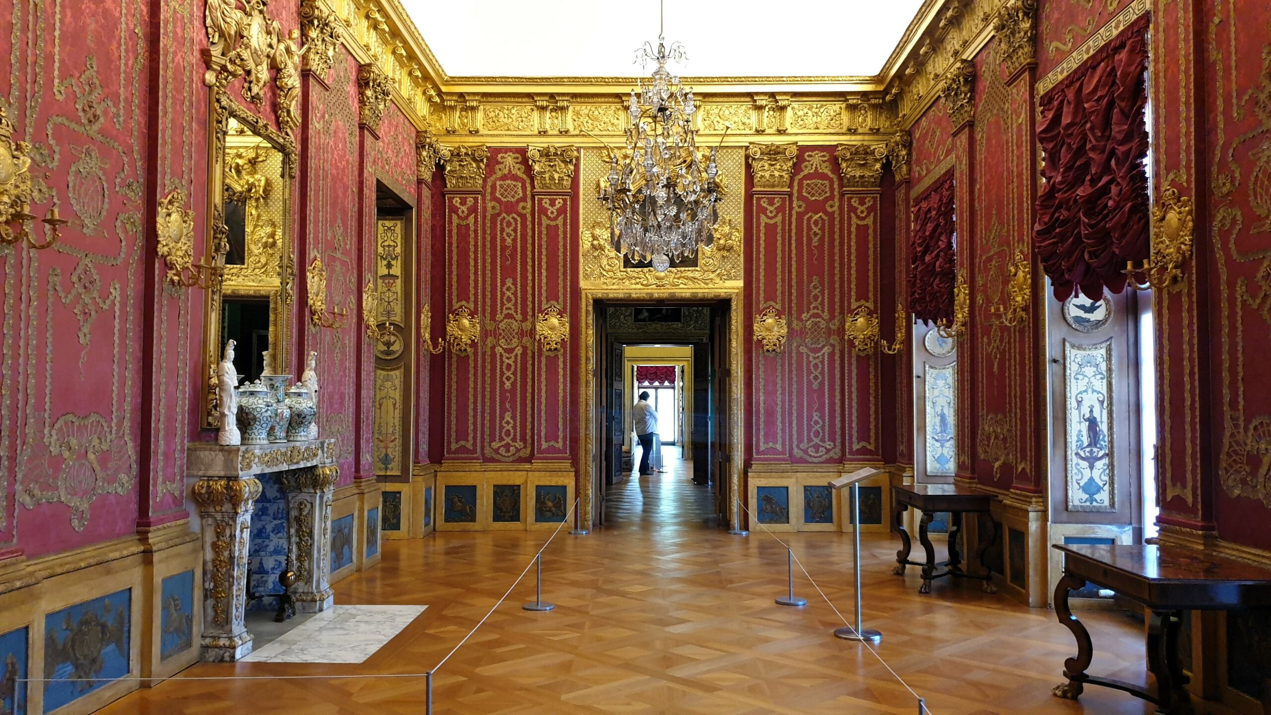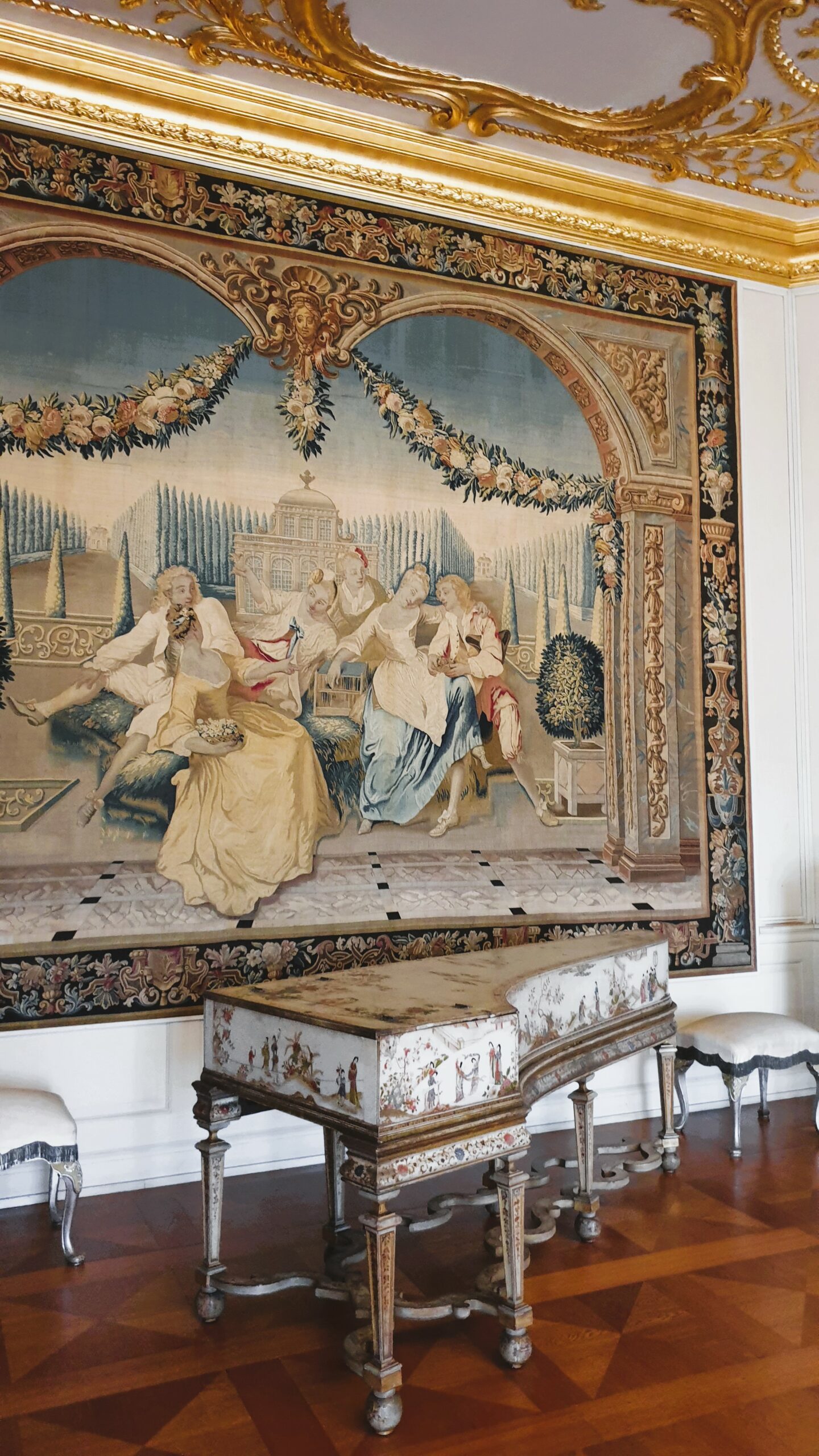 Ανάμεσα σε χώρους διακοσμημένους με μαρκετερί, ταπισερί, νωπογραφίες, πίνακες και πορσελάνες, περνάτε από την Αίθουσα ακροάσεων της βασίλισσας, την Παλαιά Πινακοθήκη που υπέστη περιορισμένες ζημιές στον πόλεμο, τα ιδιαίτερα διαμερίσματα της Σοφίας Καρλότας με την επένδυση από καθρέφτες και σμαραγδί μεταξωτές ταπετσαρίες, την επιβλητική Αίθουσα με τα κόκκινα δαμασκηνά υφάσματα που ένωνε τα ιδιαίτερα με τα κρατικά διαμερίσματα του βασιλιά και το επίσημο υπνοδωμάτιο σε φωτεινούς κίτρινους τόνους. Ξεχωρίζει η Porzellankabinett, που παρά το μικρό της μέγεθος εντυπωσιάζει με τις σχεδόν 2.700 κινέζικες και ιαπωνικές κυανόλευκες πορσελάνες του 17ου και 18ου αιώνα, ενσωματωμένες στους τοίχους και σε ειδικές κατασκευές, καθώς και το βασιλικό παρεκκλήσι Schlosskapelle, που αποτυπώνει τους στενούς δεσμούς μοναρχίας και εκκλησίας με την τοποθέτηση του βασιλικού θεωρείου απέναντι από τον άμβωνα.