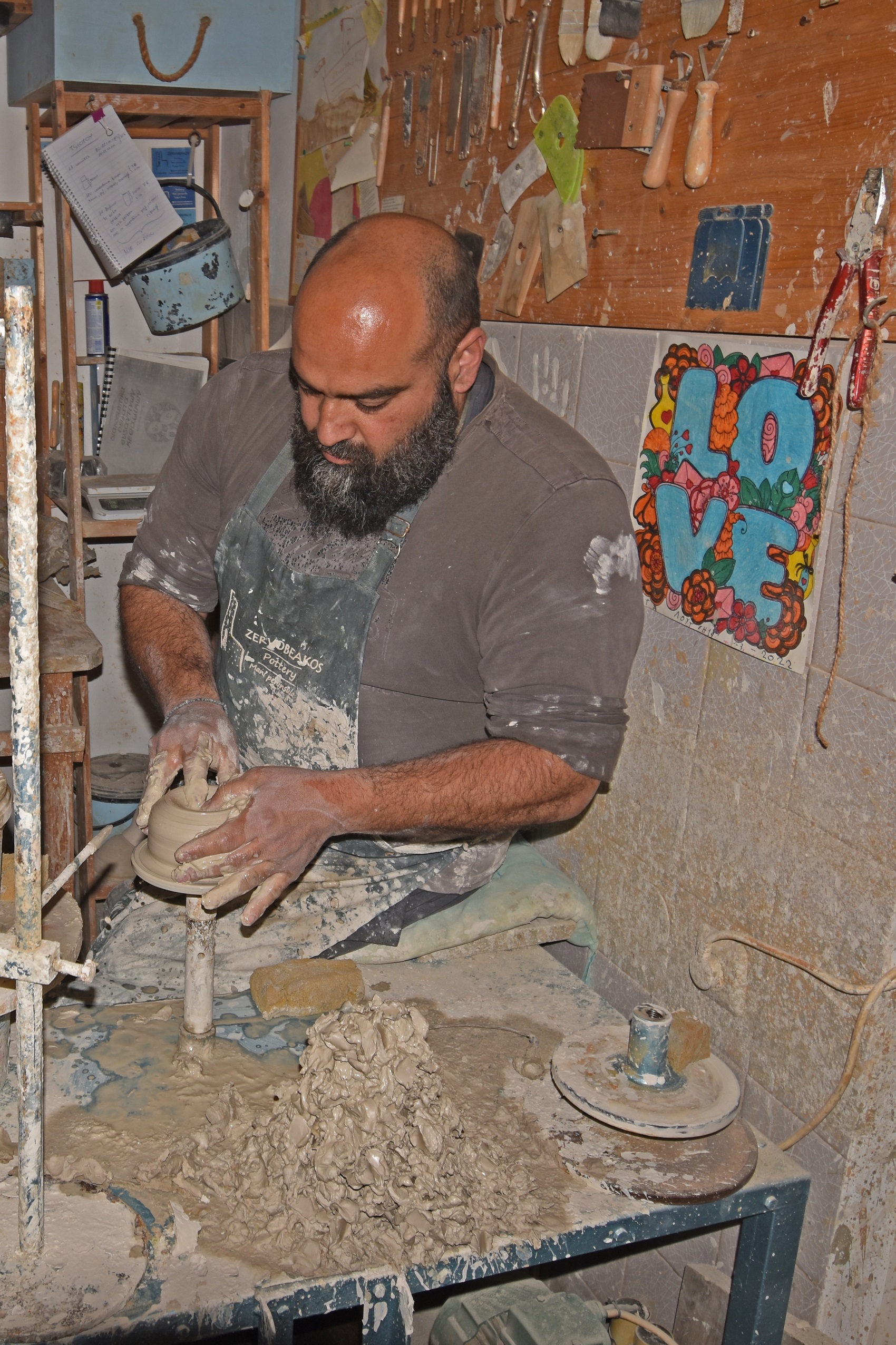 Στο εργαστήριό του, μας δείχνει τη δουλειά του και μας εξηγεί κάποια πράγματα για την ποιότητα των κεραμικών. «Οι μελέτες έχουν δείξει ότι οι αρχαίοι έψηναν τα κεραμικά τους στους 750 βαθμούς Κελσίου και τα βρίσκουμε ακόμα και σήμερα άθικτα. Εμείς στη σύγχρονη εποχή πετυχαίνουμε θερμοκρασίες πάνω από 1.200 βαθμούς, οπότε εύκολα φαντάζεται κανείς πόσο πιο ανθεκτικά είναι στον χρόνο».