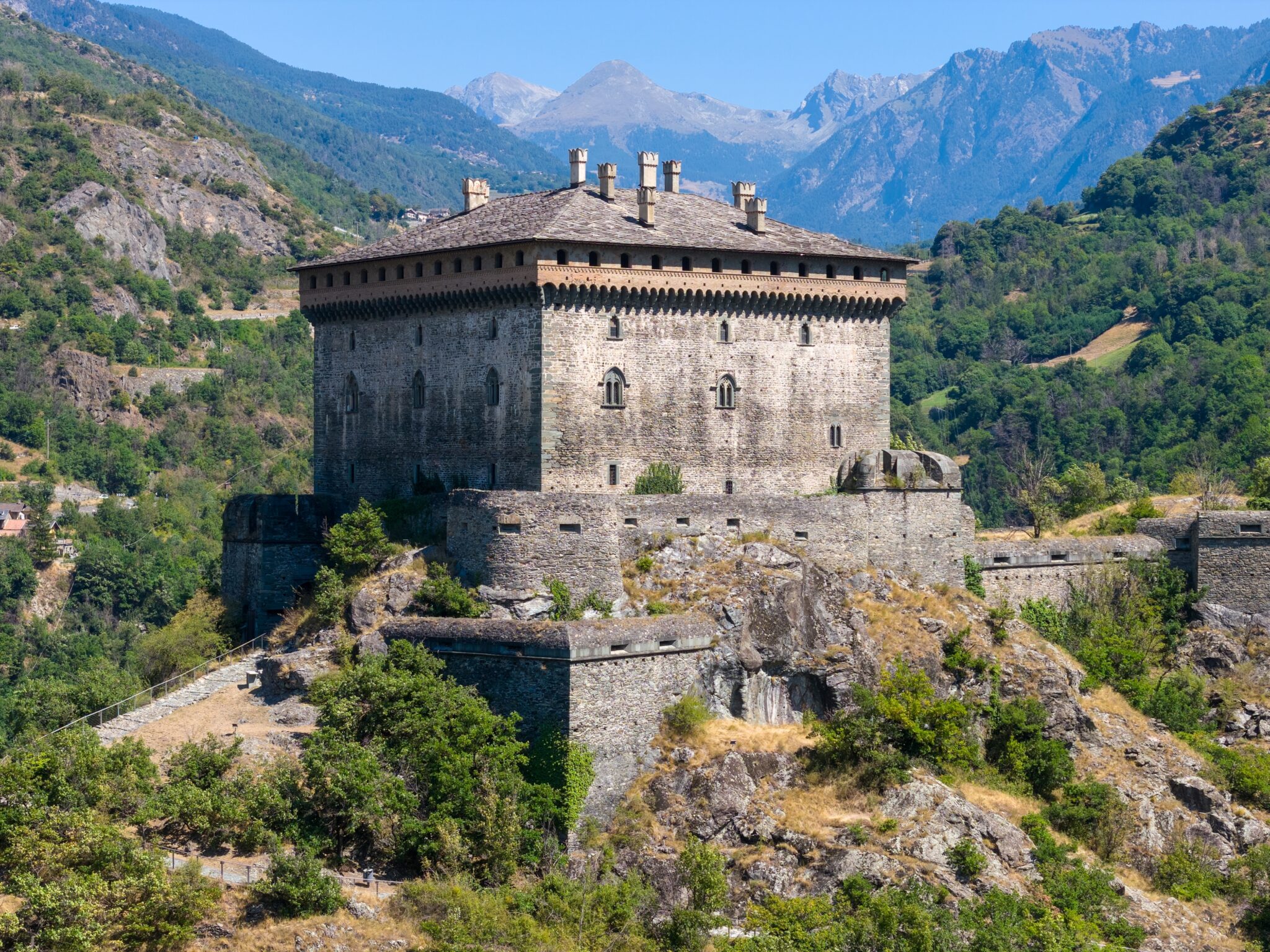 Η περιήγηση στα κάστρα της κοιλάδας της Αόστα δεν μπορεί να μην περιλαμβάνει μια στάση στο θεαματικό Fort Bard, ένα εξαιρετικό παράδειγμα μνημειώδους κλίμακας στρατιωτικής ισχύος. Η θέα του προκαλεί δέος, καθώς επιβάλλεται στο σκηνικό πάνω από τον ποταμό Dora Baltea, σε ένα από τα στενότερα φαράγγια της κοιλάδας. Χτισμένο το 1830, το Fort Bard υιοθετεί ένα έξυπνα σχεδιασμένο τριεπίπεδο αμυντικό σύστημα, στο πρώτο επίπεδο του οποίου το Museo delle Alpi αφηγείται τη στρατιωτική ιστορία της περιοχής. Κι ενώ εδώ μαθαίνουμε ότι το συγκρότημα με τους 283 χώρους κάποτε στέγαζε δεκάδες πυροβόλα και αρκετές αποθήκες για να χωρέσουν πυρομαχικά και προμήθειες για τρεις μήνες, το Museo delle Alpi αποτελεί ένα έξυπνα στημένο, διαδραστικό μουσείο που μας ταξιδεύει σε ολόκληρο τον ορεινό όγκο των Άλπεων.