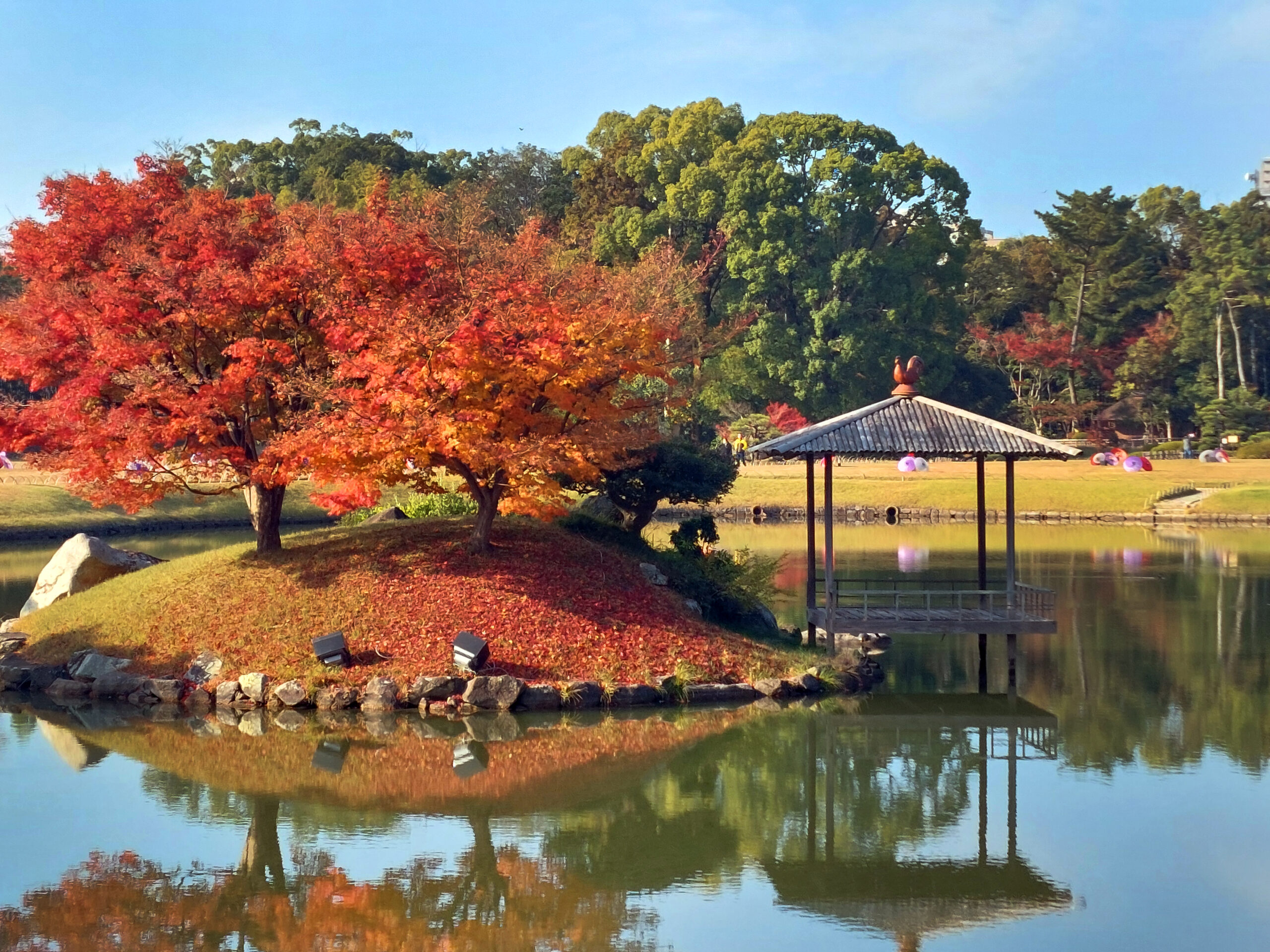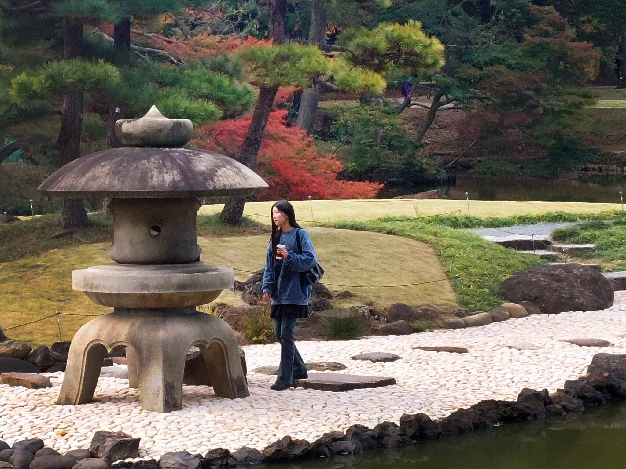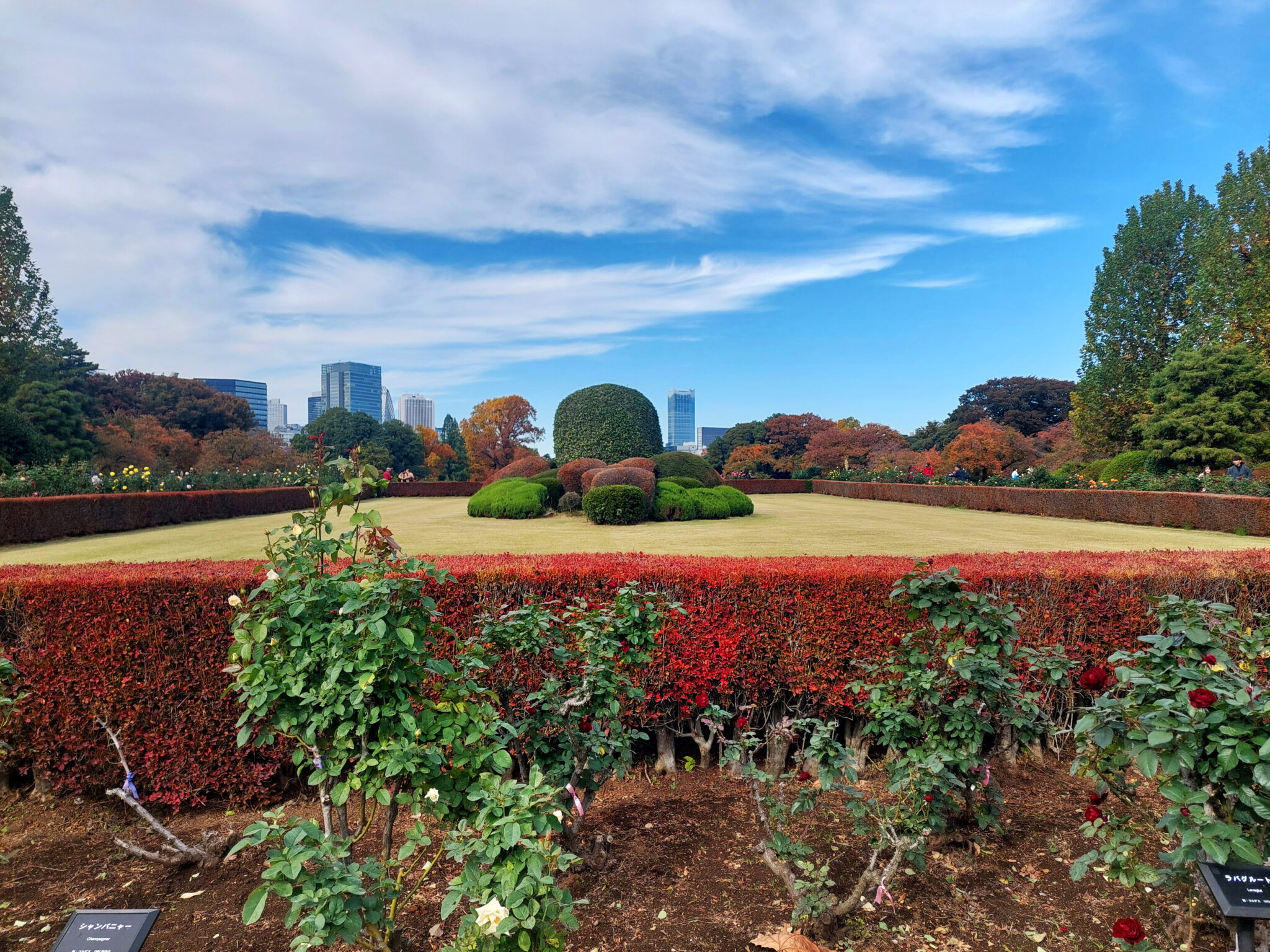 Στην Ιαπωνία δεν υπάρχουν μεγάλες πλατείες. Υπάρχουν όμως μεγάλοι κήποι, όπου οι κάτοικοι καταφεύγουν για ένα μικρό διάλειμμα ή έναν στοχαστικό περίπατο, μακριά από την πολύβουη καθημερινότητα. Το πάρκο Σιντζούκου Γκιοέν είναι ένας πολύ ιδιαίτερος κήπος. Συνδυάζει το ιαπωνικό τοπίο με την γαλλική συμμετρία και το αγγλικό ύφος. Λιμνούλες, βραχάκια, δέντρα, θάμνοι, φυτά, ανθισμένα χρυσάνθεμα, πέτρινα φανάρια και βρύα συνθέτουν το τοπίο που αποπνέει γαλήνη, ομορφιά και χάρη. Καταλαμβάνει 58,53 εκτάρια και φιλοξενεί περισσότερα από 20.000 δέντρα, συμπεριλαμβανομένων εκατοντάδων κερασιών. Ένας περίπατος στα ελικοειδή μονοπάτια του γύρω από τις γαλήνιες λίμνες, μας έδωσε την ευκαιρία να απολαύσουμε την ομορφιά και να θαυμάσουμε τις παραδοσιακές τεχνικές διαμόρφωσης του ιαπωνικού κήπου.