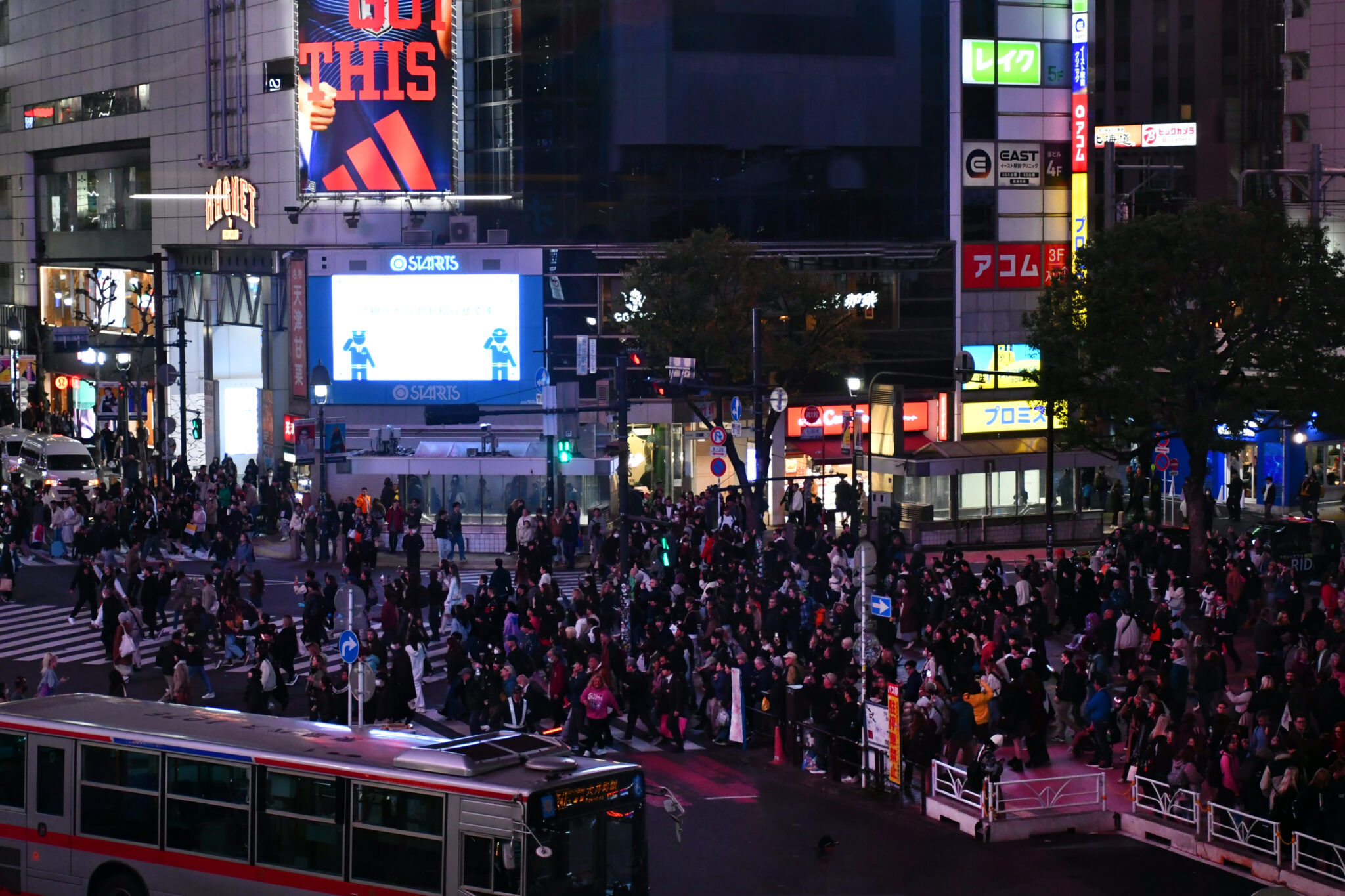 Στη Σιμπούγια, οι ουρανοξύστες φιλοξενούν πλήθος καταστημάτων και εστιατορίων, ενώ η λάμψη των νέον δίνει χρώμα στη νύχτα. Η πολυσύχναστη και πολυφωτογραφημένη διάβαση πεζών Shibuya Scramble Crossing, μια επίδειξη οργανωμένου χάους, αποτελεί θέαμα και ευκαιρία για selfie για τους χιλιάδες τουρίστες που τη διασχίζουν. Περιβάλλεται από ψηλά κτήρια με τεράστιες φωτεινές οθόνες στις προσόψεις και έντονες διαφημιστικές πινακίδες. Δίπλα της, η μικρή πλατεία Χάσικο, με το άγαλμα του πιστού σκύλου -σύμβολο πίστης και αφοσίωσης που έχει συγκινήσει εκατομμύρια ανθρώπους με την ιστορία του- αποτελεί ακόμη ένα σημείο συνάντησης και την επόμενη στάση για φωτογράφηση.