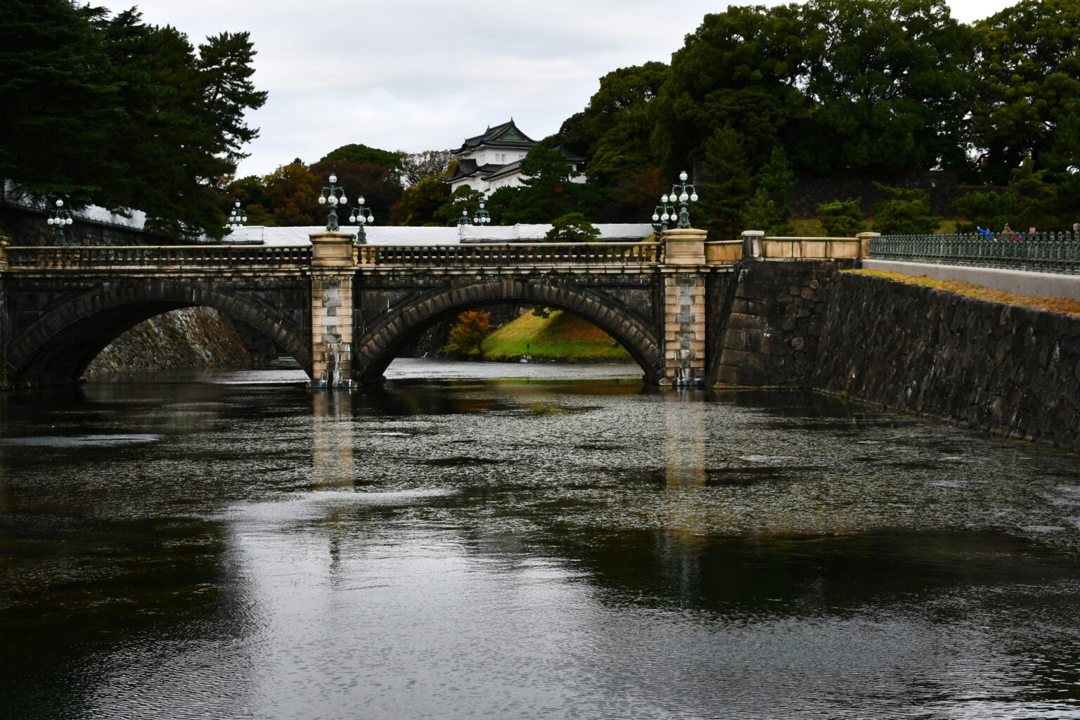 Στην καρδιά του Τόκιο, στην περιοχή Τσιγιόντα, βόρεια και δυτικά του ποταμού Σουμίντα, εδώ όπου ο πρώτος Σογκούν Ιεγιάσου Τοκουγκάβα έχτισε το κάστρο του το 1590, βρίσκεται ακόμη το αυτοκρατορικό παλάτι. Η κατοικία του αυτοκράτορα Ναρουχίτο και της συζύγου του Μασάκο. Η πέτρινη γέφυρα Νιτζουμπάσι με την διπλή καμάρα αποτελεί την κεντρική είσοδο του παλατιού. Οι κήποι του είναι ανοιχτοί για το κοινό μόνον δύο φορές το χρόνο. Η λιτή γεωμετρία των τειχών του αντανακλάται στα νερά της τάφρου Hibiya που το περιβάλλει.