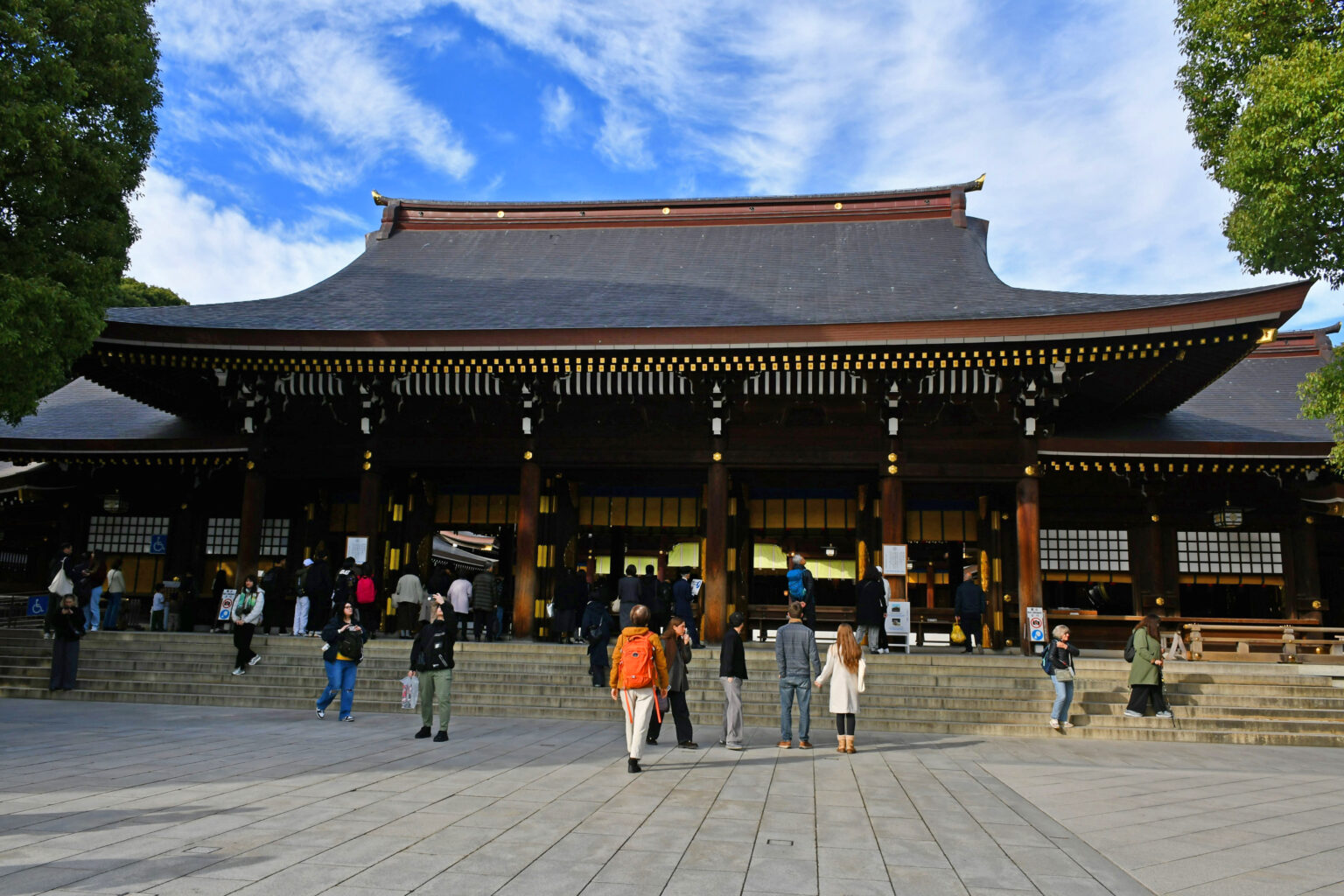 Σε αυτό το υπερσύγχρονο περιβάλλον με τους φρενήρεις ρυθμούς, τα παραδοσιακά αξιοθέατα σπανίζουν. Κι όμως υπάρχει ένα ιερό που συγκεντρώνει ιδιαίτερο ενδιαφέρον. Το ιερό Μεϊτζί (Meiji Jingu) αφιερωμένο στον αυτοκράτορα Μεϊτζί, τον πρώτο αυτοκράτορα της σύγχρονης Ιαπωνίας και την σύζυγό του Σοκέν. Πρόκειται για ένα νεότερο ιερό, το οποίο εγκαινιάστηκε το 1920 και ανακατασκευάστηκε μετά από τον Β΄ Παγκόσμιο Πόλεμο. Βρίσκεται μέσα σε ένα πάρκο με 100.000 δένδρα, τα οποία φυτεύτηκαν μετά από την κατασκευή του.