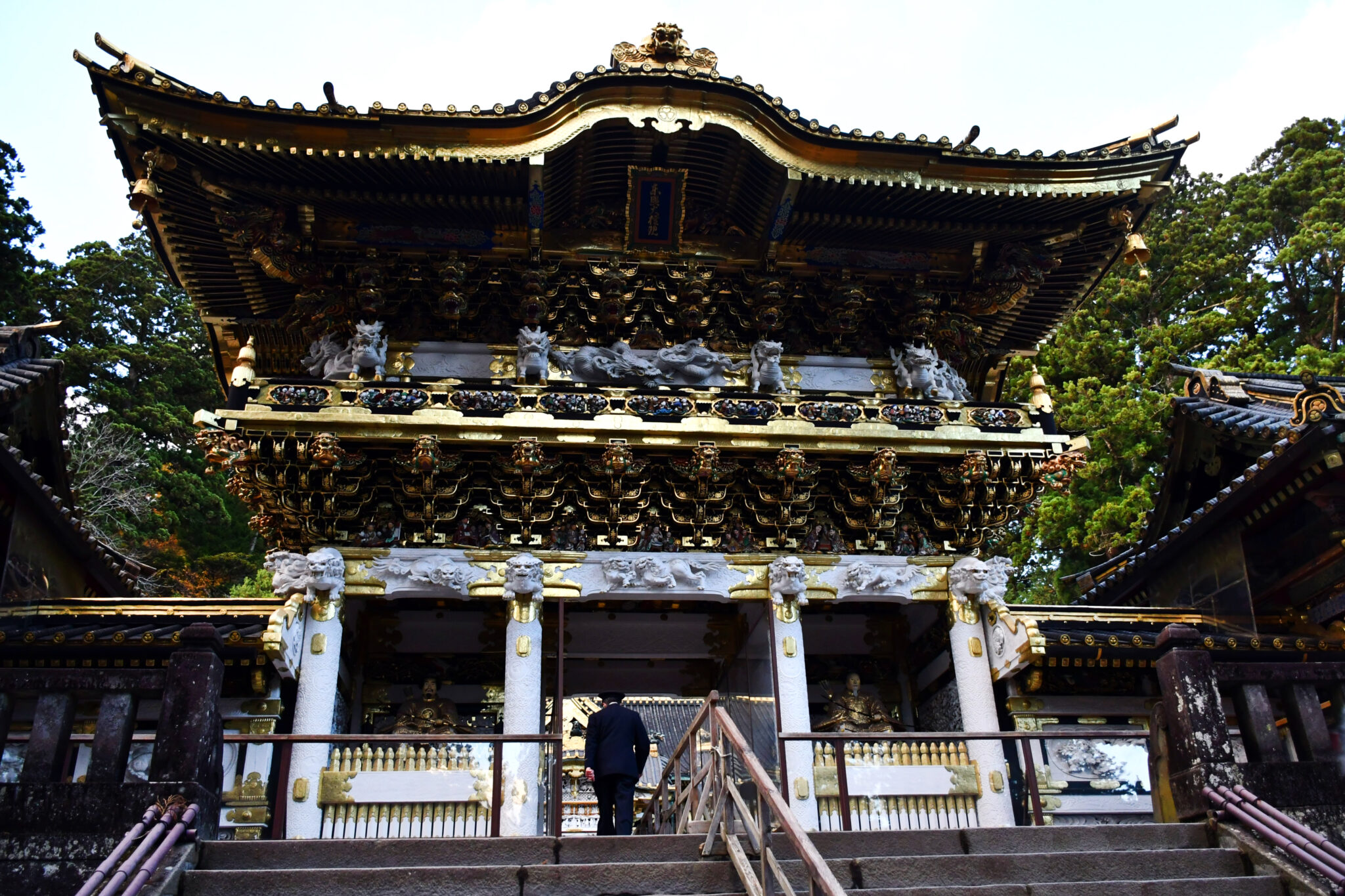Το μεγαλοπρεπές σύνολο γοητεύει τους επισκέπτες με τον περίτεχνο διάκοσμο και τη δεξιοτεχνία των τεχνιτών του, που αντανακλά την ιαπωνική αισθητική και παράδοση. Ανάμεσα στα επιμέρους στοιχεία ξεχωρίζει η πύλη Γιομέιμον, με τους 12 λευκούς κίονες και τα αμέτρητα γλυπτά. Είναι διακοσμημένη με χιλιάδες φύλλα χρυσού, εκατοντάδες ξυλόγλυπτα με συμβολικές μορφές και λεπτοδουλεμένες λακαριστές επιφάνειες.