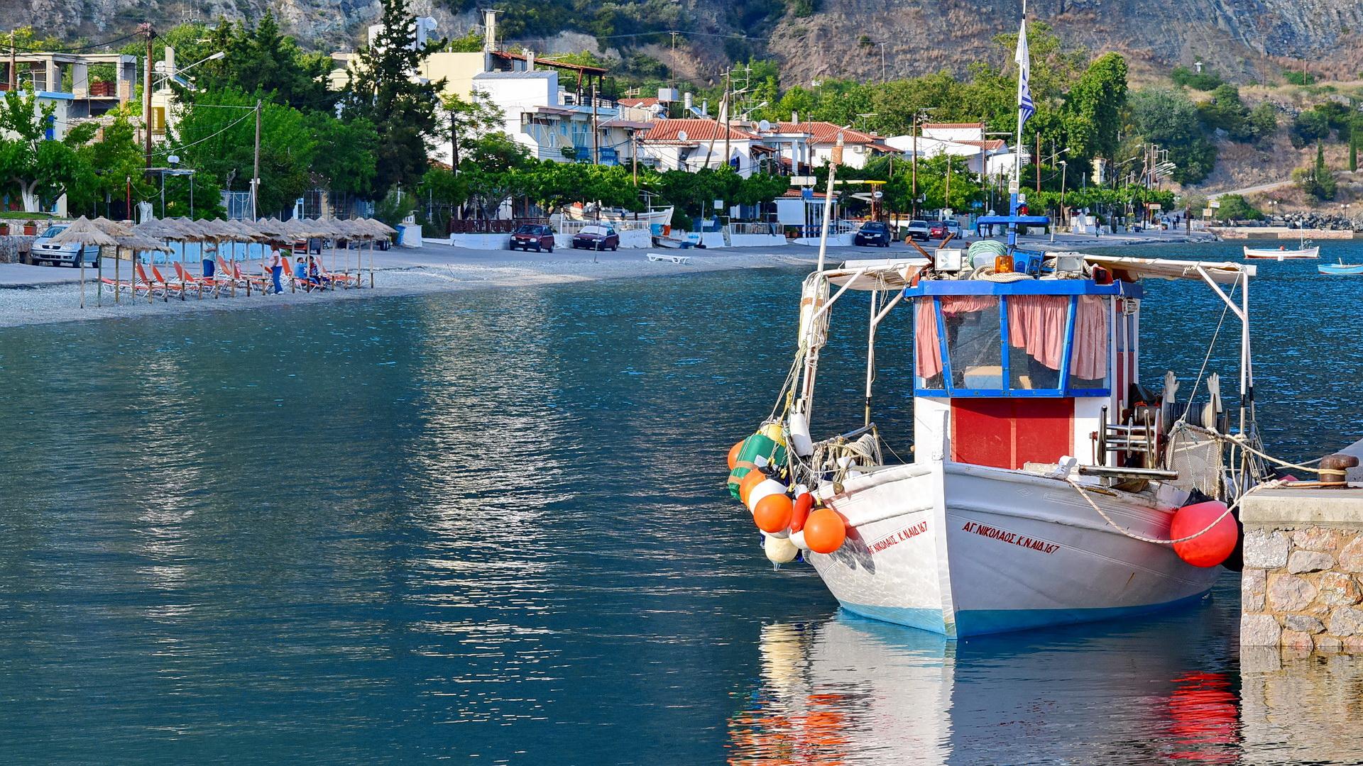 Τα γαλανά, πεντακάθαρα νερά βαθαίνουν απότομα και συνυπάρχουν αρμονικά με το πράσινο από τα πεύκα που τριγυρίζουν το χωριό, ενώ η θάλασσα είναι ήρεμη (σπάνια θα δείτε μεγάλα κύματα εδώ) και ζεστή, προσφερόμενη για μπάνια μέχρι και τον Οκτώβρη. Η παραλία είναι οργανωμένη, αν και θα βρείτε και ελεύθερους χώρους να στήσετε τον δικό σας εξοπλισμό, εφόσον το επιθυμείτε. Επιπλέον, παρότι οι κάτοικοι δεν έχουν αδιαφορήσει για την τουριστική ανάπτυξη, ο τόπος αυτός διατηρεί συνάμα και το προφίλ ενός ήσυχου ψαροχωρίου, με το λιμάνι του να παρέχει τη δυνατότητα να δέσουν μικρά σκάφη αναψυχής ή/και ιστιοπλοϊκά.