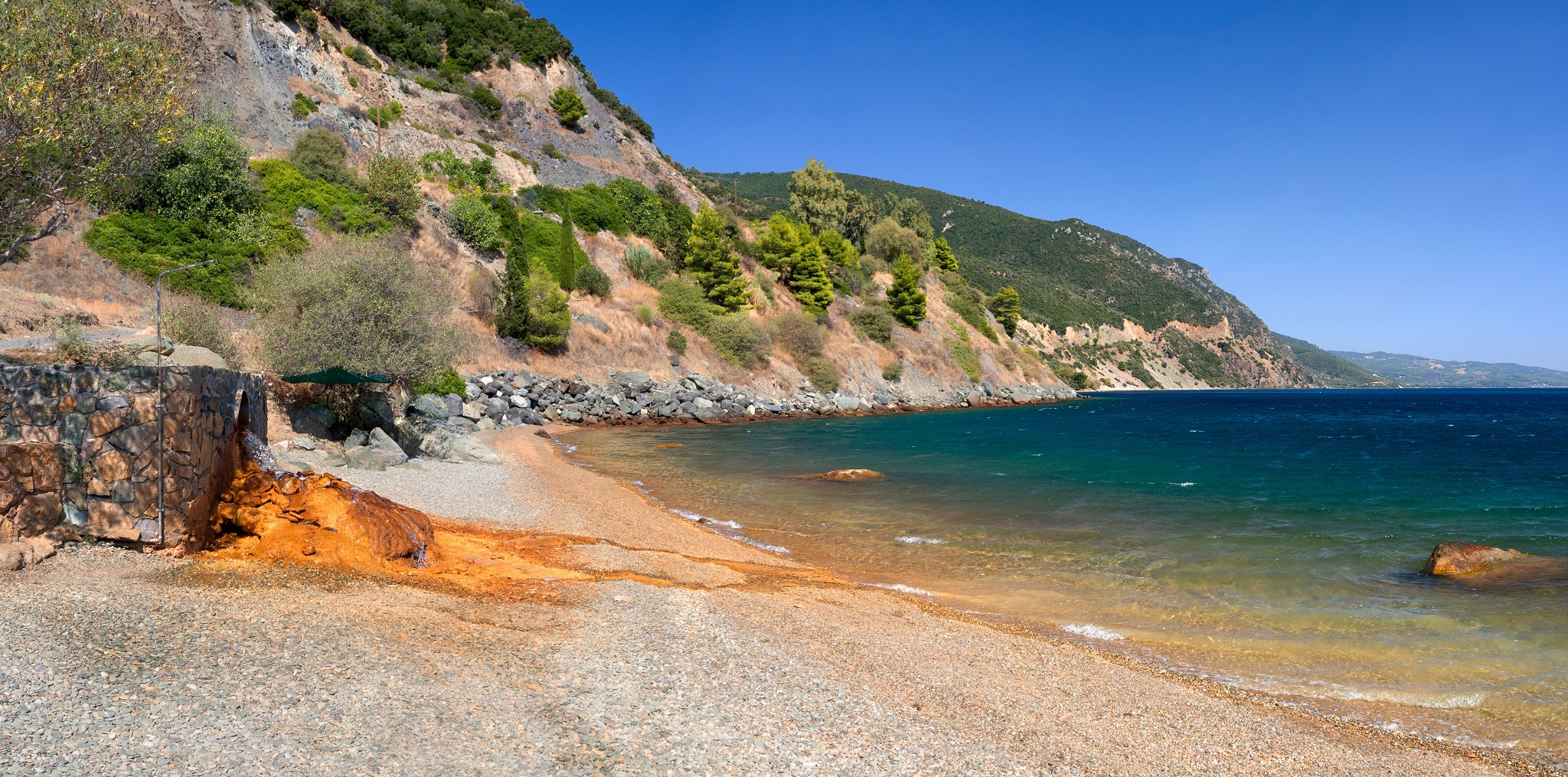 Βύθουρη: Η παραλία της Εύβοιας με τη γαλάζια θάλασσα και τη φυσική σκιά