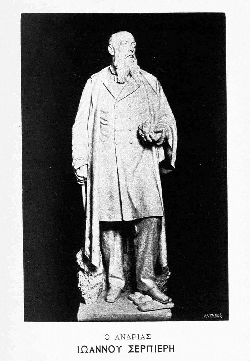 Το ίδιο το άγαλμα έχει μια αρκετά ενδιαφέρουσα ιστορία. Στήθηκε εκεί το 1899 για να αποθεώσει τον Σερπιέρη και το ρόλο που επεφύλασσε για τον εαυτό του ως κατά κάποιον τρόπο ιδρυτή του σύγχρονου Λαυρίου. Το 1982 η τηλεόραση μετέδιδε μια σειρά για το σκάνδαλο των Λαυρεωτικών και τη μεγάλη απεργία των εργατών στο Λαύριο στα τέλη του 19ου αιώνα. Καθώς ο αρνητικός ρόλος του Σερπιέρη γινόταν γνωστός και στις νεότερες γενιές οι κάτοικοι του Λαυρίου ζήτησαν την απομάκρυνση του αγάλματος.