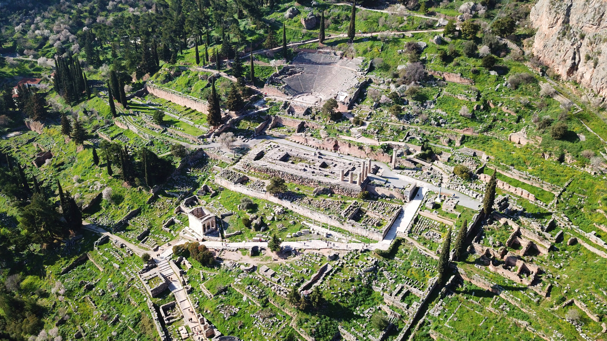 Μην έρθετε με σαγιονάρες, εδώ θα κάνετε ανάβαση σε όχι και τόσο εύκολο μονοπάτι, θέλει κλειστό παπουτσάκι και κατά προτίμηση κάτι σε αθλητικό. Για όσους δεν έχουν πάει ποτέ στους Δελφούς να αναφέρουμε πως ο αρχαιολογικός χώρος απλώνεται σε μια πλαγιά με αρκετή κλίση. Όσο ανεβαίνετε λοιπόν η θέα στα γύρω βουνά και στον ελαιώνα που απλώνεται στον κάμπο και στις πλαγιές είναι πανέμορφη, ενώ η ενέργεια που εκπέμπει το σημείο σας βοηθά να καταλάβετε γιατί οι αρχαίοι Έλληνες έχτισαν αυτά που έχτισαν στη συγκεκριμένη τοποθεσία. Λίγο πριν φτάσετε στο στάδιο, το πιο ψηλό επισκέψιμο σημείο, γυρίστε και θαυμάστε από ψηλά όλα τα μνημεία που απλώνονται στην πλαγιά. Η εικόνα είναι συγκλονιστική.