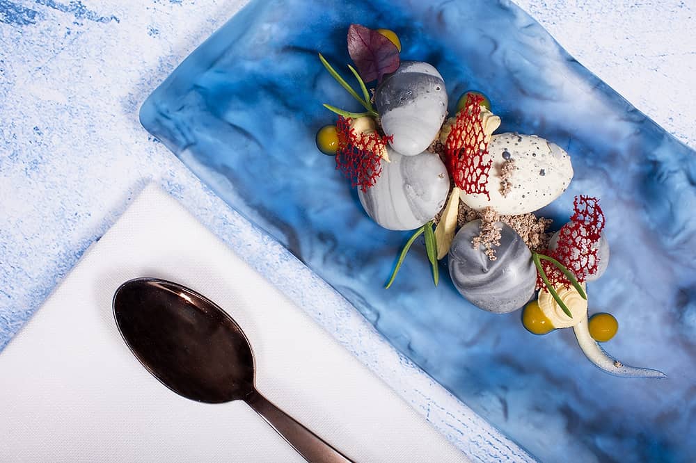Το μενού περιλαμβάνει κυρίως ψάρια, θαλασσινά και φρέσκα, ντόπια ζαρζαβατικά, ενώ ο σεφ Pasquale Palamaro είναι γνωστός για τα ελαφριά πιάτα του με την εκπληκτική παρουσίαση. Τα μενού γευσιγνωσίας ξεκινούν από 95 ευρώ.