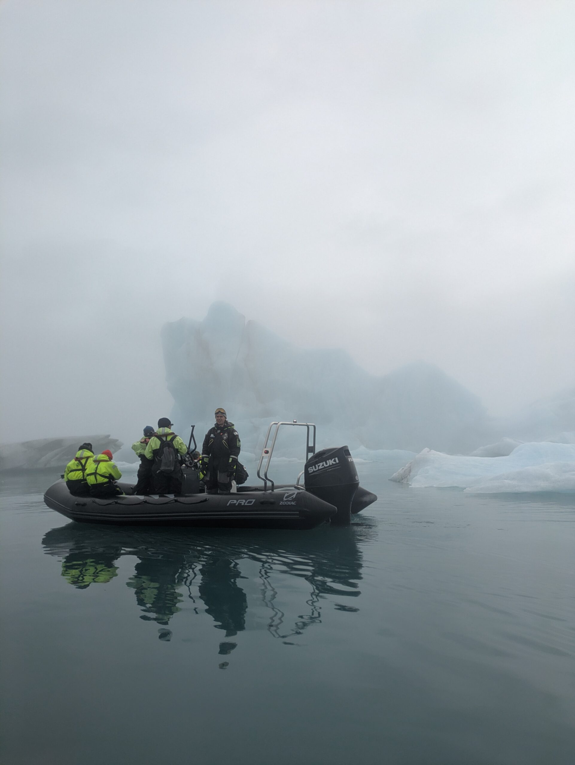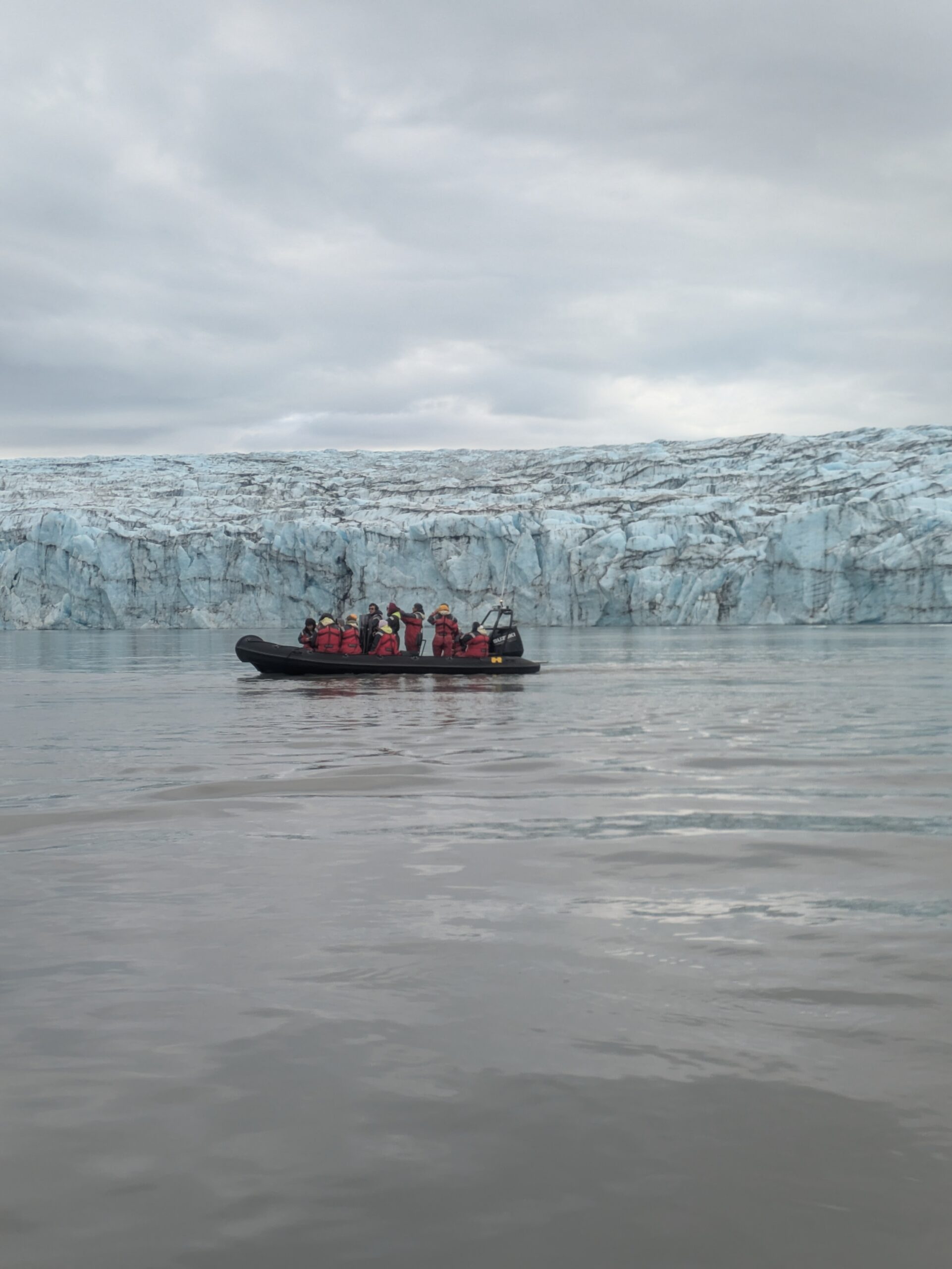 Επιστρέφουμε στη λίμνη ακριβώς στην ώρα για το ραντεβού με τους οδηγούς μας στη διαφορετική κρουαζιέρα που έχουμε κλείσει για σήμερα στην παγετωνική λίμνη. Μαζί με τους συνεπιβάτες μας, που έχουν έρθει από κάθε γωνιά της Γης, είμαστε συνολικά καμιά εικοσαριά άτομα. Φοράμε ολόσωμες αδιάβροχες στολές με επένδυση και σωσίβια, ενημερωνόμαστε για τις οδηγίες ασφαλείας που πρέπει να ακολουθήσουμε πιστά όσο θα πλέουμε στη βαθύτερη λίμνη της χώρας (το βάθος της ξεπερνά τα 280 μέτρα) και μοιραζόμαστε σε δύο zodiacs.