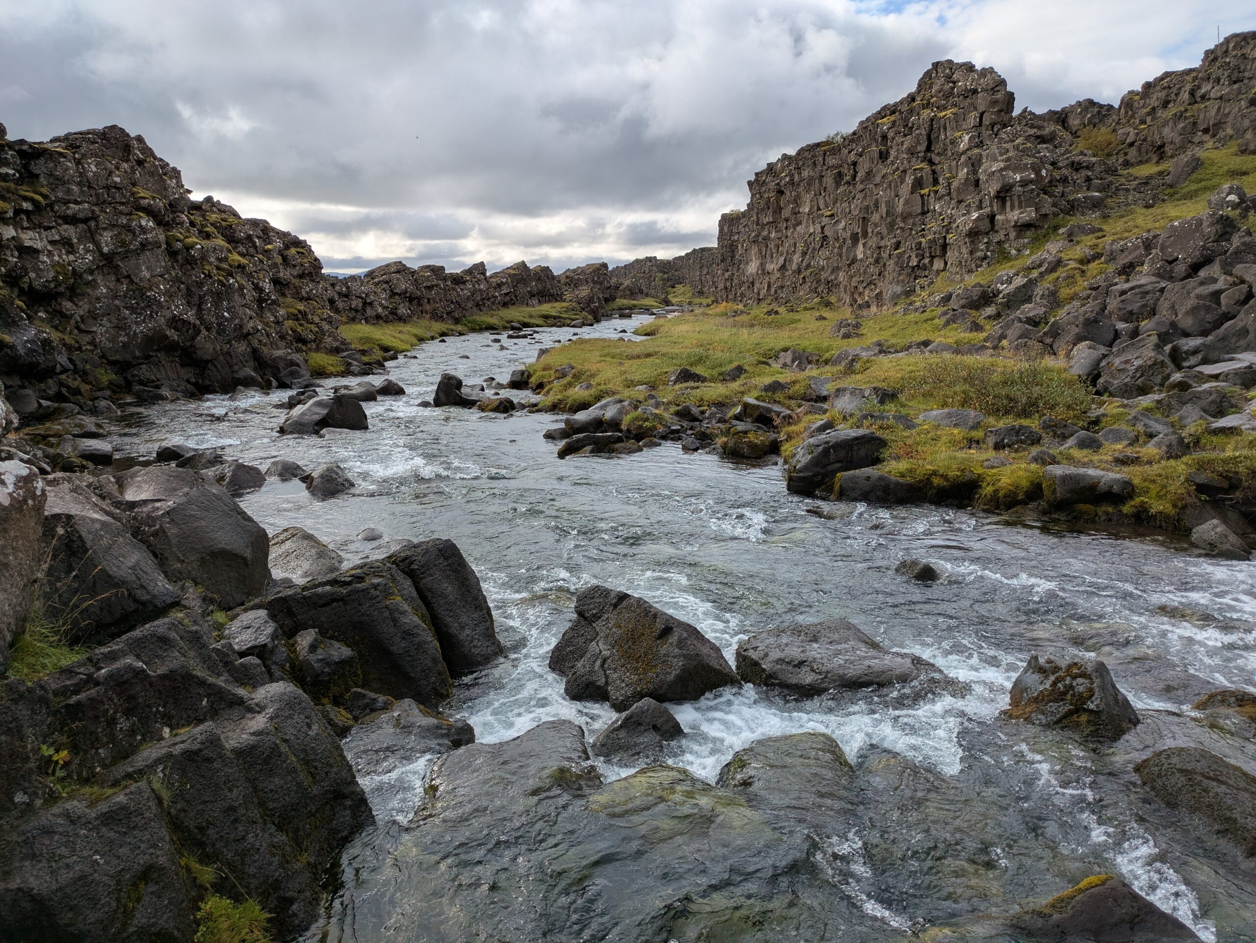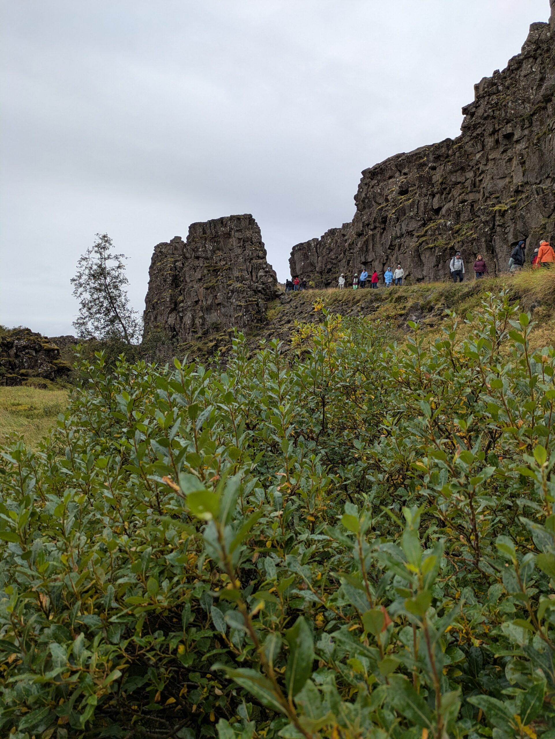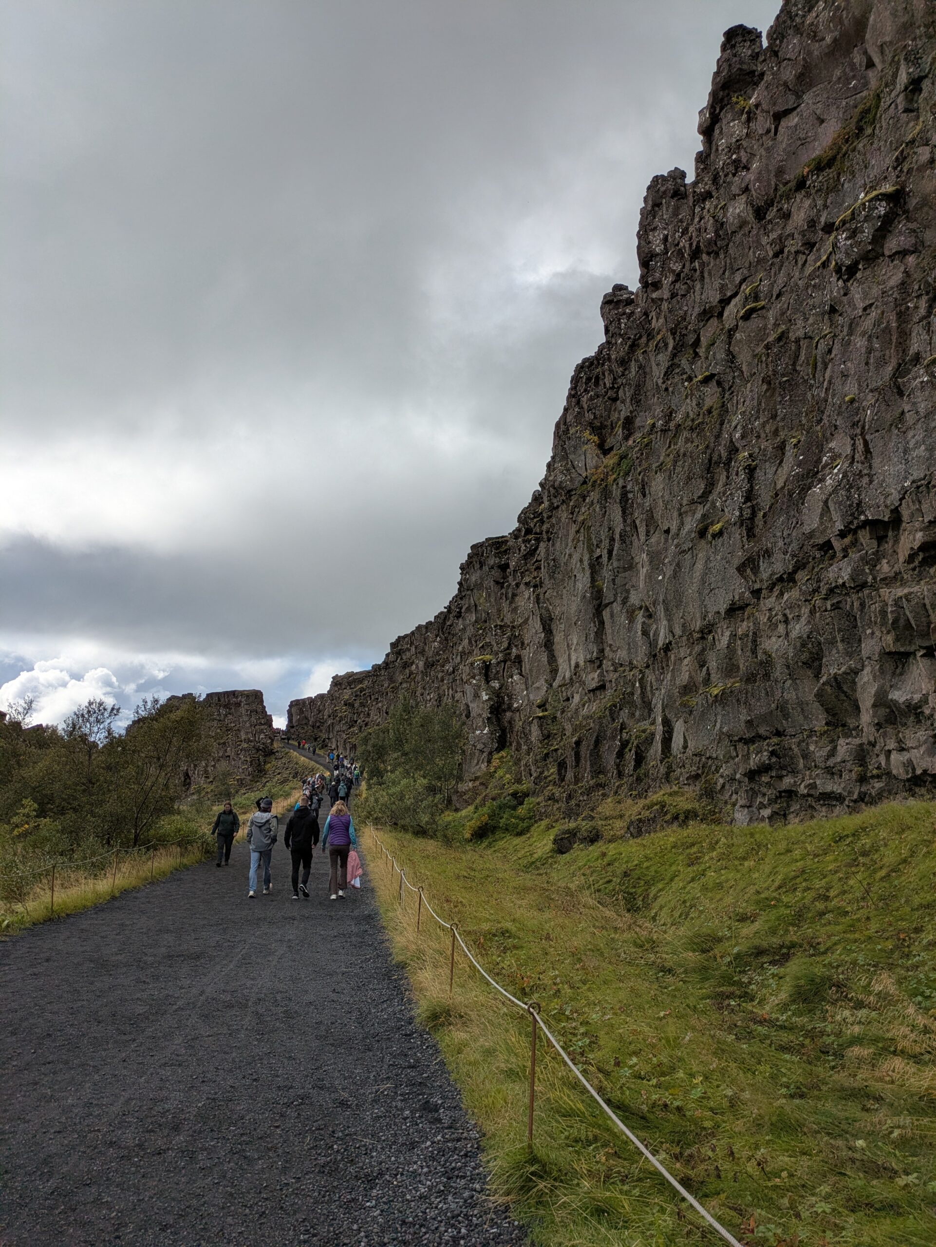 Το μονοπάτι της εισόδου πλαισιώνεται από δύο πέτρινα τείχη. Μοιάζουν με ανθρώπινη κατασκευή αλλά είναι μια φυσική εξέλιξη της ραγδαίας αλλαγής της μορφολογίας του εδάφους σε αυτή την περιοχή της Ισλανδίας με την ασταμάτητη τεκτονική δραστηριότητα. Η εξήγηση είναι αρκετά απλή: στο Εθνικό Πάρκο Thingvellir, Μνημείο Παγκόσμιας Κληρονομιάς της UNESCO από το 2004, που εκτείνεται κατά μήκος του ποταμού Oxara, συναντώνται οι τεκτονικές πλάκες της Βόρειας Αμερικής και της Ευρασίας. Μάλιστα στο μεταξύ τους ρήγμα, Silfra, μπορείς να καταδυθείς χωρίς δίπλωμα, με τον ειδικό εξοπλισμό και την καθοδήγηση των εταιρειών που δραστηριοποιούνται στην περιοχή.