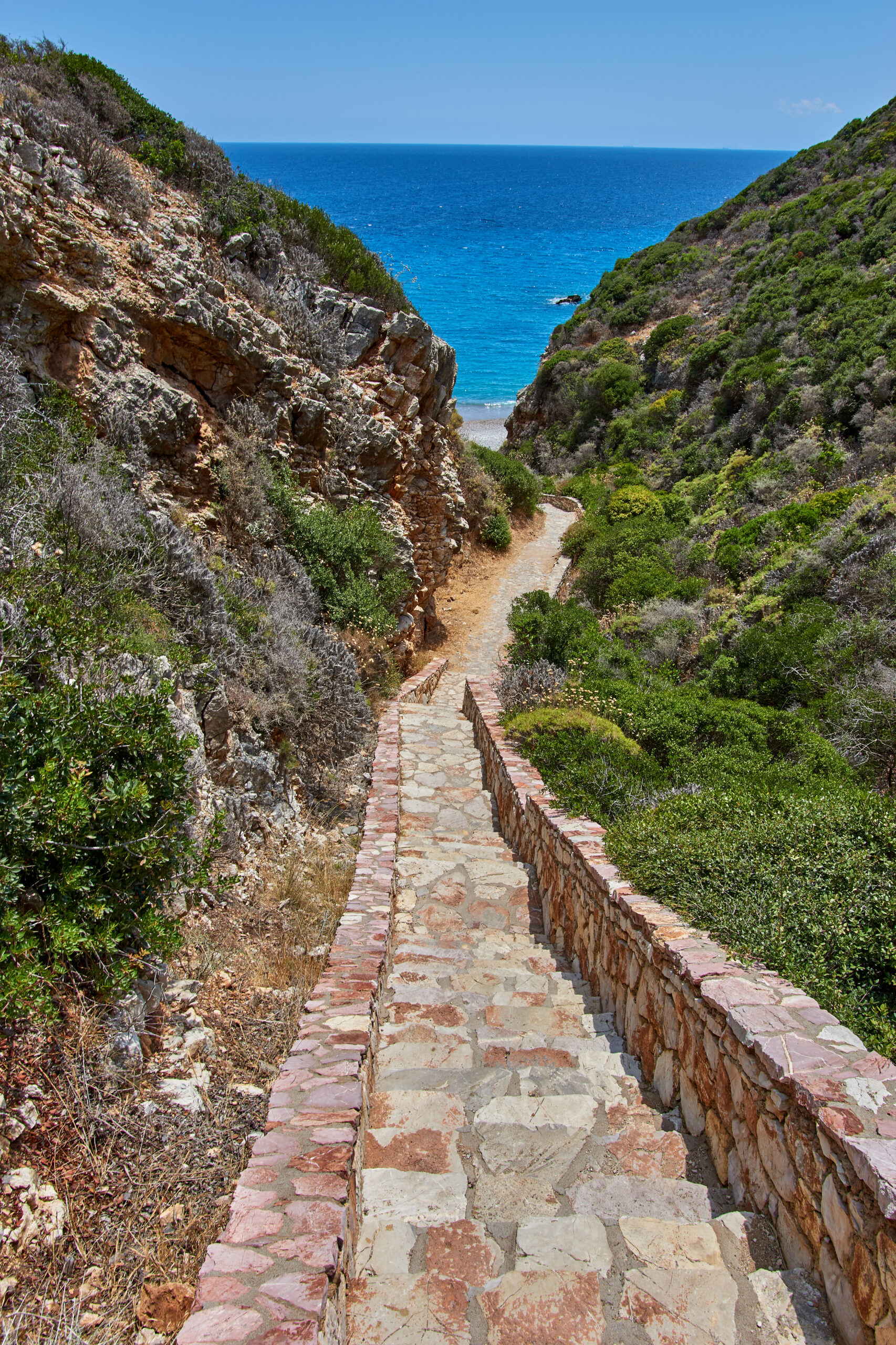 Όποια διαδρομή κι αν διαλέξετε, ο δρόμος έχει άσφαλτο στο μεγαλύτερο μέρος του, μετατρεπόμενος σε χωματόδρομο στα τελευταία του μέτρα. Φτάνοντας εκεί θα βρείτε χώρο στάθμευσης στην είσοδο προς την παραλία, στην οποία θα πατήσετε αφού κατέβετε τα 162 λίθινα σκαλοπάτια που οδηγούν εκεί: ο αριθμός τους τείνει να ποικίλει ανάλογα το δημοσίευμα το οποίο θα διαβάσετε, ωστόσο η σχετική πινακίδα που θα δείτε φτάνοντας γράφει ότι είναι 162 (βλέπε και φωτογραφία παρακάτω). Η κάθοδος γίνεται εύκολα, αλλά η άνοδος ενδεχομένως να ζορίσει κάποιους, εφόσον χρειαστεί να κουβαλάτε και τις ομπρέλες σας επιστρέφοντας στο πάρκινγκ.