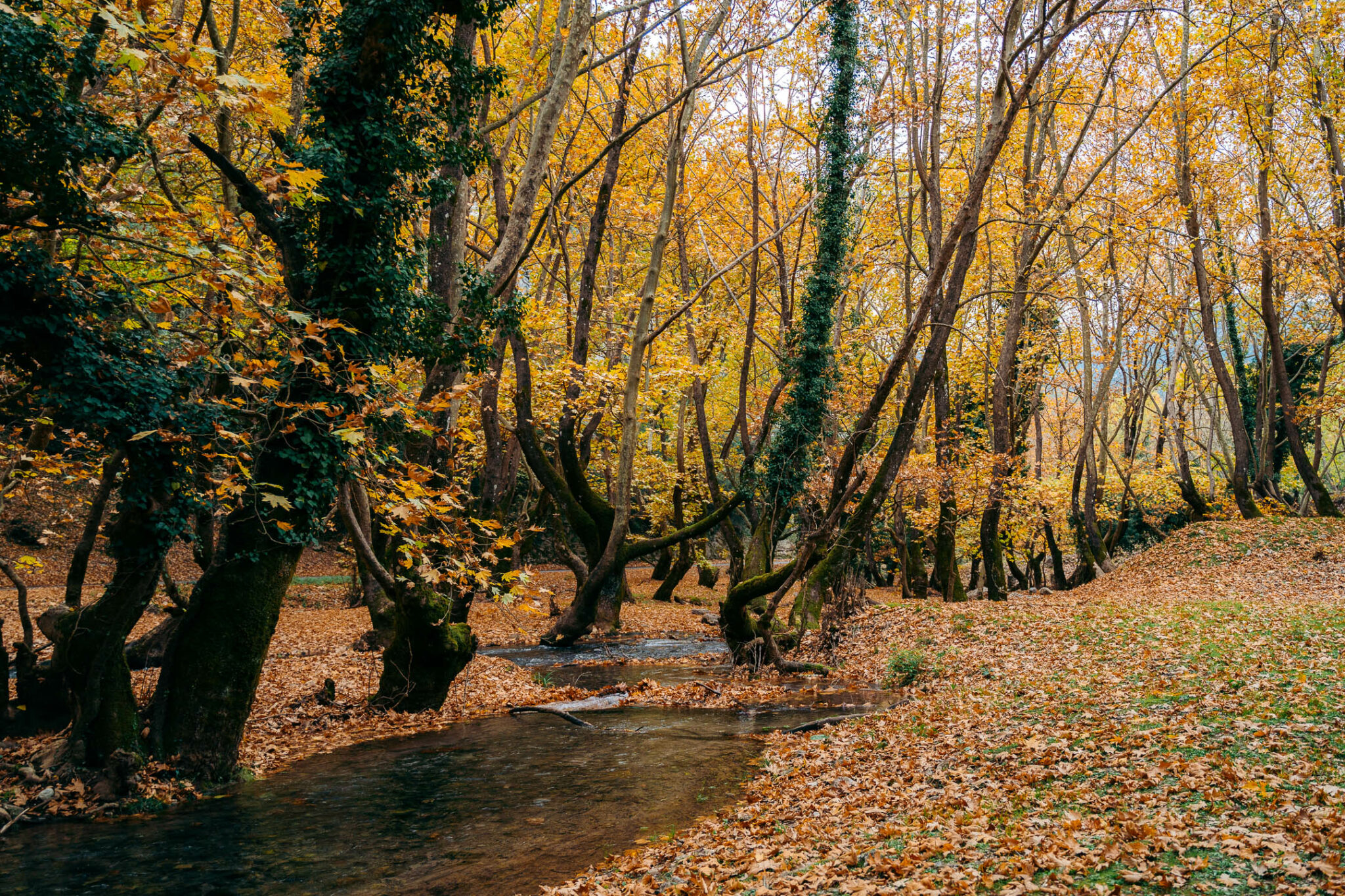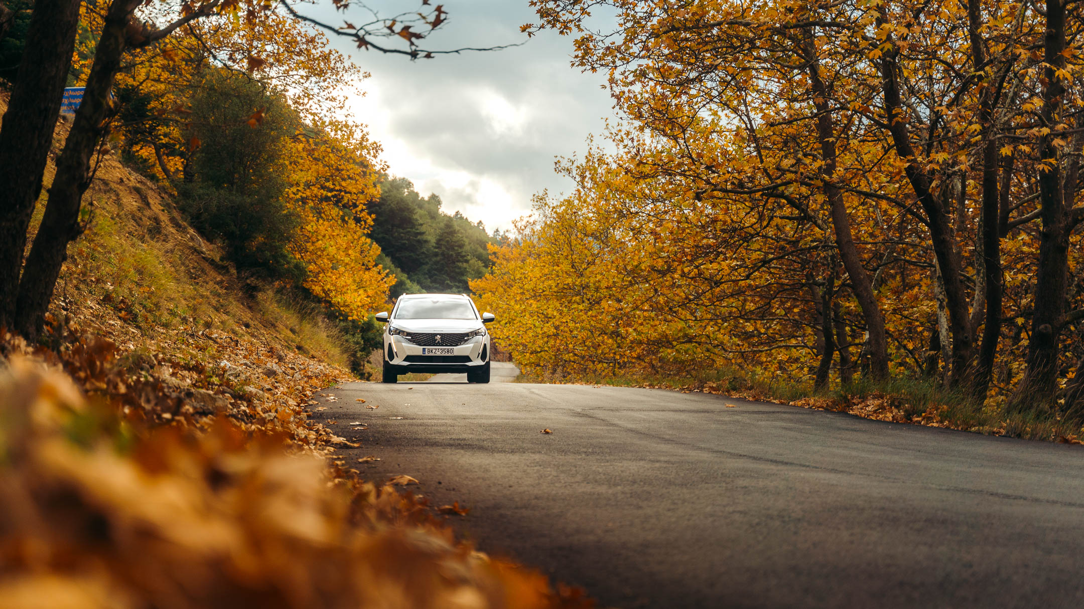 Ψιχαλίζει για τα καλά, όταν μετά τη στάση μας στη Μονή του Μεγάλου Σπηλαίου, βρισκόμαστε στη διασταύρωση προς Ζαχλωρού. Ένα χωριό γεμάτο ιστορίες, εικόνες και θρύλους. Θα το επισκεφτούμε μία άλλη μέρα, αλλά σήμερα δεν μπορούμε να μην βρεθούμε εδώ στα πρώτα μέτρα της στροφής προς Ζαχλωρού, όπου τα φύλλα από τα πλατάνια έχουν φτιάξει ένα πανέμορφο καφεκίτρινο χαλί. Απολαμβάνουμε μοναδικές εικόνες, και για μία ακόμη φορά γίνεται ξεκάθαρο στη σκέψη μου, πως κάθε εποχή του χρόνου έχει να επιδείξει μία μοναδική ομορφιά. Η ομίχλη έχει πέσει βαριά, αλλά οι προβολείς Peugeot Full LED Technology, οι οποίοι διαθέτουν την λειτουργία “Foggy mode” για οδήγηση σε συνθήκες χαμηλής ορατότητας και την λειτουργία στατικού κατευθυντικού φωτισμου SDL (Static Directional Lighting), βελτιστοποιούν την ορατότητα στις στροφές κάνοντας την οδήγηση και μέσα στην ομίχλη, ένα διασκεδαστικό και ασφαλές παιχνίδι. Ας ακολουθήσουμε τη ροή και με αυτό τον τρόπο θα απολαμβάνουμε το καθετί. Η Αμαλία μιλάει ξανά μόνη της. Κάθε φορά που βρισκόμαστε μπροστά σε όμορφες εικόνες, κάνει τους δικούς της σχεδιασμούς, ψάχνει την κατάλληλη οπτική, και γενικότερα δείχνει να το απολαμβάνει.