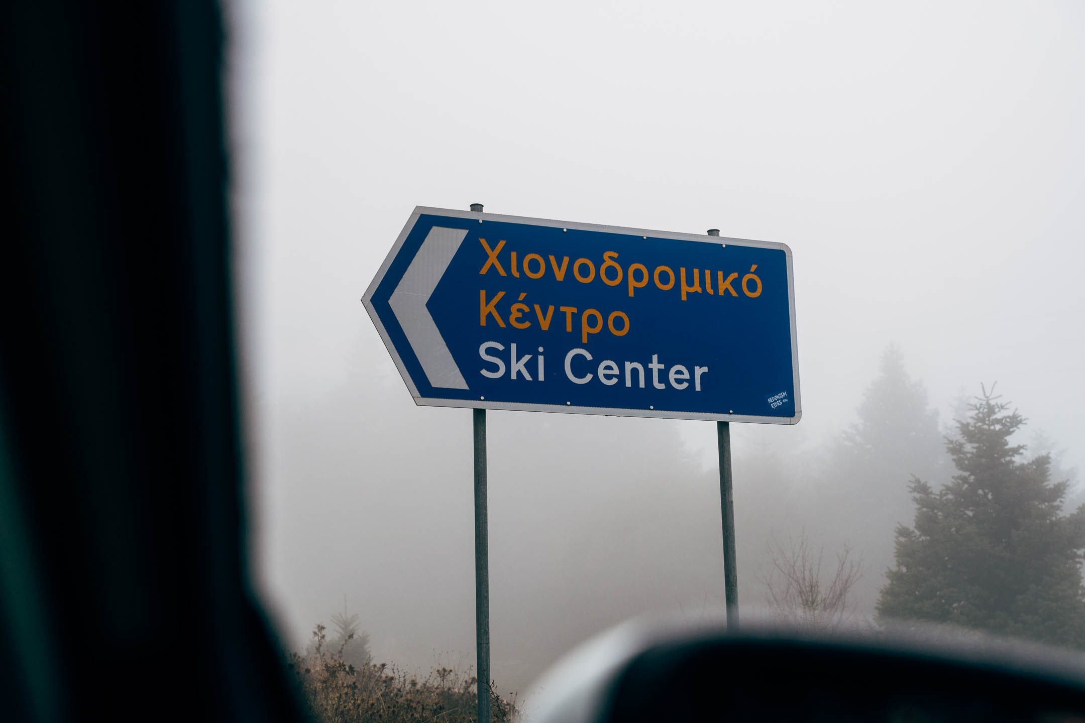 Οι λιγοστές, αλλά έντονες στροφές που ακολουθούν, θα μας οδηγήσουν στην κορυφή του λόφου πάνω από τα Καλάβρυτα. Εδώ που τα δέντρα πασχίζουν να καλύψουν κάθε ελεύθερο χώρο. Ανεβαίνοντας, και πλησιάζοντας τη στροφή προς το χιονοδρομικό, η ομίχλη, έχει πέσει πολύ χαμηλά, κάνοντας την εικόνα ακόμη πιο μαγική.