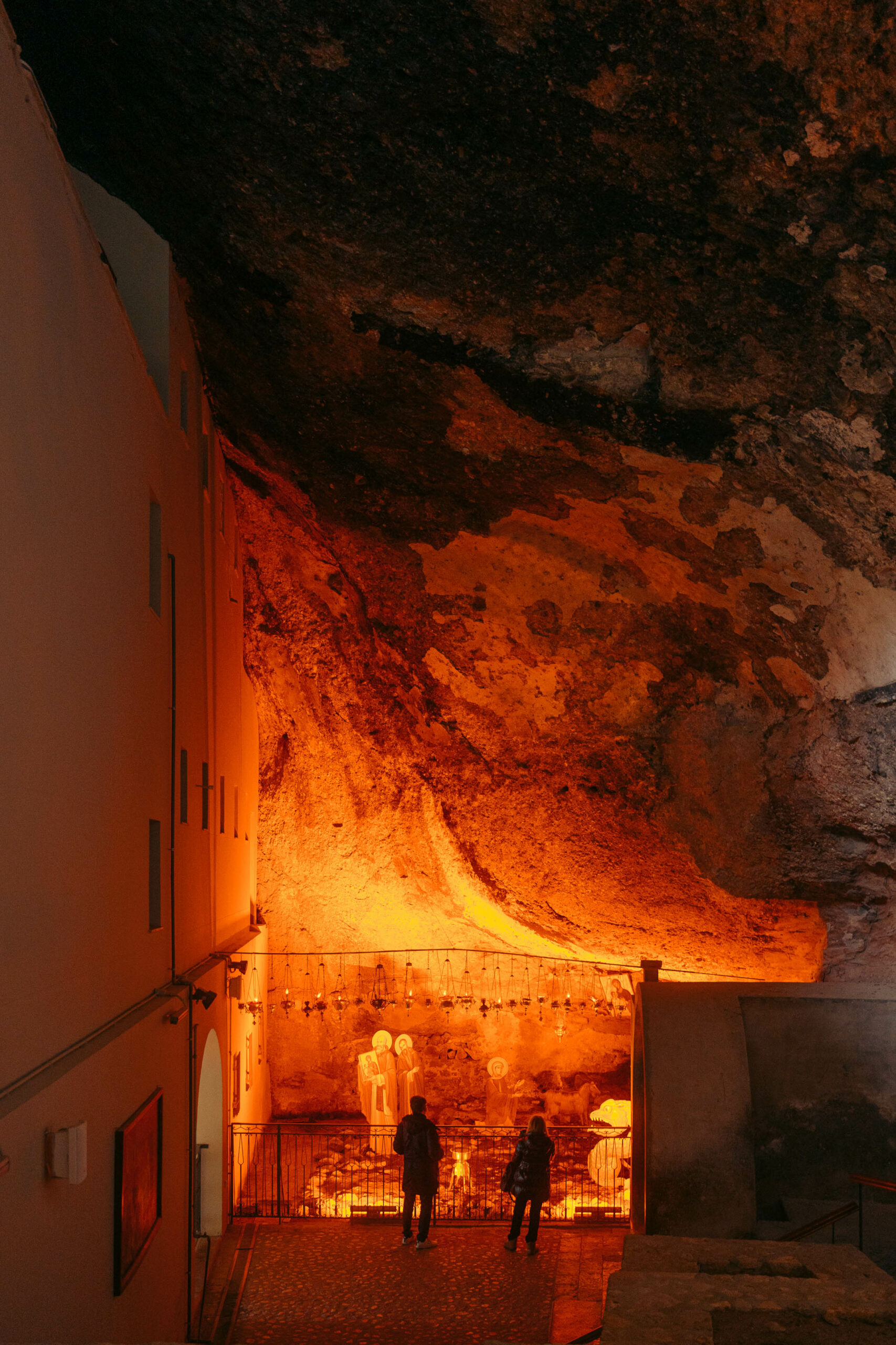Ανηφορίζοντας προς τα Καλάβρυτα και παρόλο που το πρόγραμμά μας, έχει επίσκεψη στη Μονή Μ. Σπηλαίου την επόμενη μέρα, δεν μπορείς να δεις αυτό το συγκλονιστικό θέαμα και να μην σταματήσεις. Η Αμαλία ετοιμάζει την φωτογραφική της, κάνει κάποιες λήψεις μέσα από τα παράθυρα του Peugeot 3008, και ψιθυρίζει: «εδώ θα πετάξω το drone». Η Μονή, είναι κολλημένη με πείσμα πάνω σε έναν κάθετο βράχο, προκαλώντας δέος. Μέσα στο ναό, βρίσκονται διατηρημένες τοιχογραφίες του 1653, αλλά και ένα καταπληκτικό ξυλόγλυπτο τέμπλο.