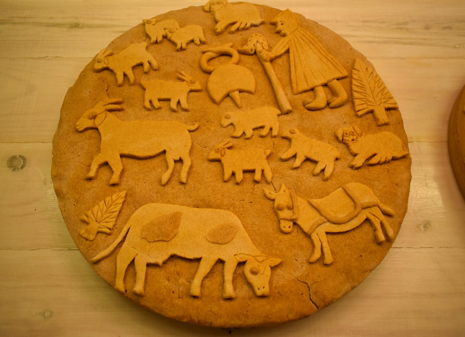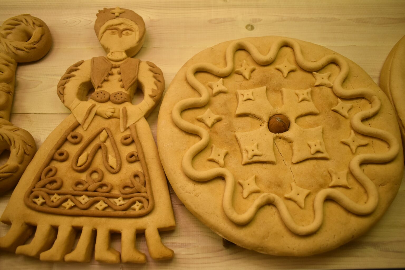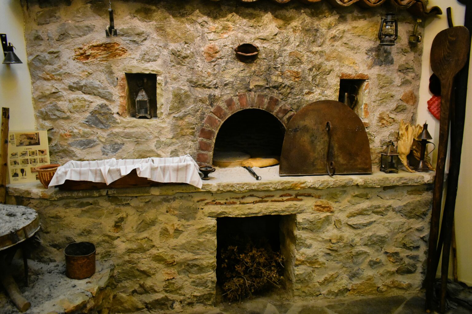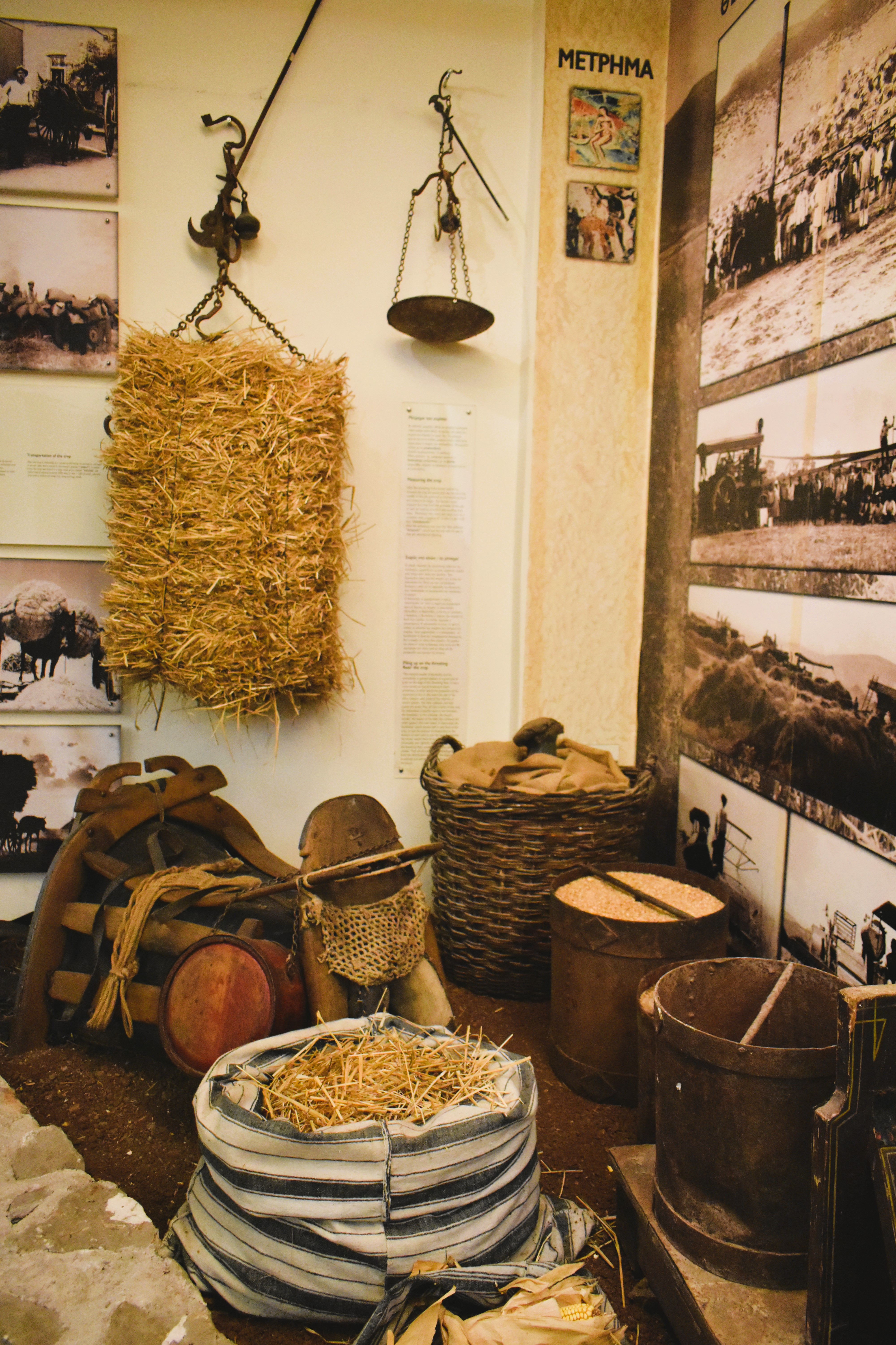 Ξεκινώντας από το σπόρο και καταλήγοντας στο αλεύρι, ένας ολόκληρος κύκλος ξετυλίγεται μπροστά μας από την καλλιέργεια των σιτηρών ως το άλεσμα, ενώ μια δεύτερη ενότητα φτάνει ως το πλάσιμο, το διάκοσμο και το ψήσιμο. Σημαντικές στιγμές όπως η γέννηση κι ο γάμος και γιορτές όπως τα Χριστούγεννα, το Πάσχα κι ο θερισμός, εκπροσωπούνται με ανάγλυφα σχέδια απίστευτης λεπτομέρειας πάνω σε «λαμπροκουλούρες» με κόκκινα αυγά που προορίζονται για βαφτιστήρια, «πρεβέντες του τσοπάνη» με βουκολικό διάκοσμο ή «του σπιτιού» που ζυμώνονται για την Πρωτοχρονιά, «κοκόσια» όπως αποκαλούνται οι μικρές κουλουρίτσες με καρύδια για τα παιδιά που λένε τα κάλαντα, «σαραντοκουλούρες» που καταναλώνονται στη νηστεία της Σαρακοστής, «Χριστόψωμα», «Μαγιοκουλούρες» και άλλα ακόμη πιο ευφάνταστα ψωμιά που σχετίζονται με τους νεόνυμφους. Γύρω τους, τοπικές ενδυμασίες, κεντήματα, υφαντά και παλιά οικιακά σκεύη εμπλουτίζουν την έκθεση, δημιουργώντας ένα παραδοσιακό, όχι και τόσο μακρινό σκηνικό.