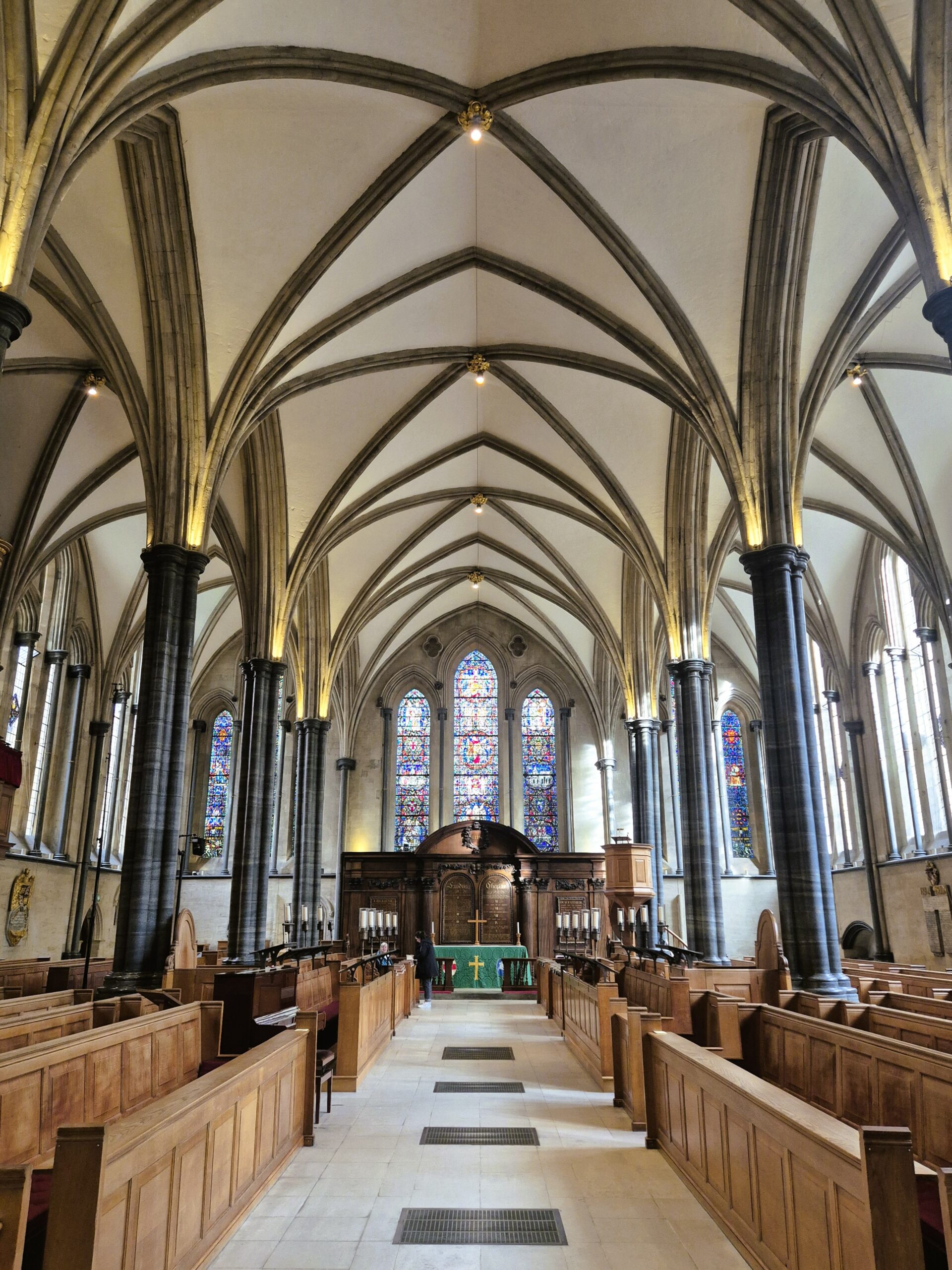 Μπαίνοντας στο θεαματικό εσωτερικό, μια υπερφυσική αίσθηση κατακλύζει τον επισκέπτη. Από τα διαδοχικά γοτθικά σταυροθόλια και τις ψηλόλιγνες κολώνες ως τη μελί απόχρωση που παίρνουν οι τοίχοι καθώς τα πολύχρωμα βιτρό παράθυρα διαχέουν το φως, όλα φαίνεται να υπογραμμίζουν τα οκτακόσια χρόνια ιστορίας που ξεδιπλώνονται γύρω μας: από τον 12ο αιώνα και τους Σταυροφόρους, στις αναταραχές της Μεταρρύθμισης, και ως το παρόν και τη διοργάνωση των περίφημων κονσέρτων εκκλησιαστικής μουσικής, που θεωρούνται από τα κορυφαία του Λονδίνου χάρη στην άριστη ακουστική του ναού.