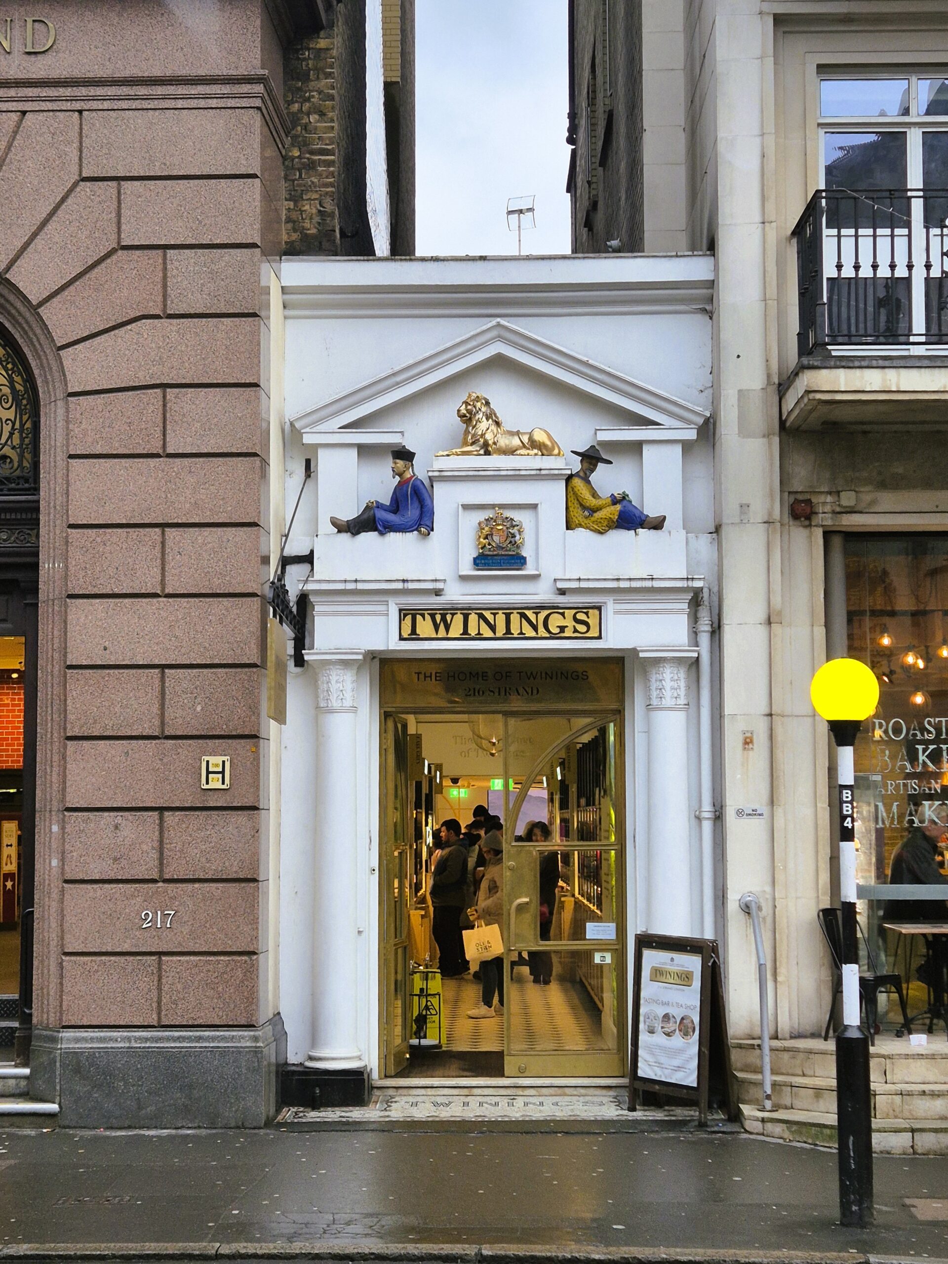 Twinings: Στη νησίδα απέναντι από τα Βασιλικά Δικαστήρια θα δείτε και το όριο που υποδεικνύει το πέρασμα από το Westminster στο λεγόμενο Square Mile, ενώ στην άλλη πλευρά του δρόμου, βρίσκεστε σε ένα ακόμη σημείο όπου ξεκίνησε μια συναρπαστική ιστορία. Αυτή τη φορά πρόκειται για το παλαιότερο κατάστημα τσαγιού στο Λονδίνο, ηλικίας 320 ετών, στην ίδια διεύθυνση -216 Strand- και με το ίδιο λογότυπο από το 1706. Το μικροσκοπικό Twinings, στρυμωγμένο μεταξύ των γειτονικών κτηρίων, φέρει περήφανα το βασιλικό θυρεό της βασίλισσας Βικτώριας -που η ίδια απένειμε το 1837 ως αναγνώριση της εξαιρετικής ποιότητας των προϊόντων του-, είναι υπεύθυνο για την δημιουργία του διάσημου τσαγιού Earl Grey, κι εκτός από μια εντυπωσιακή ποικιλία των εκλεκτότερων τσαγιών και αφεψημάτων, αποτελεί ένα μικρό μουσείο της ιστορίας του αγαπημένου ροφήματος των Βρετανών, για το οποίο μπορείτε να παρακολουθήσετε και σχετικό masterclass.