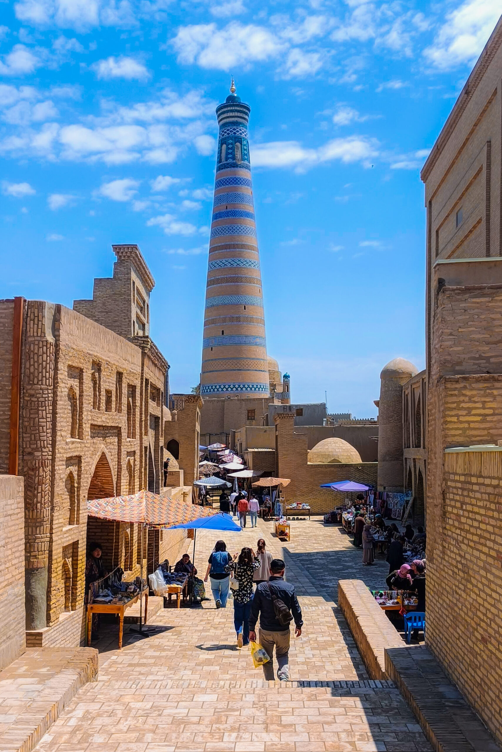 Αργά το απόγευμα, την ώρα που ο ήλιος βυθιζόταν στην έρημο, φθάνουμε στην μικρή πόλη-μουσείο του Ουζμπεκιστάν, Khiva. Μια πόλη όαση παγιδευμένη ανάμεσα σε δύο ερήμους που υπήρξε σημαντικός σταθμός του δρόμου του Μεταξιού. Πριν αποχαιρετήσουμε τον Imprahim, τον καλούμε σε δείπνο για να τον ευχαριστήσουμε για αυτές τις υπέροχες στιγμές που ζήσαμε αυτό το τριήμερο μαζί του.