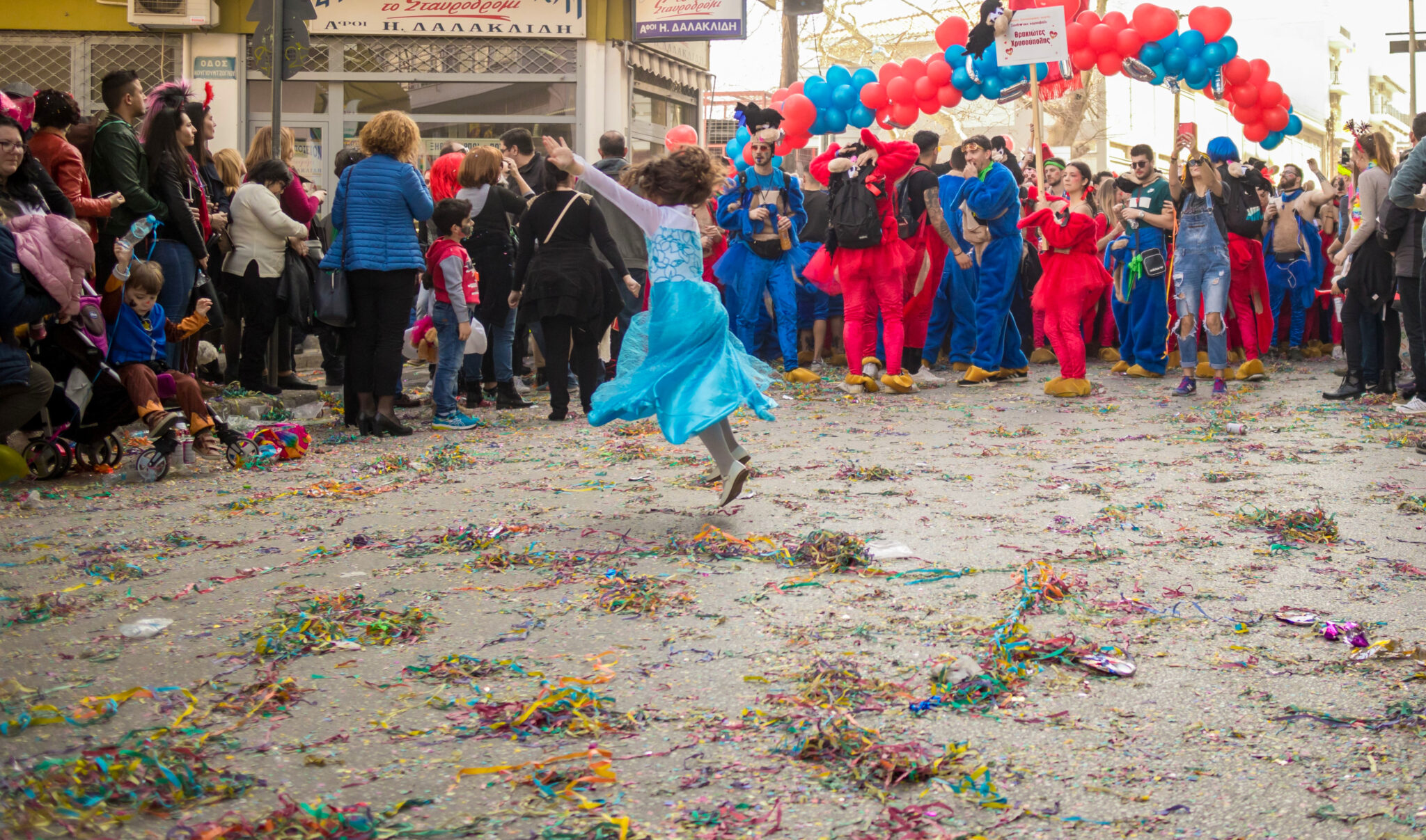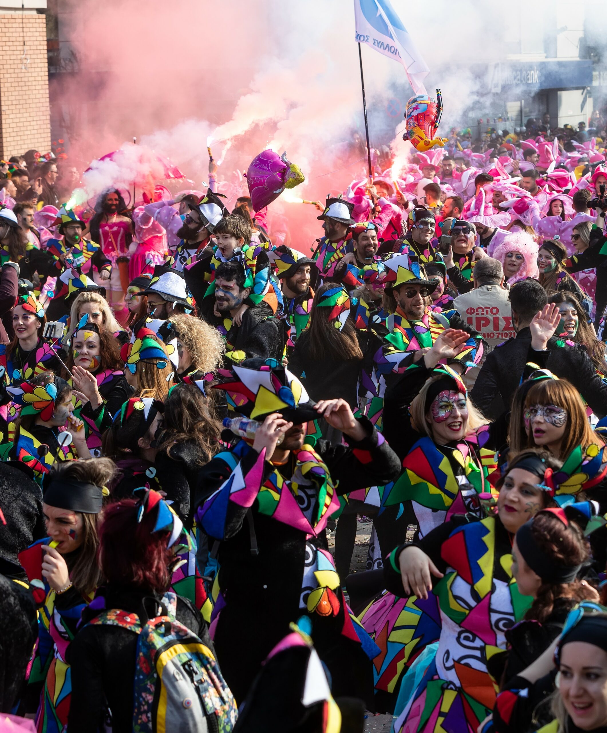 Το βράδυ όμως ξεκινά το καρναβάλι. Από τη διασταύρωση των οδών 28ης Οκτωβρίου και Φειδίου ξεκινά ένα φαντασμαγορικό καρναβαλικό ταξίδι, όπου μικροί και μεγάλοι, μεταμφιεσμένοι, ξεχύνονται στους κεντρικούς δρόμους με μουσικές, γέλια και χορούς, για να καταλήξουν στην πλατεία Δημοκρατίας, όπου το σόου συνεχίζεται με εντυπωσιακά πυροτεχνήματα και μουσική από τους DJs Vita Pi, Joe Vida και Δημήτρη Σταυρίδη.
