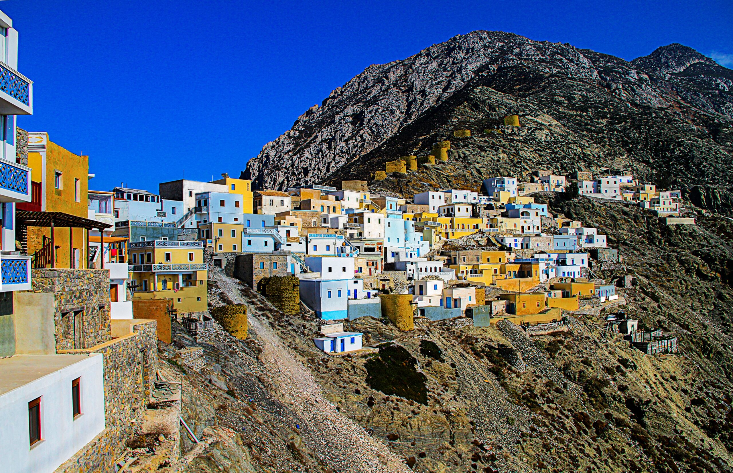 Η Κάρπαθος δεν είναι ένας προορισμός για όσους ψάχνουν πολυτελή resort ή πολύβουες παραλίες αλλά είναι ένας τόπος για όσους αγαπούν τους οικισμούς που διατηρούν την ταυτότητα και τον χαρακτήρα τους. Υπάρχουν πάνω από 10 χωριά στο νησί, καθένα με τις ομορφιές του. Κοντά στο κεντρικό λιμάνι και μεγαλύτερο οικισμό του νησιού, τα Πηγάδια, υπάρχουν δύο μεσαιωνικά χωριά που θα σας βάλουν αμέσως στο κλίμα του νησιού. Στο Απέρι, την παλιά πρωτεύουσα και τις Μενετές θα δείτε πολλά αρχοντικά στο νησιώτικο νεοκλασικό στυλ. Στο μέσο της Καρπάθου, εκεί που το νησί γίνεται στενότερο, βρίσκεται η Σπόα, ένα χωριό που λόγω γεωγραφικής θέσης έχει καταπληκτική θέα και προς τα δυτικά και προς τα ανατολικά.