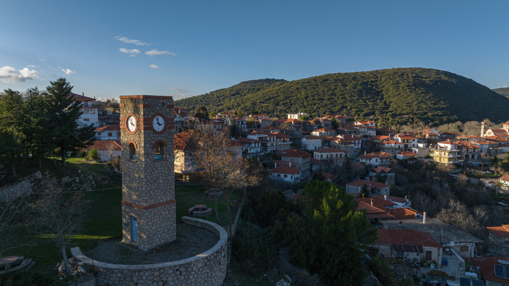 Η διαδρομή μας συνεχίζεται προς το ιστορικό ρολόι του χωριού, ένα σημείο αναφοράς που μοιάζει να μετρά όχι μόνο τις ώρες, αλλά και τις αναμνήσεις των κατοίκων. Αρχικά κατασκευάστηκε το 1930, αλλά το 1944 καταστράφηκε από τους Γερμανούς, όταν το κατέστρεψαν και έκαψαν ολόκληρο το χωριό. Στη συνέχεια το ρολόι, κατασκευάστηκε εκ νέου το 1955. Το σημείο είναι εξαιρετικό με πολύ ωραία θέα τόσο στο χωριό όσο και στις πλαγιές του Πάρνωνα.
