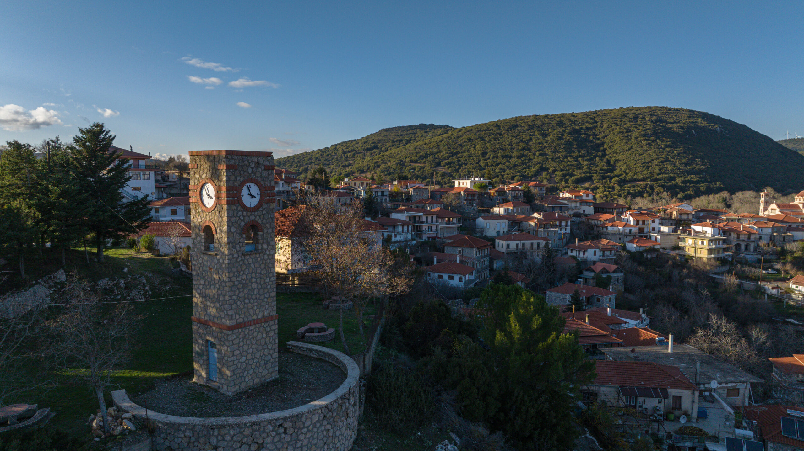 Η διαδρομή μας συνεχίζεται προς το ιστορικό ρολόι του χωριού, ένα σημείο αναφοράς που μοιάζει να μετρά όχι μόνο τις ώρες, αλλά και τις αναμνήσεις των κατοίκων. Αρχικά κατασκευάστηκε το 1930, αλλά το 1944 καταστράφηκε από τους Γερμανούς, όταν το κατέστρεψαν και έκαψαν ολόκληρο το χωριό. Στη συνέχεια το ρολόι, κατασκευάστηκε εκ νέου το 1955. Το σημείο είναι εξαιρετικό με πολύ ωραία θέα τόσο στο χωριό όσο και στις πλαγιές του Πάρνωνα.