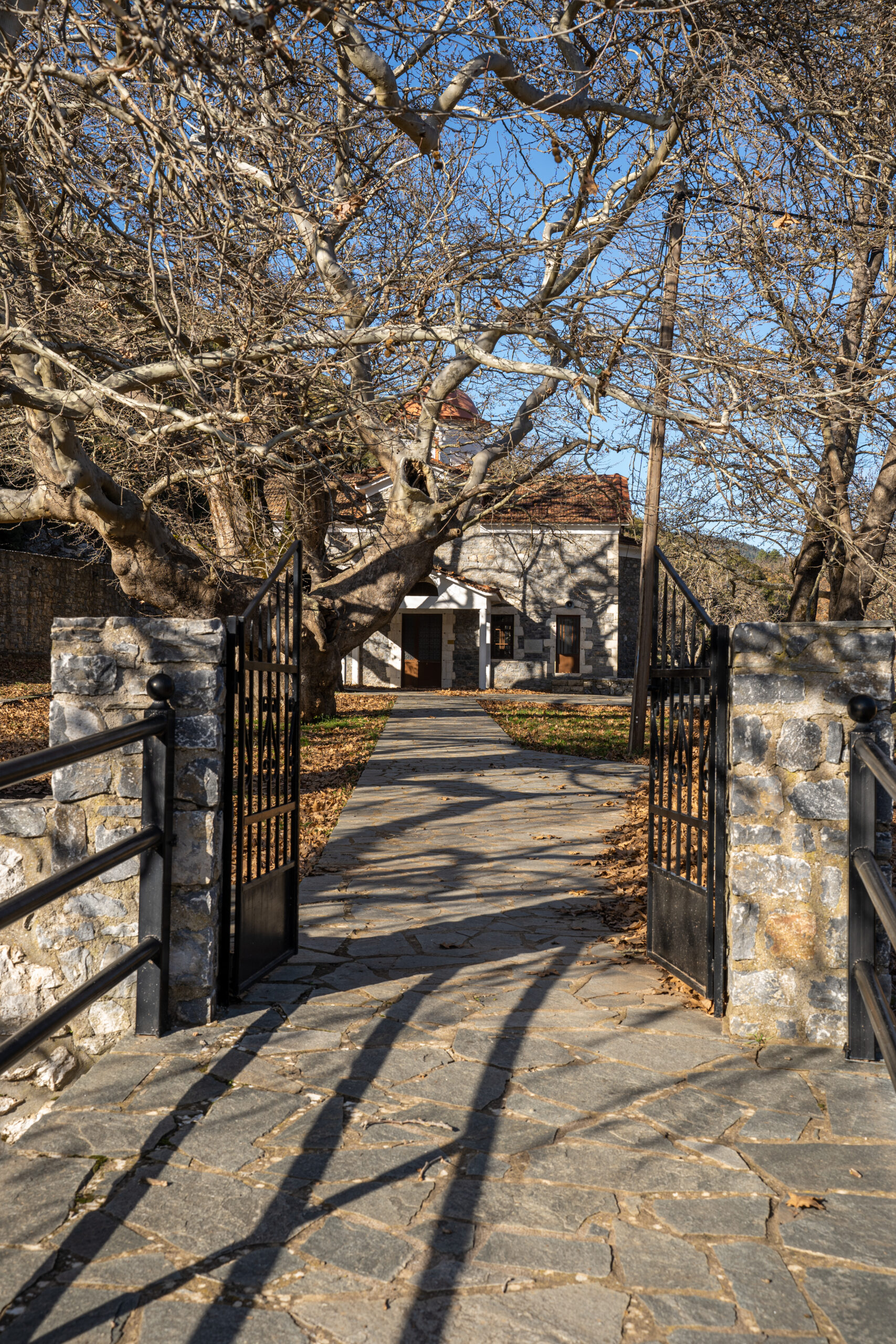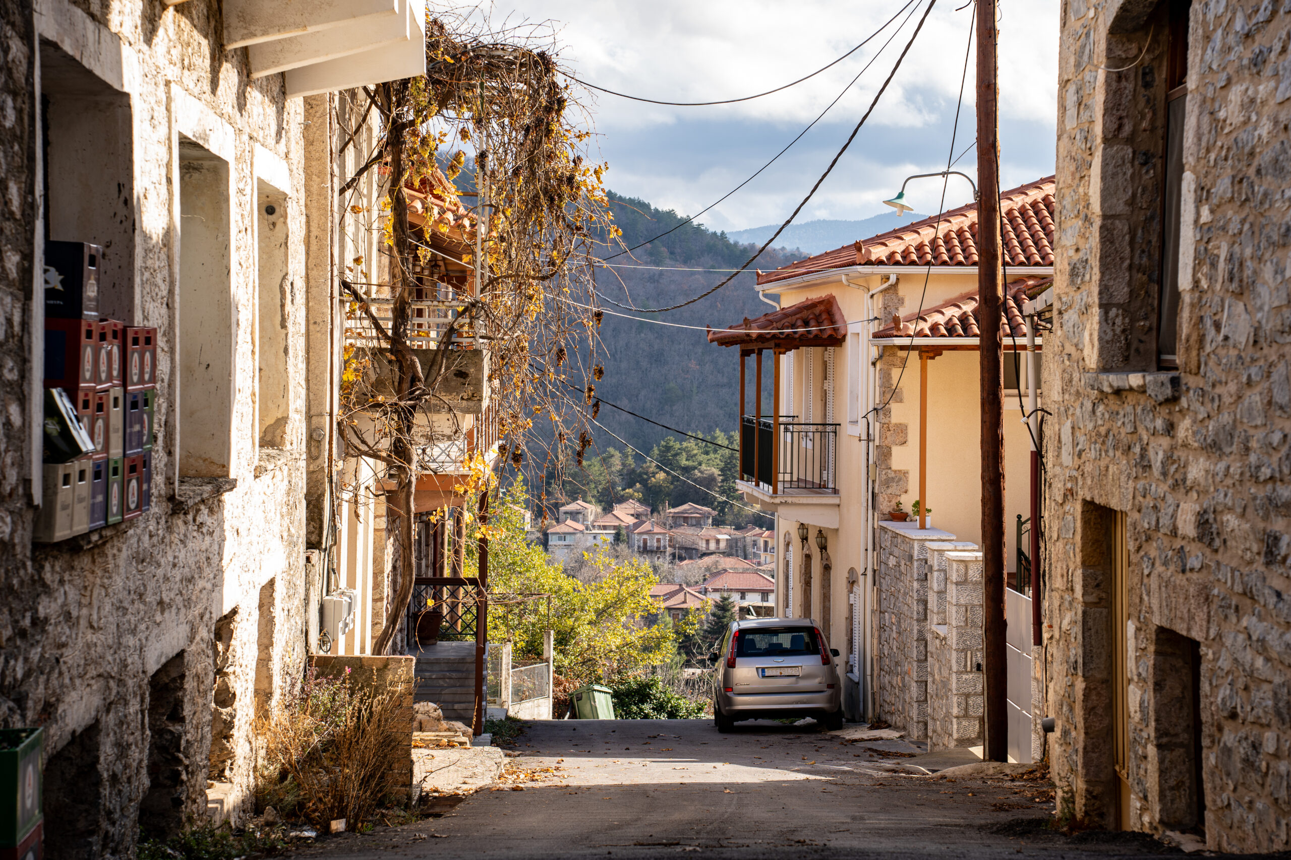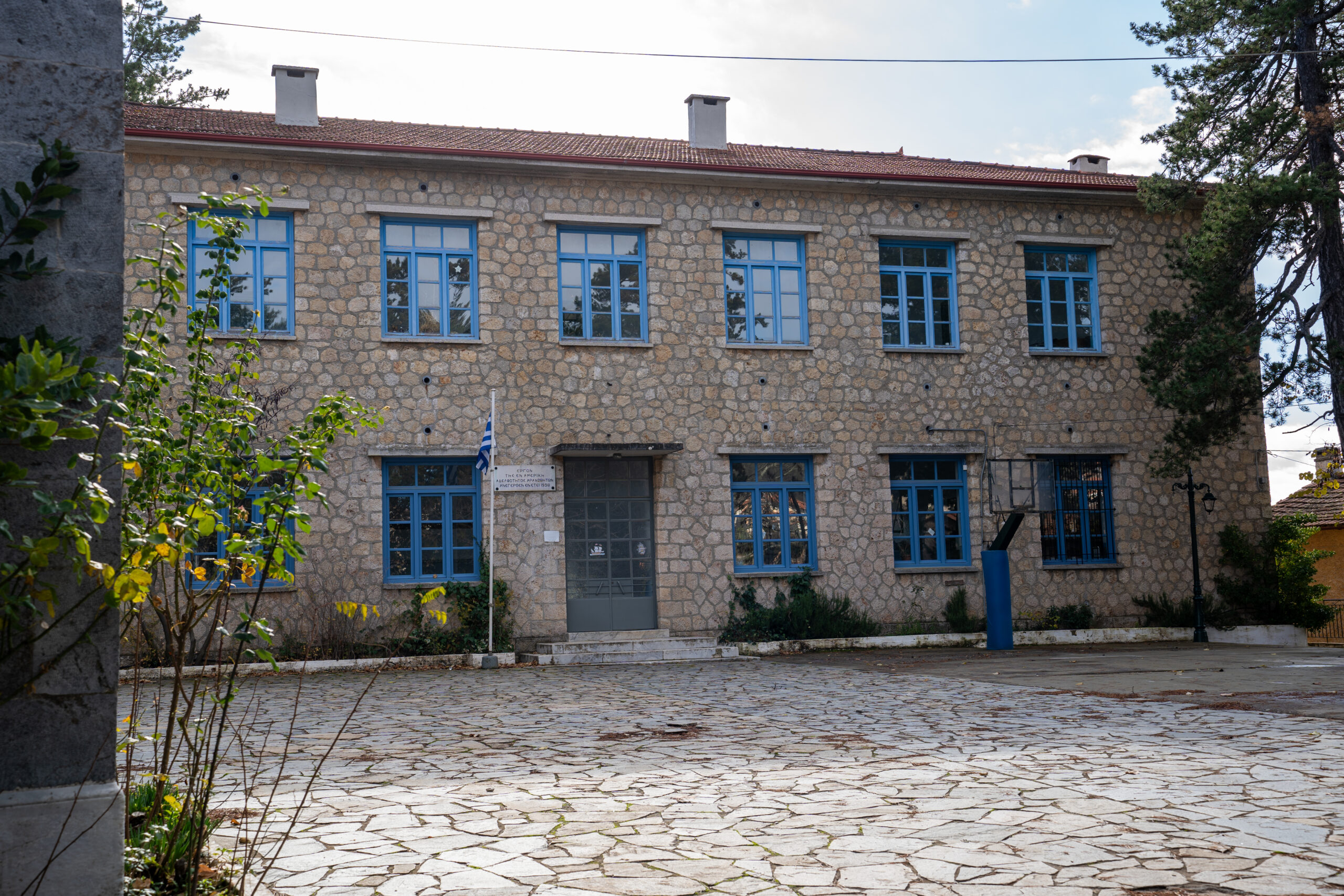 Είναι λίγες μέρες πριν τα Χριστούγεννα και το πρωινό κρύο διαπερνά τα ρούχα μας, θυμίζοντας ότι βρισκόμαστε σε ένα από τα πιο ορεινά χωριά της Λακωνίας. Κάνουμε μία πρώτη στάση στις χειμωνιάτικες καλλιέργειες στην είσοδο του χωριού. Κουνουπίδια και μπρόκολα έχοντας ακόμη να διανύσουν κάποιες εβδομάδες μέχρι την παραγωγή. Διασχίζουμε το χωριό και θέλοντας να έχουμε μία πρώτη γενική εικόνα, φτάνουμε στο σχολείο. Ένα πανέμορφο πέτρινο κτίριο, του 1938, κλασικό σχέδιο των παραδοσιακών σχολείων μας. Δίπλα του η εκκλησία της Αγίας Παρασκευής.