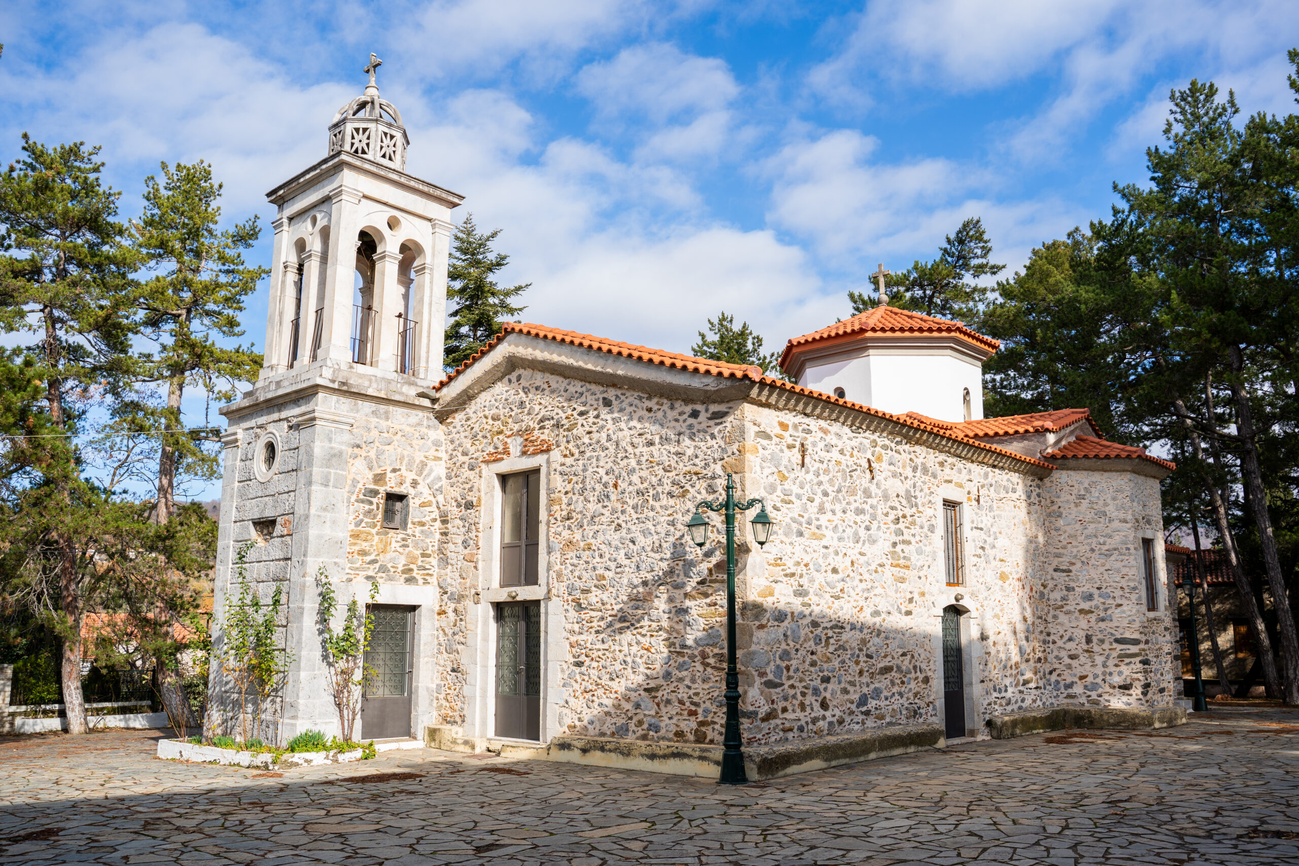 Καθώς η μέρα προχωράει, επιστρέφουμε στην κεντρική πλατεία. Ο αιωνόβιος πλάτανος στέκει μεγαλοπρεπής, μάρτυρας αμέτρητων ιστοριών και συναντήσεων. Τα καταστήματα του χωριού προσφέρουν μια πλούσια γκάμα τοπικών προϊόντων – από κάστανα και καρύδια μέχρι βιολογικό λάδι, τοπικό κρασί, μέλι και παραδοσιακά τυριά. Κάθε γωνιά του χωριού αποπνέει μια αίσθηση αυθεντικότητας που είναι όλο και πιο δύσκολο να βρεις στις μέρες μας. Στην όμορφη και σύγχρονη καφετέρια Σάββας, καθίσαμε δίπλα στο αναμμένο τζάκι και απολαύσαμε τον καφέ με μία νόστιμη πορτοκαλόπιτα. Λίγα μέτρα πιο πέρα, στο παραδοσιακό ζαχαροπλαστείο Λεβεντάκης, παρακολουθούμε τη διαδικασία της παρασκευής της παραδοσιακής δίπλας αλλά και μελομακάρονα, κουλούρια και πολλά ακόμη. Ο Χρήστος και η Ματούλα, μαζί με τους συνεργάτες τους, ετοιμάζουν φρέσκα προϊόντα με άξονα τις παραδοσιακές συνταγές.