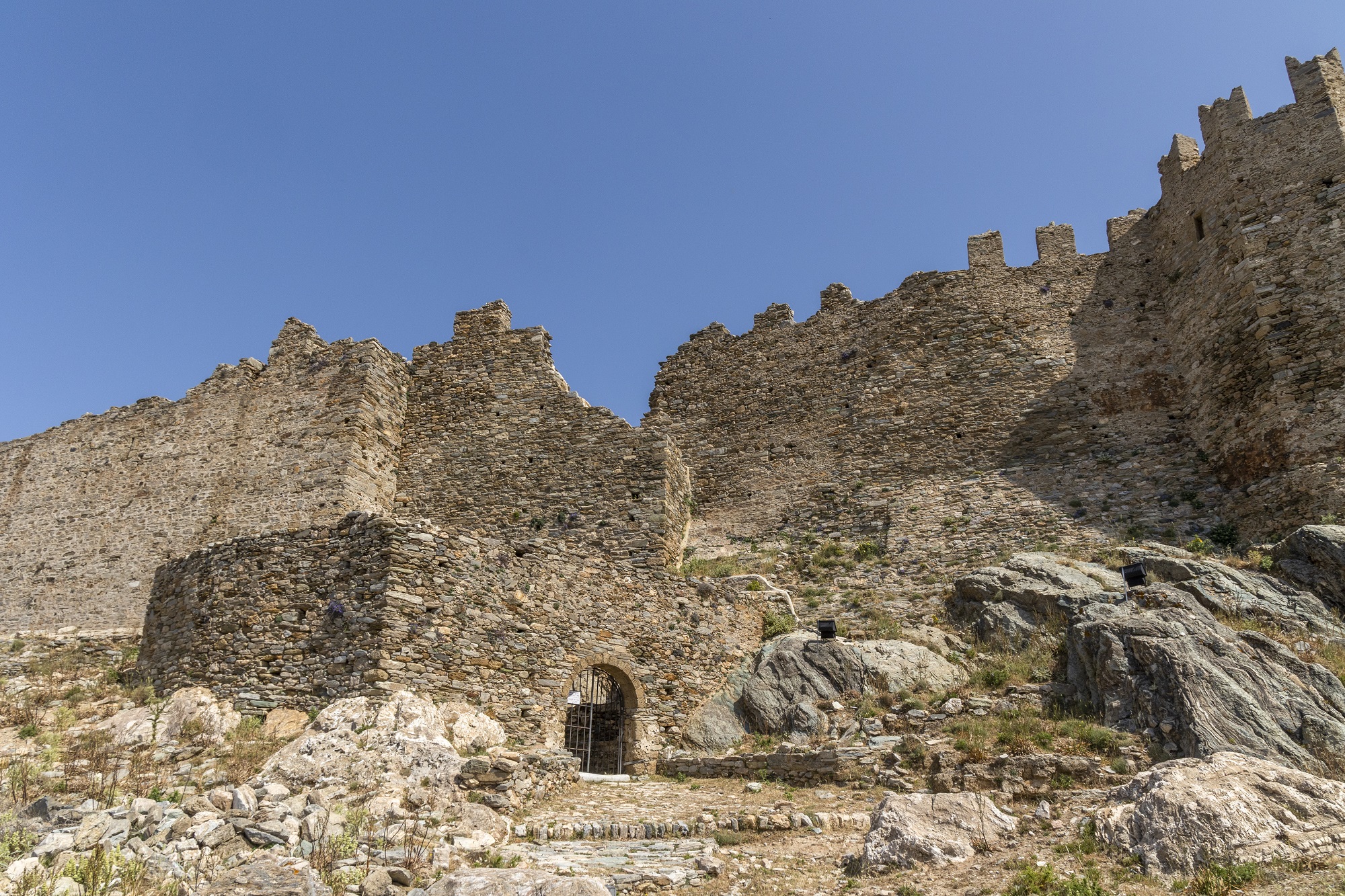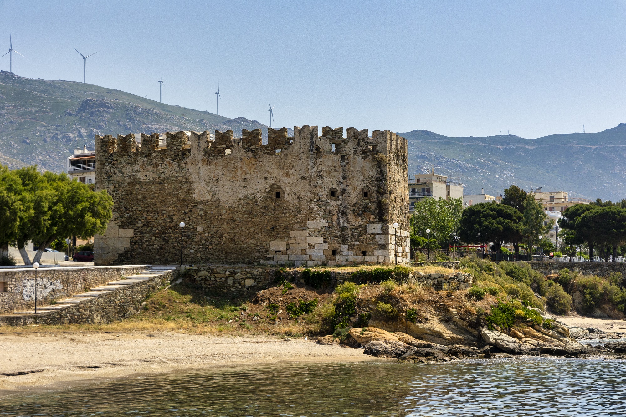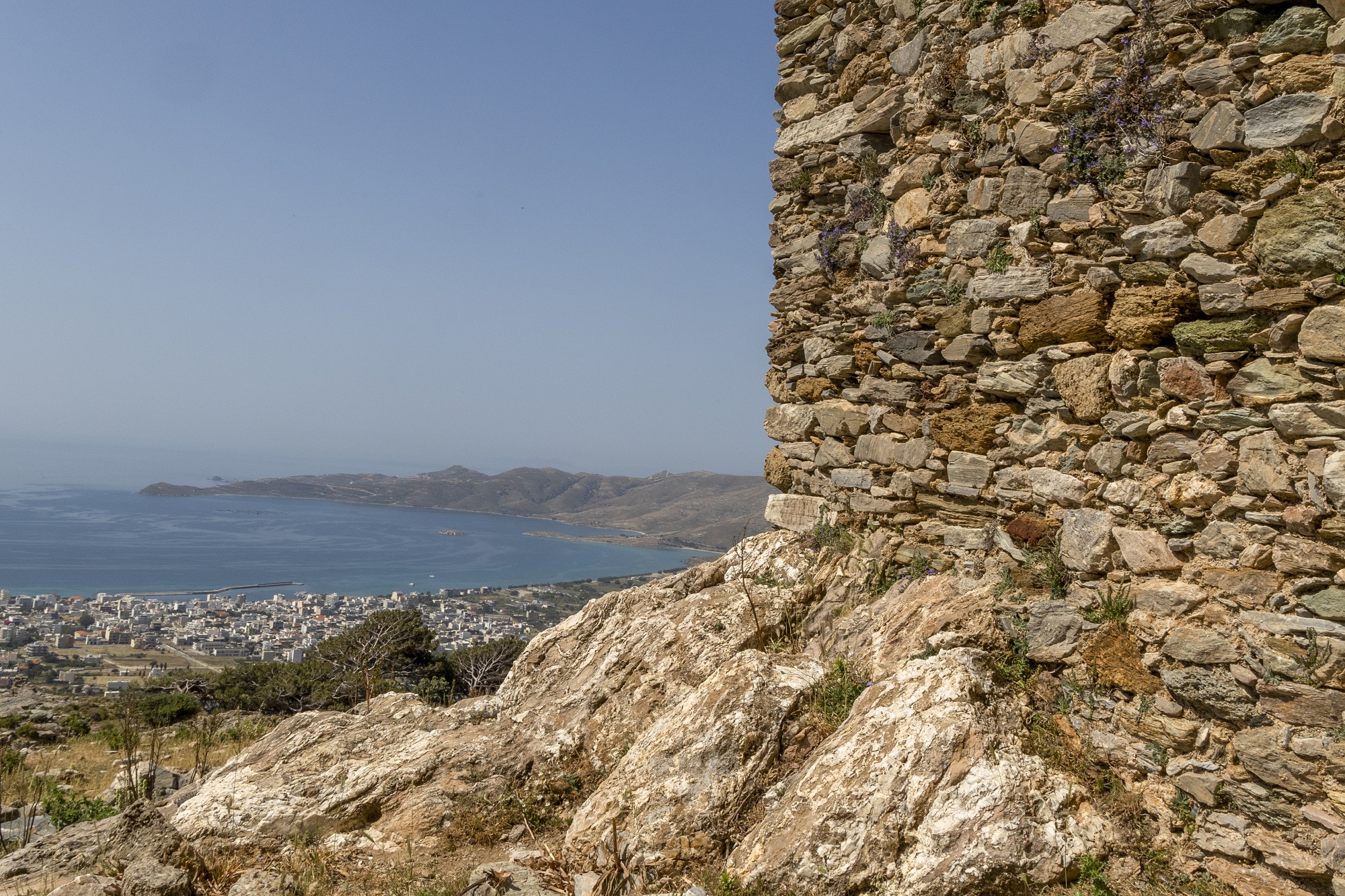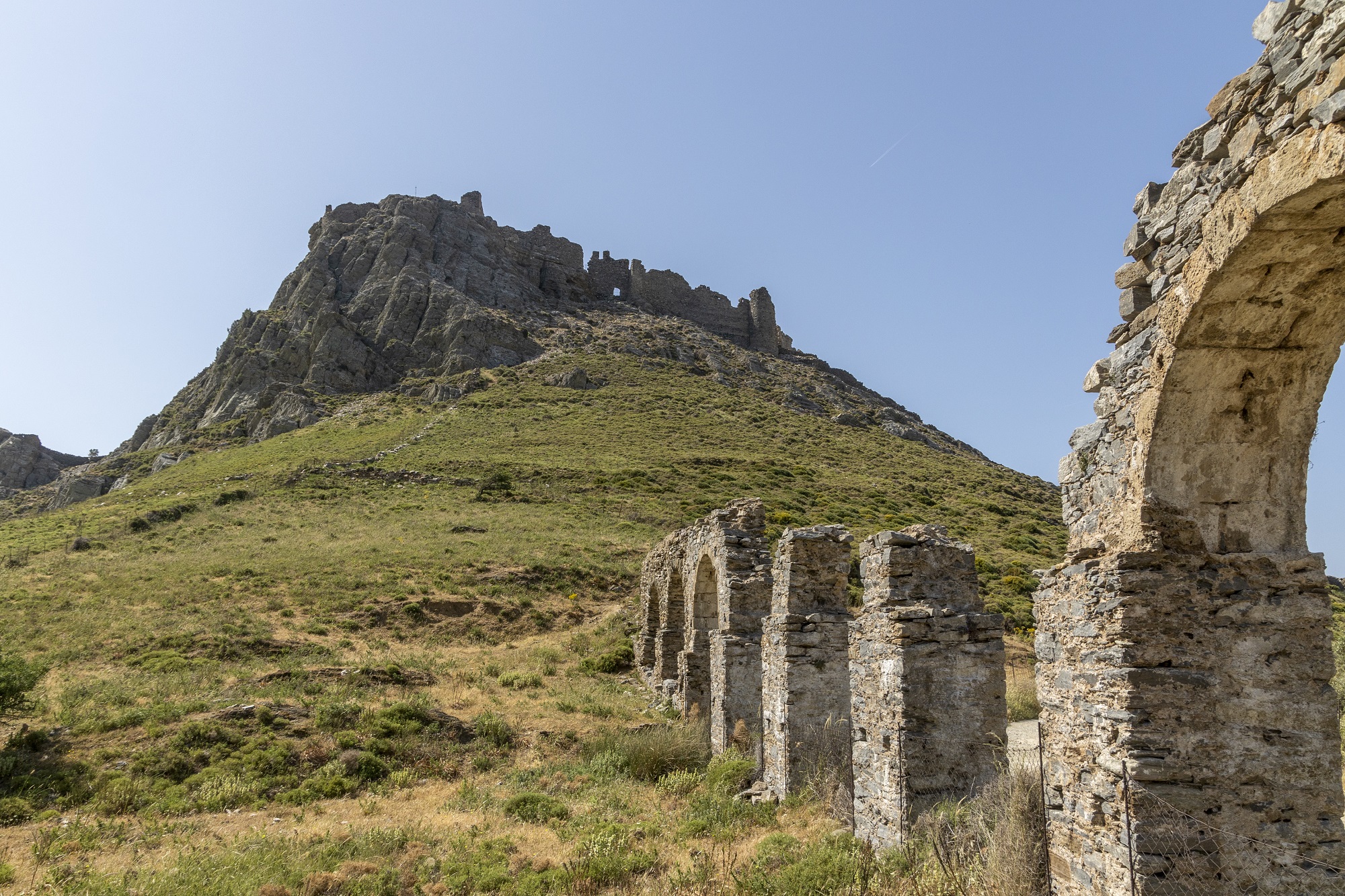 Είναι ακριβώς όπως τα κάστρα των παραμυθιών, με τα γερά του τείχη να απλώνονται φιδογυριστά γύρω από έναν σχεδόν κωνικό λοφίσκο. Διατηρείται μάλιστα πολύ καλά, αν κι έχει γίνει και μια σχετική αναστήλωση. Φτάνετε μέχρι εδώ με το αυτοκίνητο και έπειτα θα χρειαστείτε γύρω στα 100 μέτρα περπάτημα για να προσεγγίσετε στην είσοδο. Αν σταθείτε στην πίσω μεριά, στο άνοιγμα στον δεύτερο όροφο όπου φυσάει μελτέμι, θα έχετε την εξωπραγματική αίσθηση πως είσαστε κυρίαρχοι του κόσμου (ή ότι θα σας πάρει ο Αίολος και θα σας πάει στην Άνδρο).
