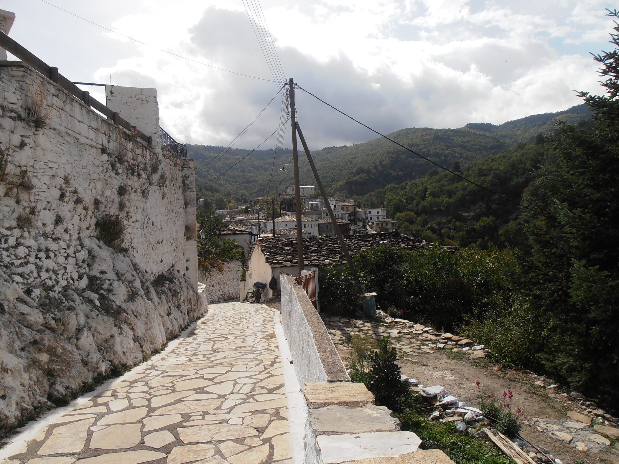 Σαν να πέταξες έναν λαμπερό, λευκό οικισμό του Αιγαίου Πελάγους μέσα στους ορεινούς λόγγους των καστανιών, στις καταπράσινες πλαγιές του Πάρνωνα.