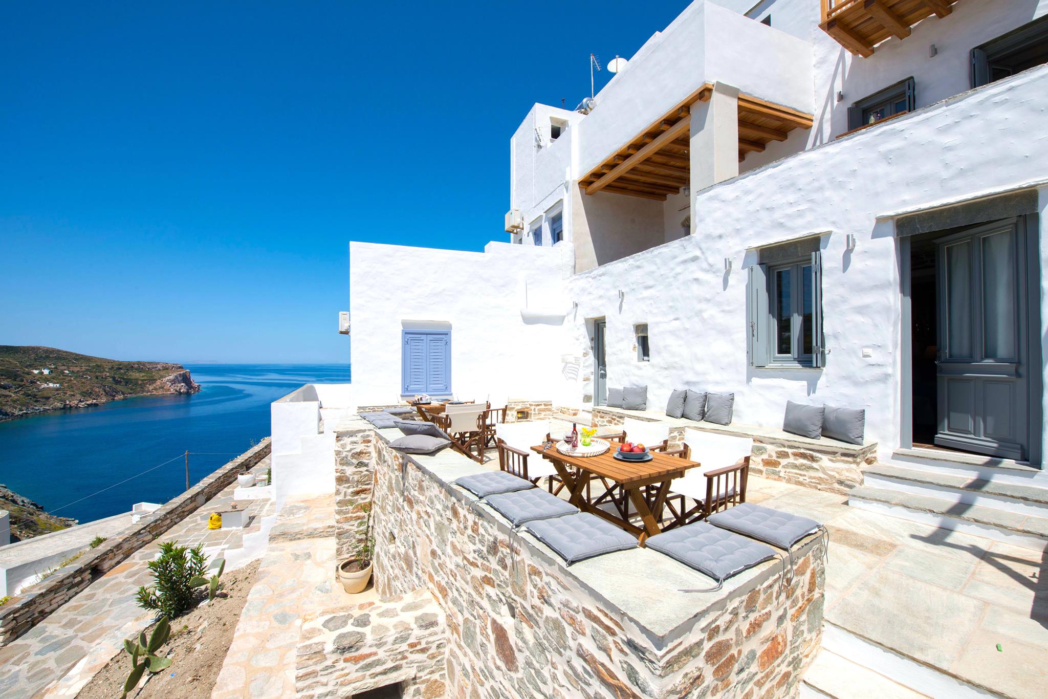 Εξαιρετικά άνετα και καλόγουστα είναι και τα διαμερίσματα του Athina Exquisite Houses. Χτισμένα αμφιθεατρικά, τα διαμερίσματα απολαμβάνουν μοναδική θέα προς το νησί (τηλ: +30 694 148 1481). Σε μια φανταστική τοποθεσία, κυριολεκτικά στην καρδιά του οικισμού, το Aris & Maria Houses διαθέτει πολύ χαριτωμένα παραδοσιακά κυκλαδίτικα δωμάτια, κάποια περισσότερο και κάποια λιγότερο εξοπλισμένα (τηλ: +30 694 687 4360). Το Sigma Residences στην περιοχή Εξάμπελα ανάμεσα στην Απολλωνία και το Κάστρο, διαθέτει 9 πολυτελείς σουίτες, προσφέροντας ιδιωτικότητα και εκπληκτική θέα προς το εμβληματικό Κάστρο της Σίφνου, και το Αιγαίο Πέλαγος. (τηλ.: 2284031232)