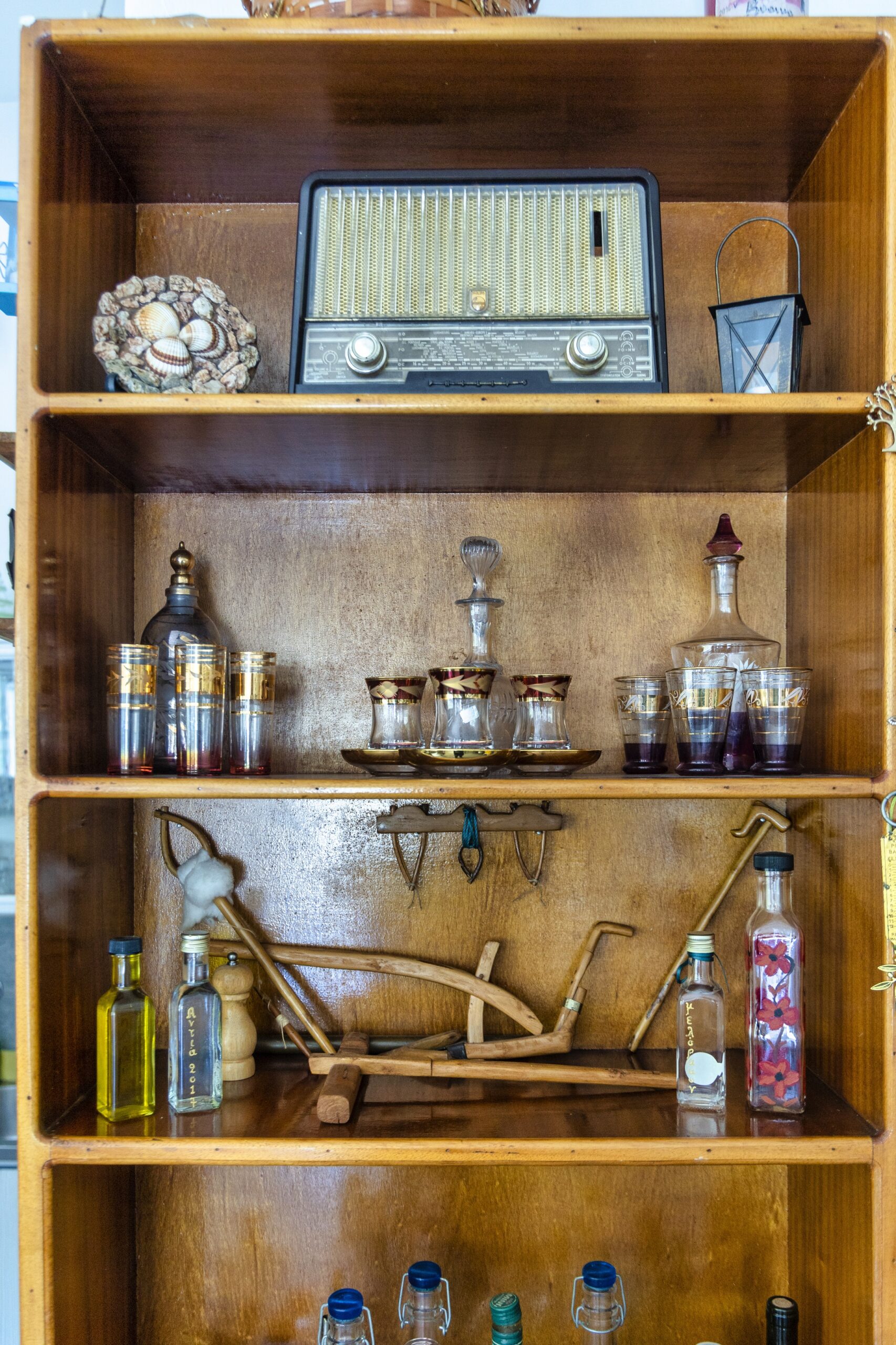 Στο χωριό Αμυγδαλιά, το οποίο έχει γύρω στους 20 κατοίκους, η 83χρονη Μαρία Χουντάση κάθεται έξω από το άσπρο σπιτάκι της με τα γαλάζια πορτοπαράθυρα. Θυμόμαστε ότι παλιά είχε εδώ ένα καφενείο. Δεν υπάρχει πια μας λέει, έχει κλείσει. Οπότε μας καλεί μέσα για καφέ. Το εσωτερικό του σπιτιού της, μια αποκάλυψη: πολύχρωμo, μαξιμαλιστικό, ένα Ναΐφ όνειρο του interior design, σε πλήρη αντίστιξη με το λιτό, σχεδόν κυκλαδίτικο εξωτερικό. Το δε παράθυρο της κουζίνας, ένα εκτυφλωτικό κάδρο στο απέραντο Αιγαίο.