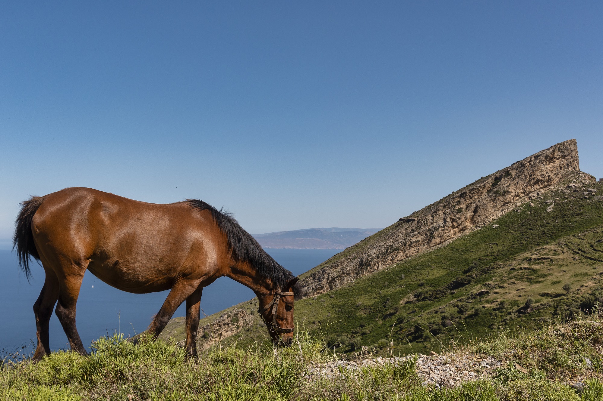 Οι βράχοι του βουνού φτιάχνουν περίεργα γλυπτά, με φόντο τον ουρανό. Ξαφνικά, επίσης, θα δείτε την πορεία σας να γλυκαίνει χάρη σε πλατανιές και σε νερά τρεχούμενα. Κοιτάζοντας προς τα κάτω, βραχώδεις, απόκρημνες πλαγιές βυθίζονται στη θάλασσα. Κάπου-κάπου, στο μεταξύ, το τοπίο εμπλουτίζεται με σπαρτά κι ανθισμένους θάμνους.