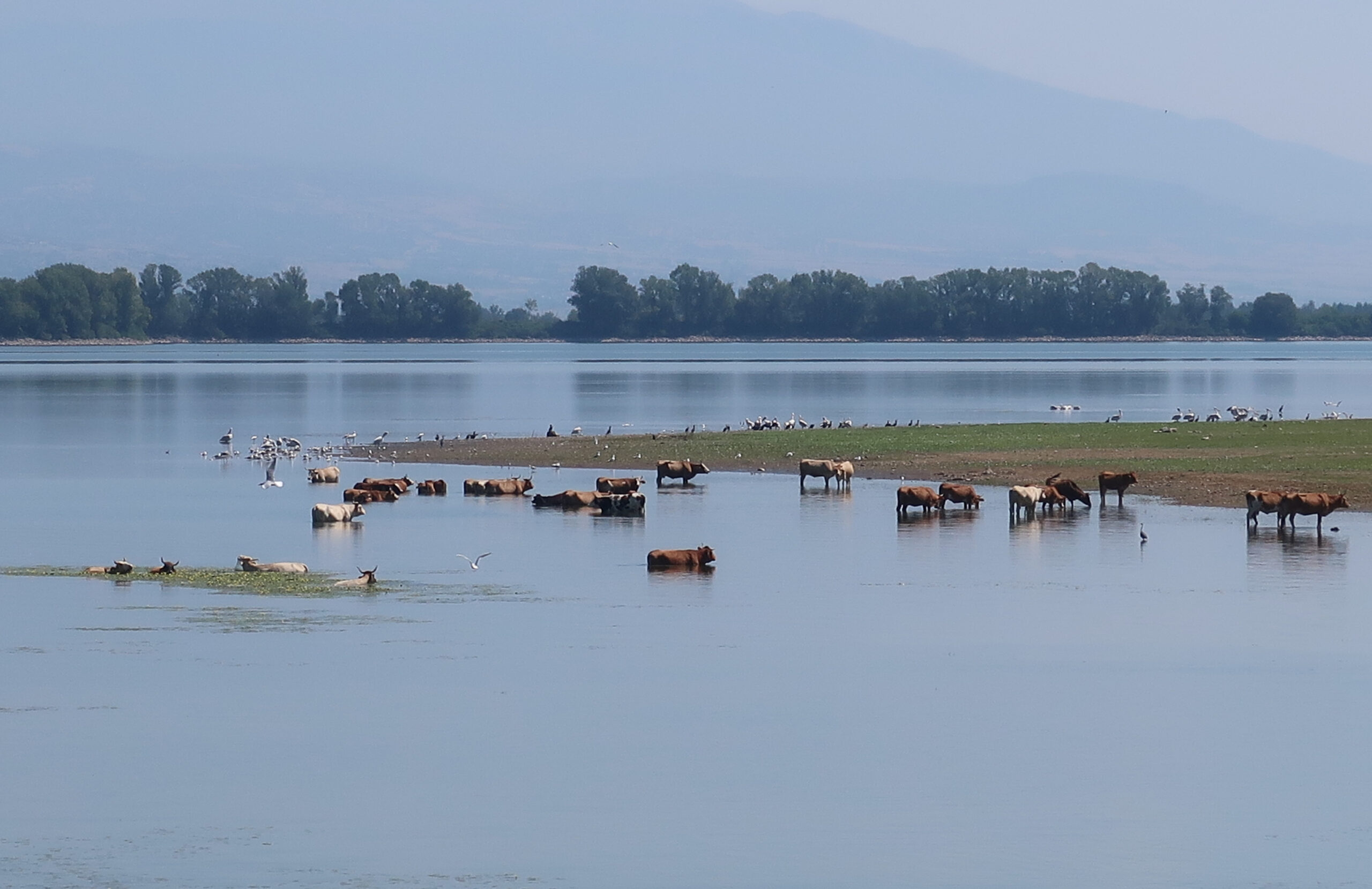 Την επόμενη μέρα η καθιερωμένη βαρκάδα στη λίμνη έκρυβε για άλλη μία φορά δεκάδες εκπλήξεις. Σκουφοβουτηχτάρια, αργυροτσικνιάδες, χουλιαρομύτες, κόβαν βόλτες στο υδρόβιο δάσος και στους καλαμιώνες δίπλα στη λίμνη. Δυο τολμηροί πελεκάνοι πραγματοποιούσαν χαμηλές πτήσεις πίσω από τη βάρκα μας, ευελπιστώντας σε κάποιο ψαράκι από τα χέρια του βαρκάρη. Δεν έφυγαν άπραγοι. Τους είχε κρατήσει μεζεδάκι από την πρωινή ψαριά. Συνεχίσαμε οδικώς για το γύρο της λίμνης ώστε να απολαύσουμε τα αργόσυρτα βουβάλια να σουλατσάρουν στις όχθες της. Μικρά κοπάδια νεροβούβαλοι με τα τεράστια μάτια τους πόζαραν σε φυσιολατρικά ενσταντανέ σε όλη την νότια κοίτη της Κερκίνης. Στην περιοχή Καϊράκι, δίπλα σ’ ένα μποστάνι, ο νοικοκύρης είχε ανάψει φωτιά και έβραζε σ’ ένα καζάνι πετμέζι από καρπούζι. Δεκάδες παραγινωμένα καρπούζια, στην αρχή του φθινοπώρου, μετατρεπόταν σ’ ένα μοναδικό πετμέζι με όλη τη γλύκα του καλοκαιριού να κρύβεται μέσα του. Σιγανό βράσιμο, επαναλαμβανόμενο ξάφρισμα και μία κιβωτός γαστρονομίας θα γλυκάνει τα πιάτα μας.