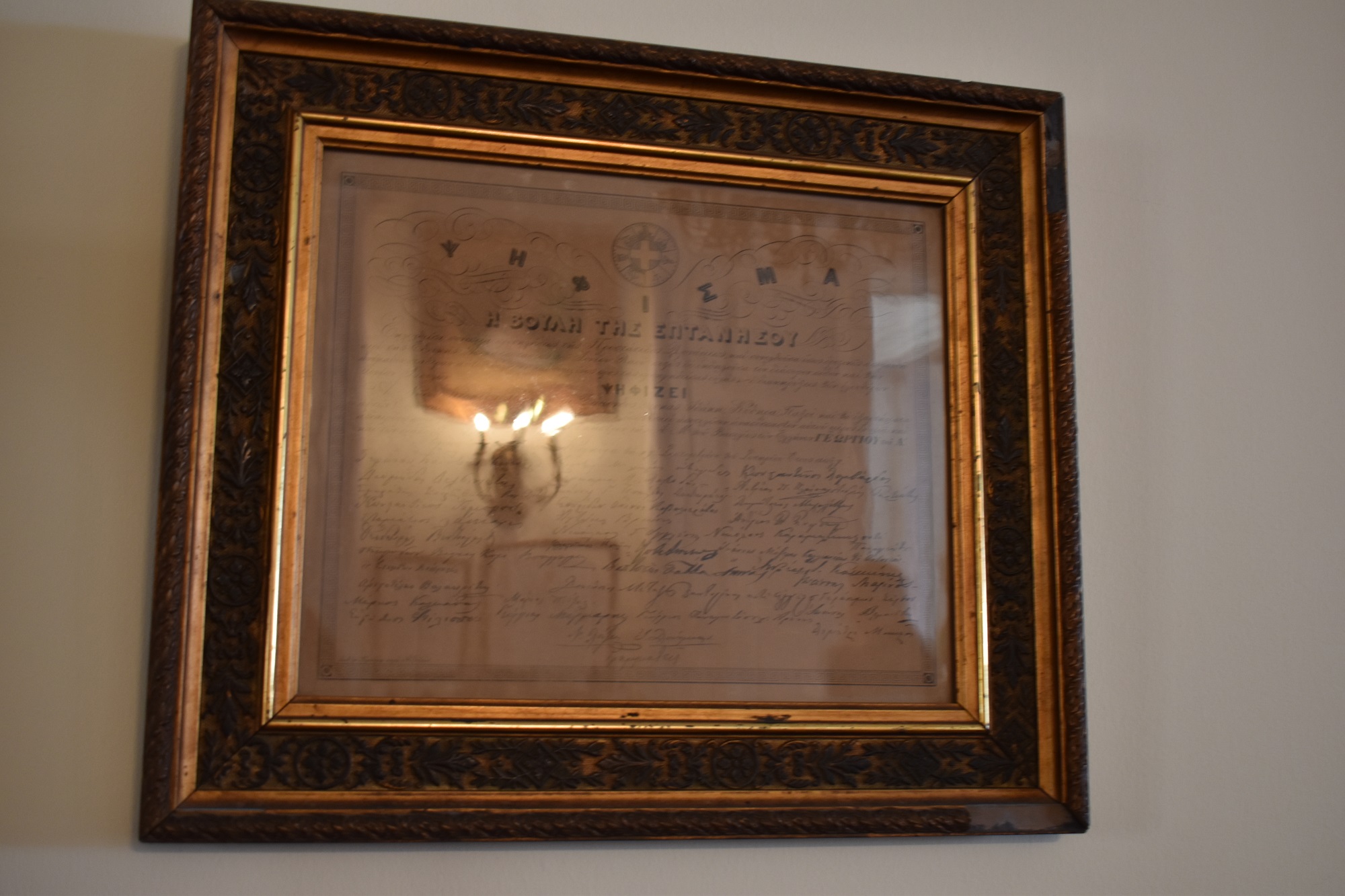 Θα δείτε λοιπόν τον Νικόλαο Μάντζαρο, συνθέτη του Εθνικού μας Ύμνου, μα και διακεκριμένες μορφές σαν την Πριγκίπισσα Σίσσυ της Αυστρίας ή τον κόμη Ιωάννη Καποδίστρια, πρώτο κυβερνήτη της Ελλάδας. Ο χώρος κοσμείται όμως και με πολλά διπλωματικά δώρα και σύμβολα της φιλίας και συνεργασίας της Κέρκυρας με άλλες πόλεις, αν κι εκείνο που ξεχωρίζει περήφανα είναι η πράξη του 1864 με την οποία η Ιόνιος Βουλή επικύρωσε την ένωση των Επτανήσων με την Ελλάδα. Τέλος, μια μαρμάρινη πλάκα στον κεντρικό διάδρομο εξιστορεί τις διάφορες χρήσεις του Δημαρχείου στην πορεία της ιστορίας.