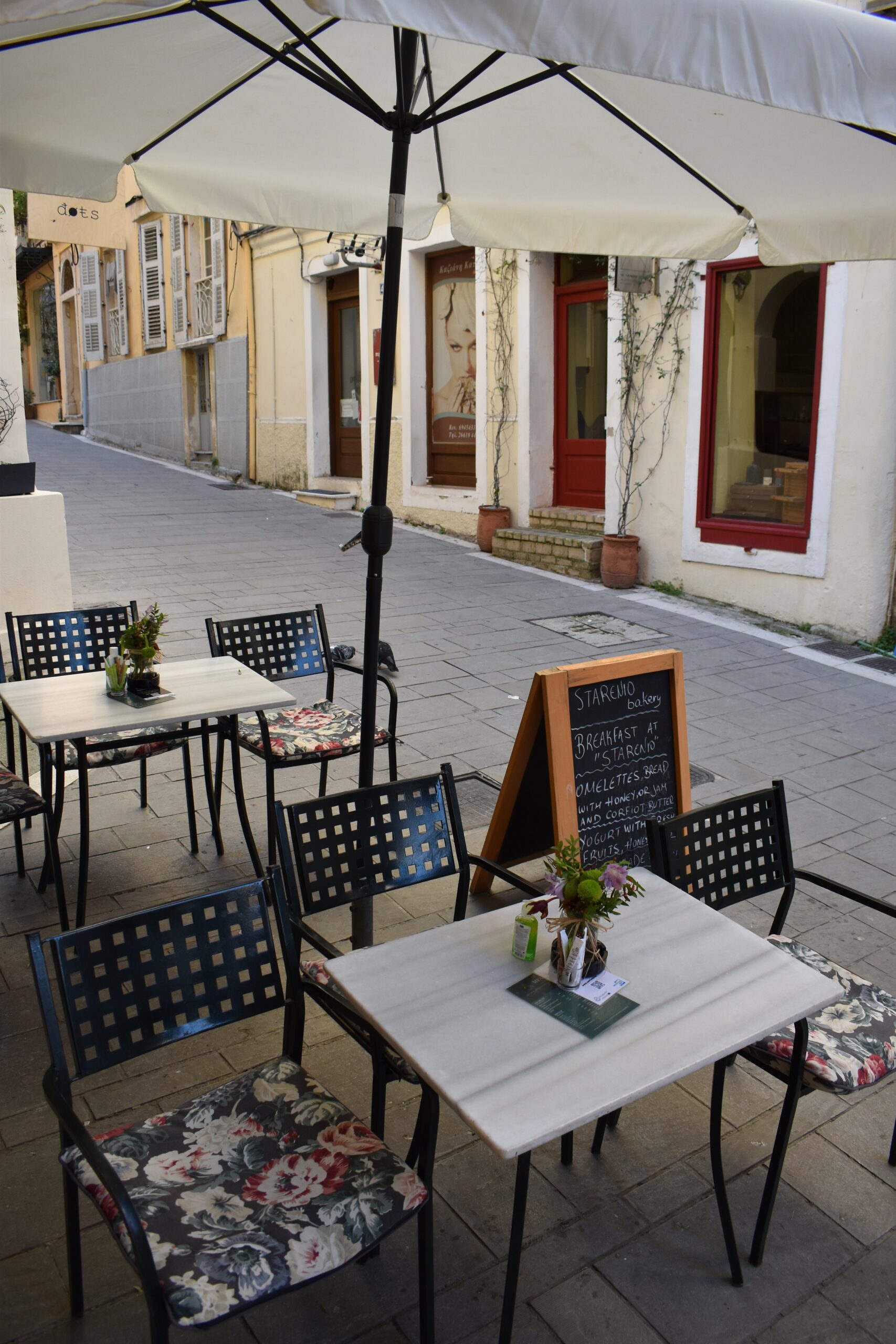 Αγαπημένη πρωινή στάση των ντόπιων είναι ο μικρός φούρνος-καφέ Σταρένιο, στη βόρεια άκρη της πλατείας, επί της οδού Γκίλφορδ. Εδώ και χρόνια, ο πάντα χαμογελαστός ιδιοκτήτης και το εξυπηρετικό προσωπικό σερβίρουν μια μεγάλη ποικιλία από πεντανόστιμες, σπιτικές πίτες στα μικρά τραπεζάκια που απλώνονται πάνω στον κατηφορικό πεζόδρομο: βρίσκει κανείς και κλασικές επιλογές, μα και άλλες, με πρωτότυπους συνδυασμούς υλικών στη γέμιση. Το μικρό και φροντισμένο μαγαζάκι είναι λοιπόν ένα πολύ γραφικό σημείο για να πάρετε το πρωινό σας, όταν η ατμόσφαιρα στην πλατεία και τα γύρω δρομάκια είναι ακόμη ήσυχη. Μαζί δε με τον καφέ ή τον χυμό σας μπορείτε να δοκιμάσετε και τα χειροποίητα μπισκότα ή κάποιο από τα δελεαστικά γλυκά ημέρας, όπως την εξαιρετική μηλόπιτα. Η δε τοποθεσία το καθιστά ιδανικό για μια πανοραμική άποψη της πλατείας, αλλά και για χάζι των περαστικών ή των εμπόρων της περιοχής που ανοίγουν εκείνη την ώρα τα μαγαζιά τους.