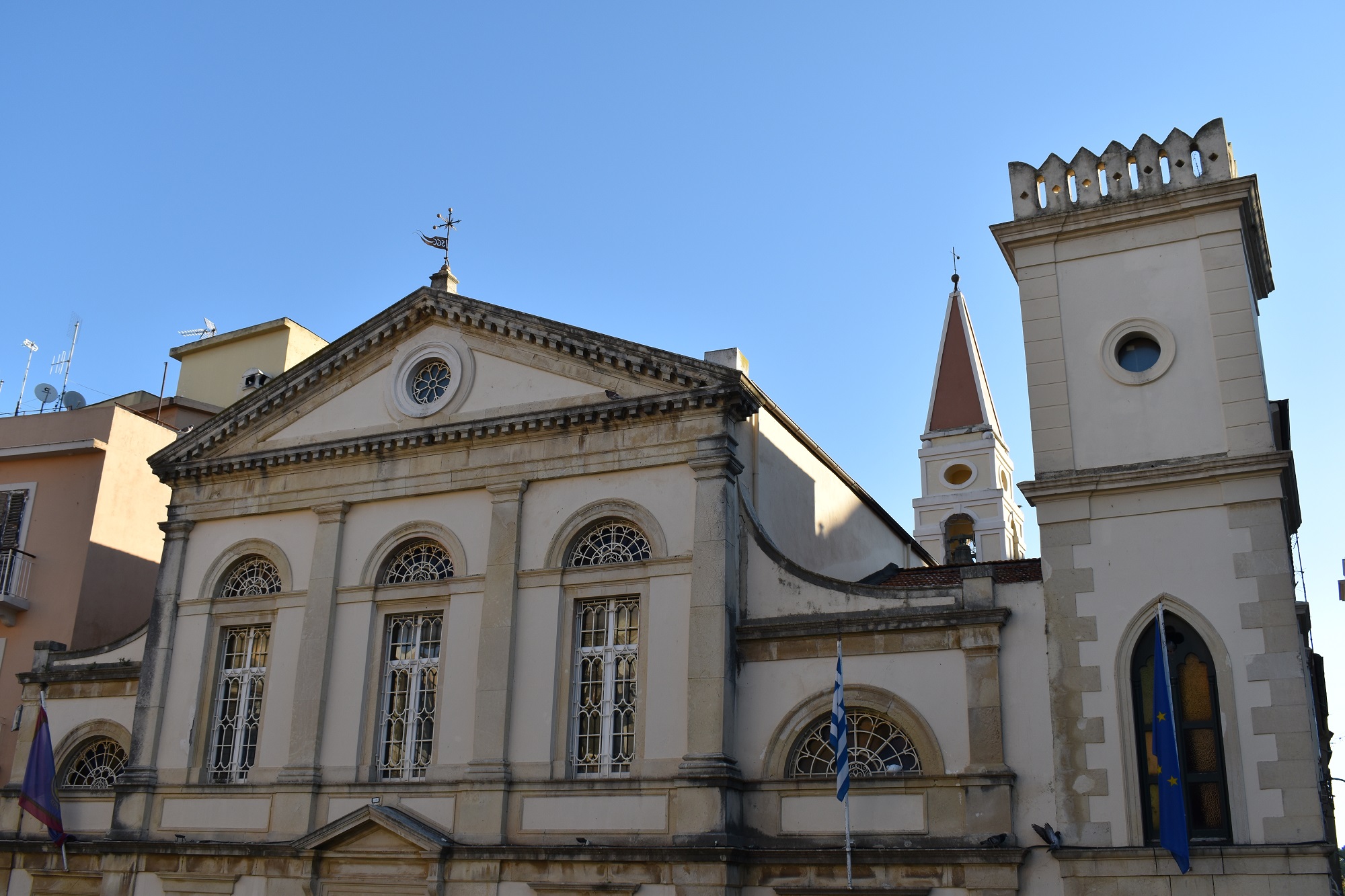 Στην τωρινή της μορφή, η εκκλησία ξεχωρίζει με τη συμμετρική της πρόσοψη, τον προσαρτημένο πύργο και το όμορφο καμπαναριό της, που είναι σχεδόν τόσο αναγνωρίσιμο όσο κι αυτό του πολιούχου του νησιού, του Αγίου Σπυρίδωνα. Το λιτό εσωτερικό της μονόκλιτης βασιλικής με τα τρία εκατέρωθεν πλαϊνά παρεκκλήσια ανακαινίστηκε μετά την ολοκληρωτική καταστροφή που προκάλεσαν οι γερμανικοί βομβαρδισμοί του 1943. Αν τύχει να βρεθείτε εδώ κατά την περίοδο του Πάσχα, αξίζει να παρακολουθήσετε την Αναστάσιμη λειτουργία των Καθολικών το βράδυ του Μεγάλου Σαββάτου, στην οποία συμμετέχει και το εκκλησιαστικό όργανο του Duomo.